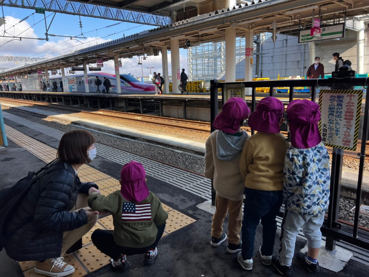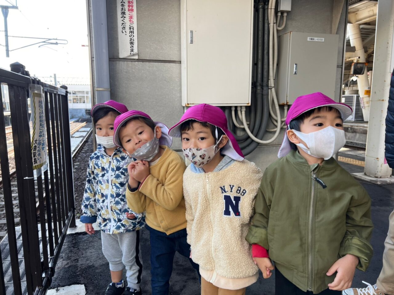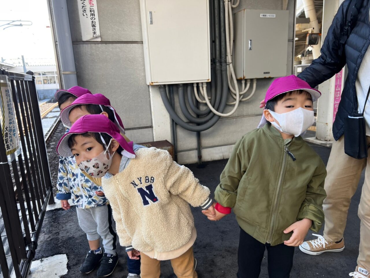 『来るかな〜』『まだかな〜』など電車が待ちきれない様子の子どもたち?