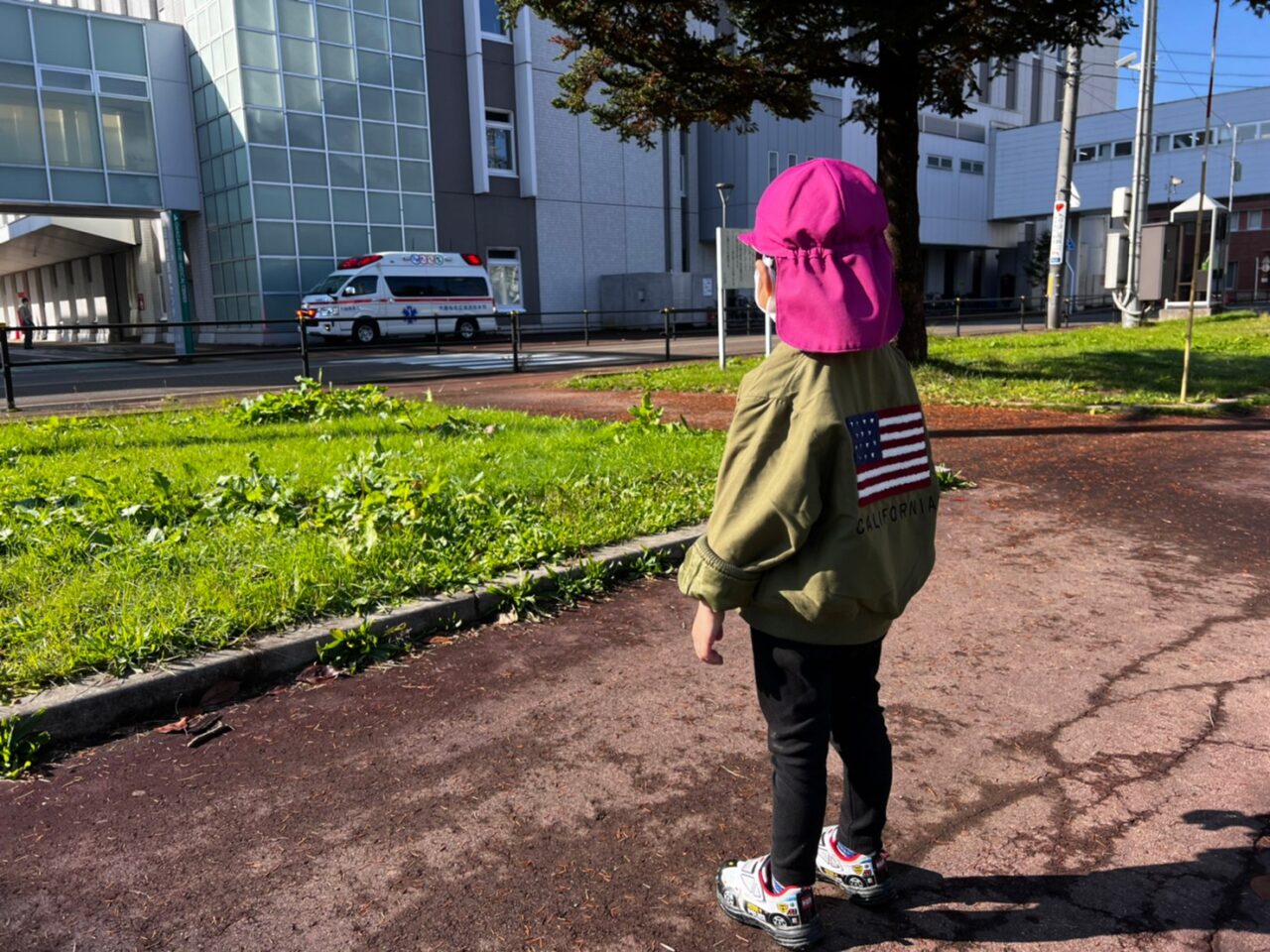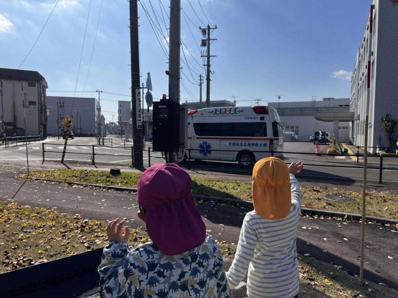 また、公園の目の前にいた救急車にもとーっても真剣でいろんな乗り物を見た電車の旅でもありました🚃★🚅★🚑