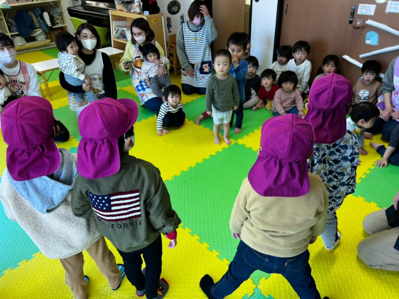 中にお邪魔するときらきら保育園大曲のお友達と先生方がお出迎えしてくれました??