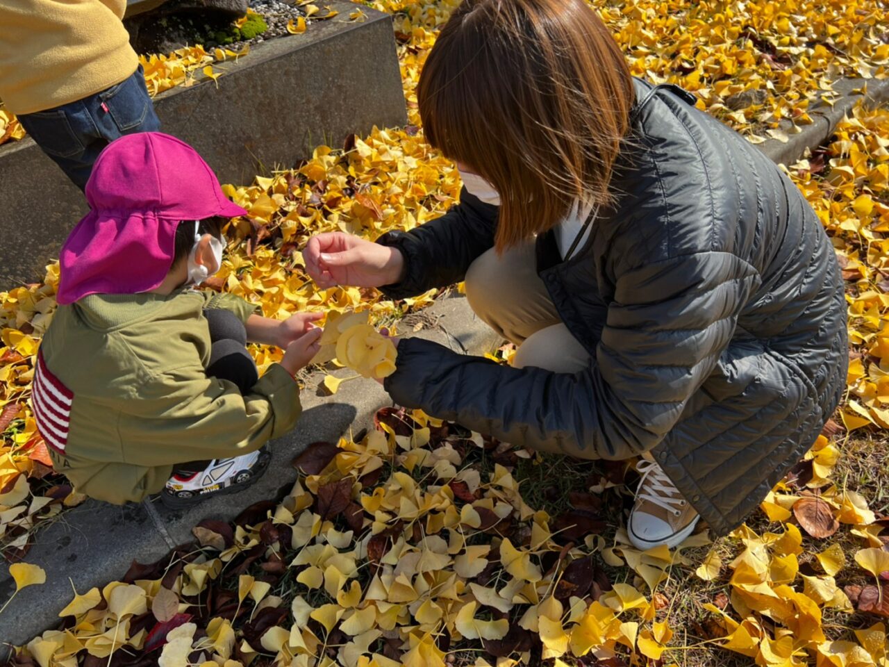 横手ではなかなか見られないイチョウの葉もたくさんで夢中で拾ってます?