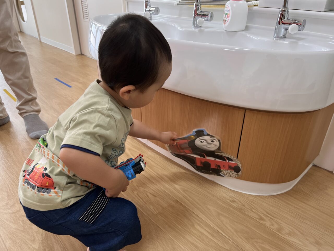 お部屋のいろんな所に隠れていたトーマス達を見つけると