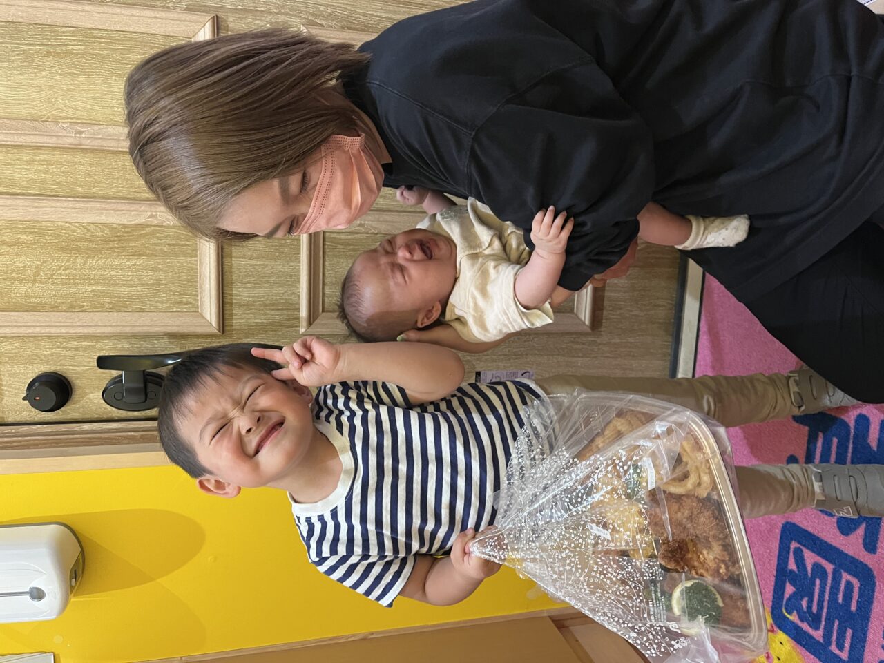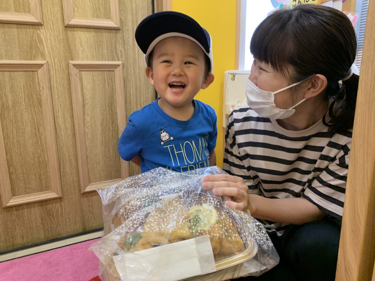 お惣菜を渡した時、子ども達と保護者の方々にとっても笑顔になってもらえて