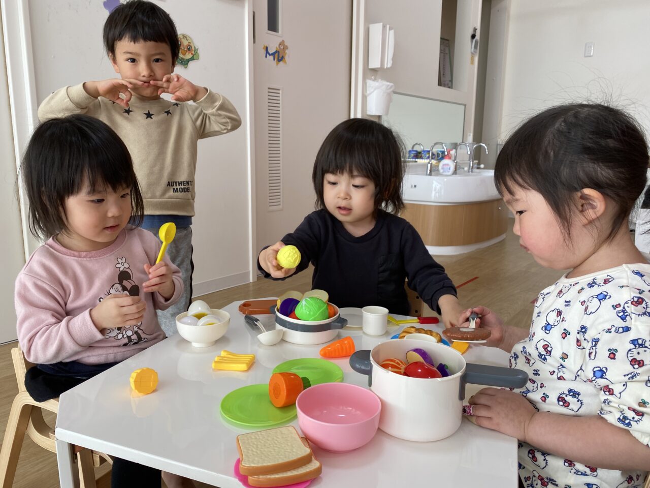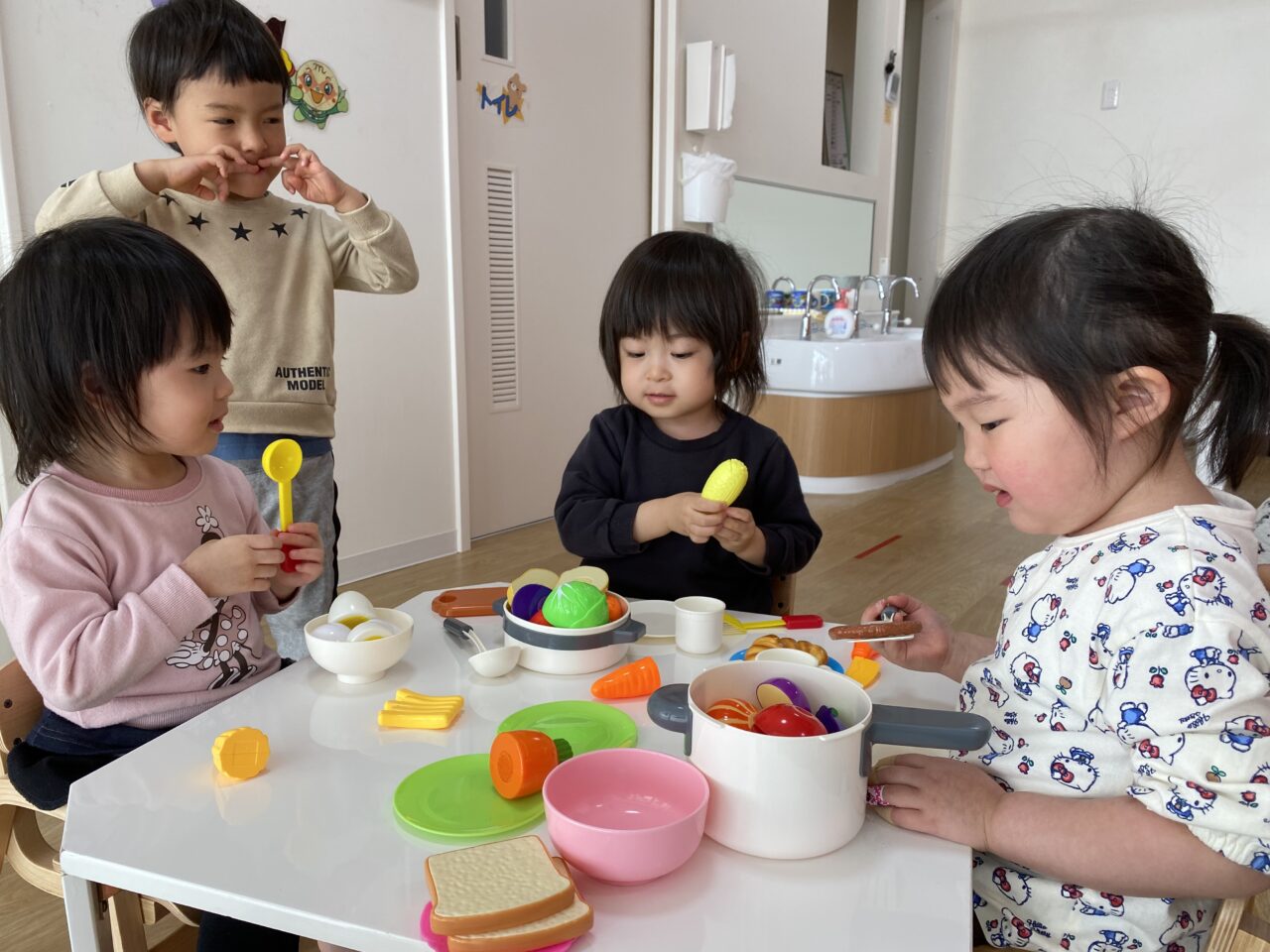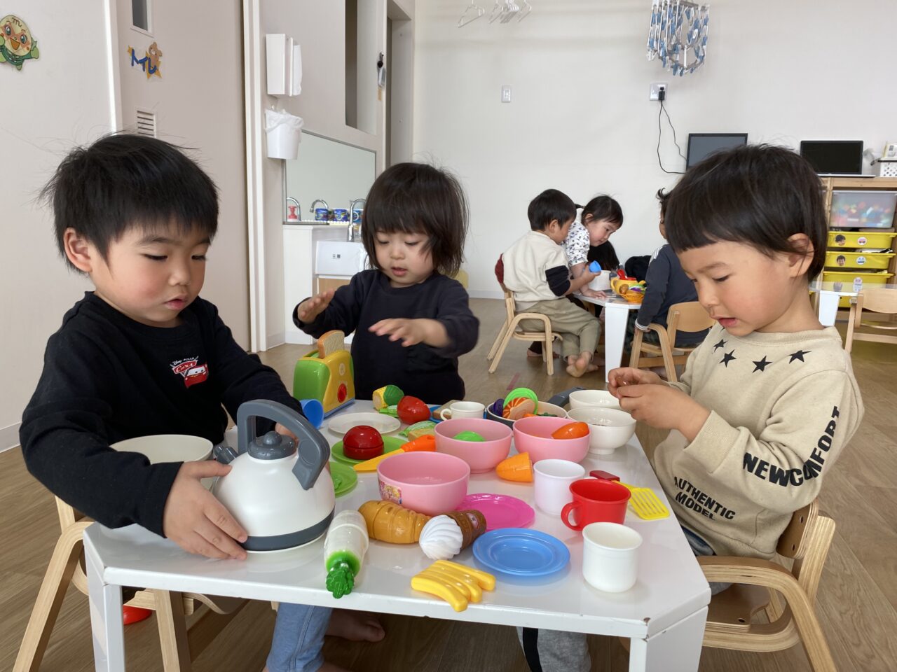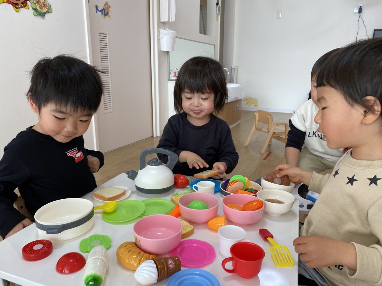 先日、新しいおままごとセットが仲間入りし、子ども達は目をキラキラ✨輝かせながらおままごとで遊びましたので今日はその様子をお伝えしたいと思います?