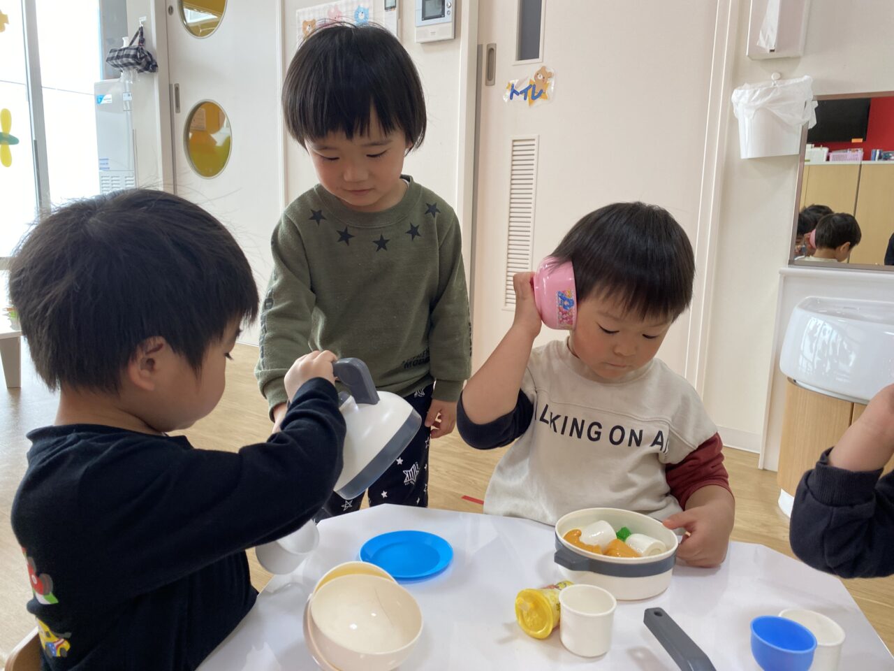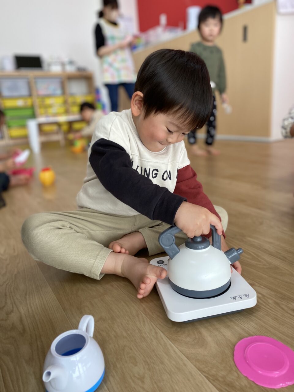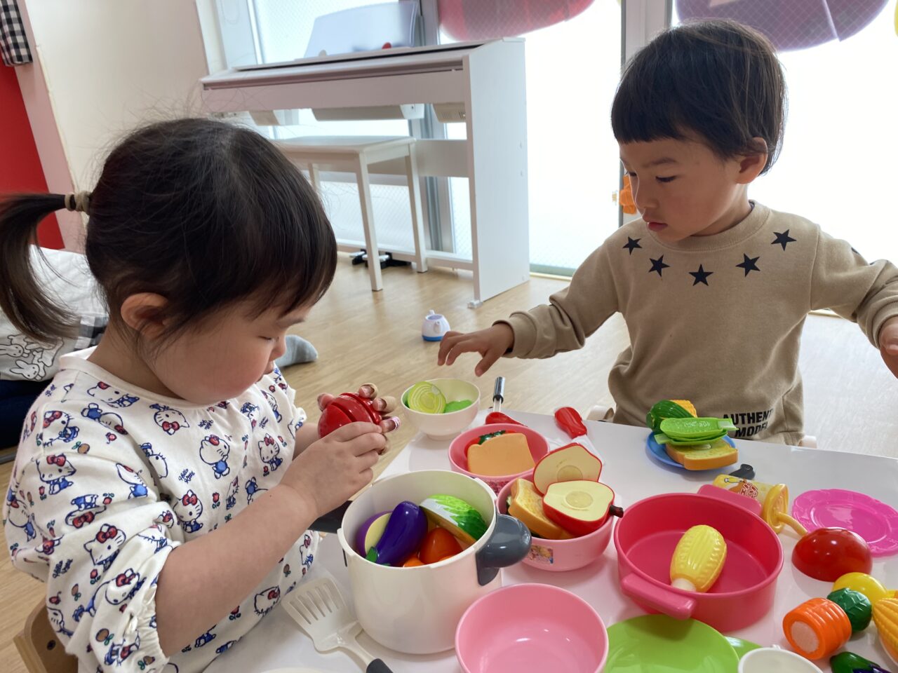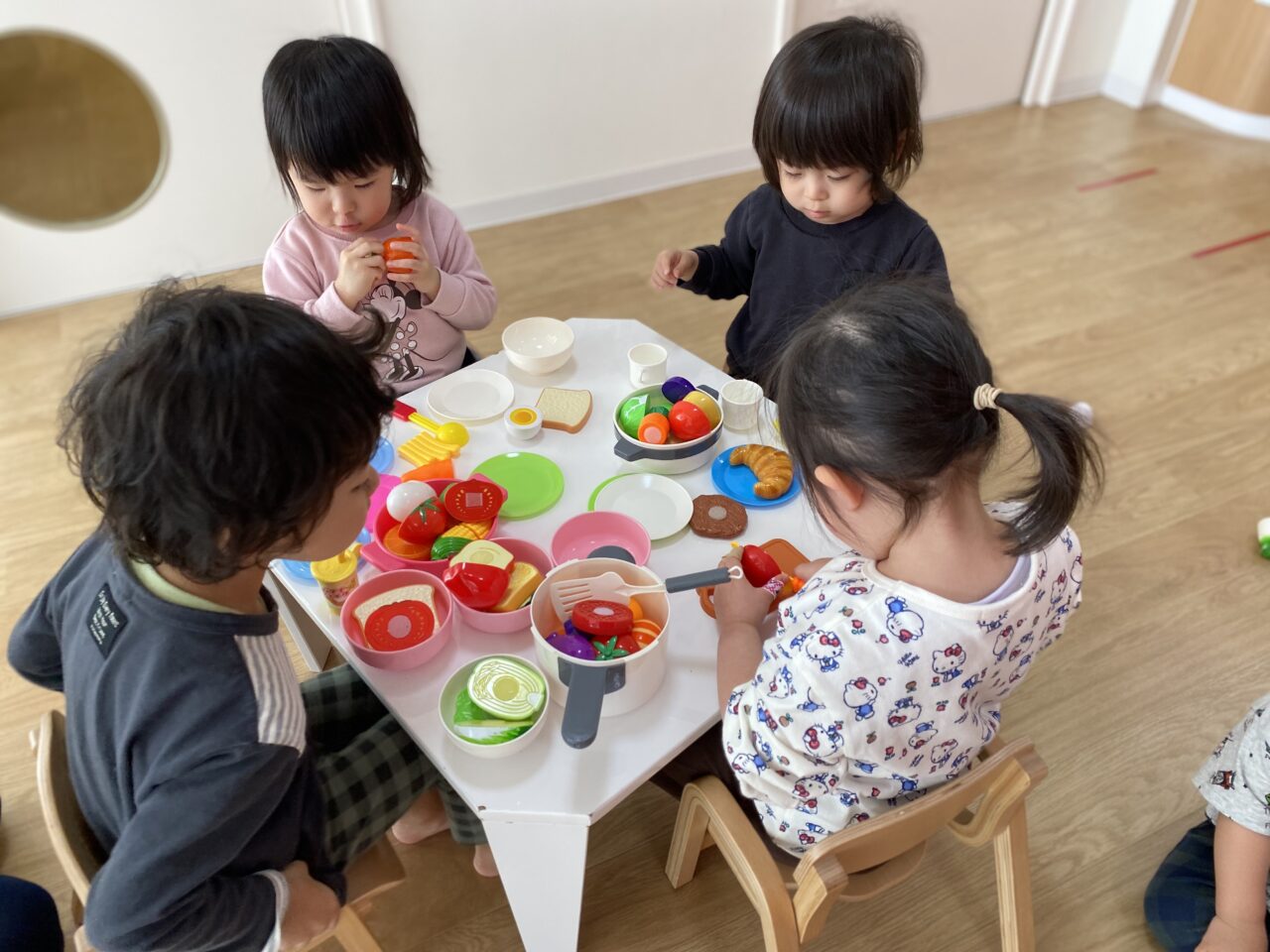 先日、新しいおままごとセットが仲間入りし、子ども達は目をキラキラ✨輝かせながらおままごとで遊びましたので今日はその様子をお伝えしたいと思います?