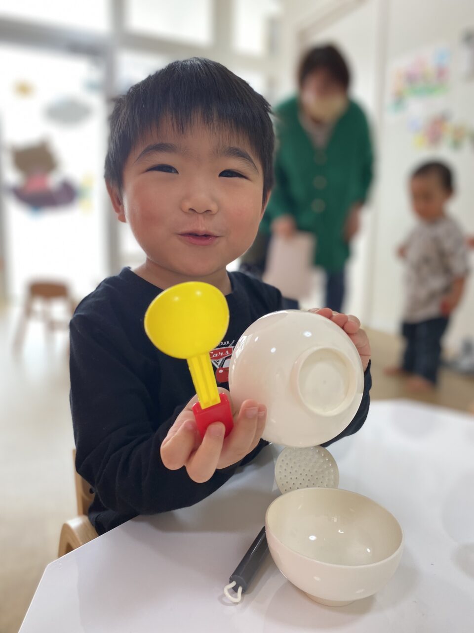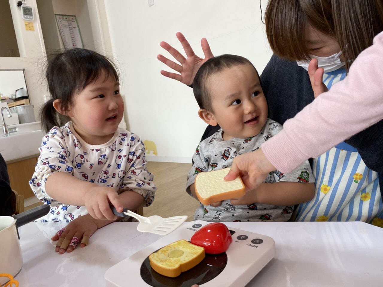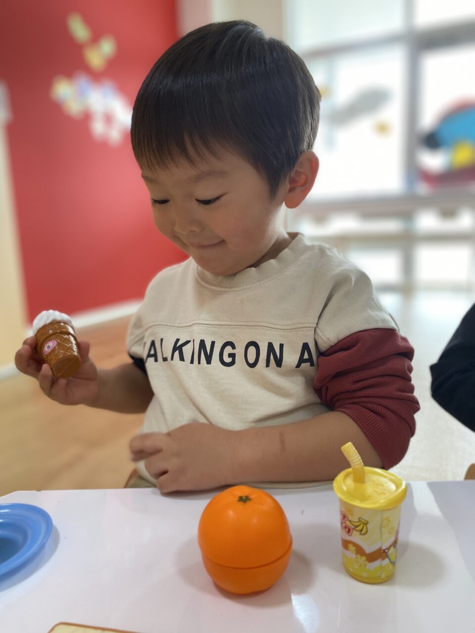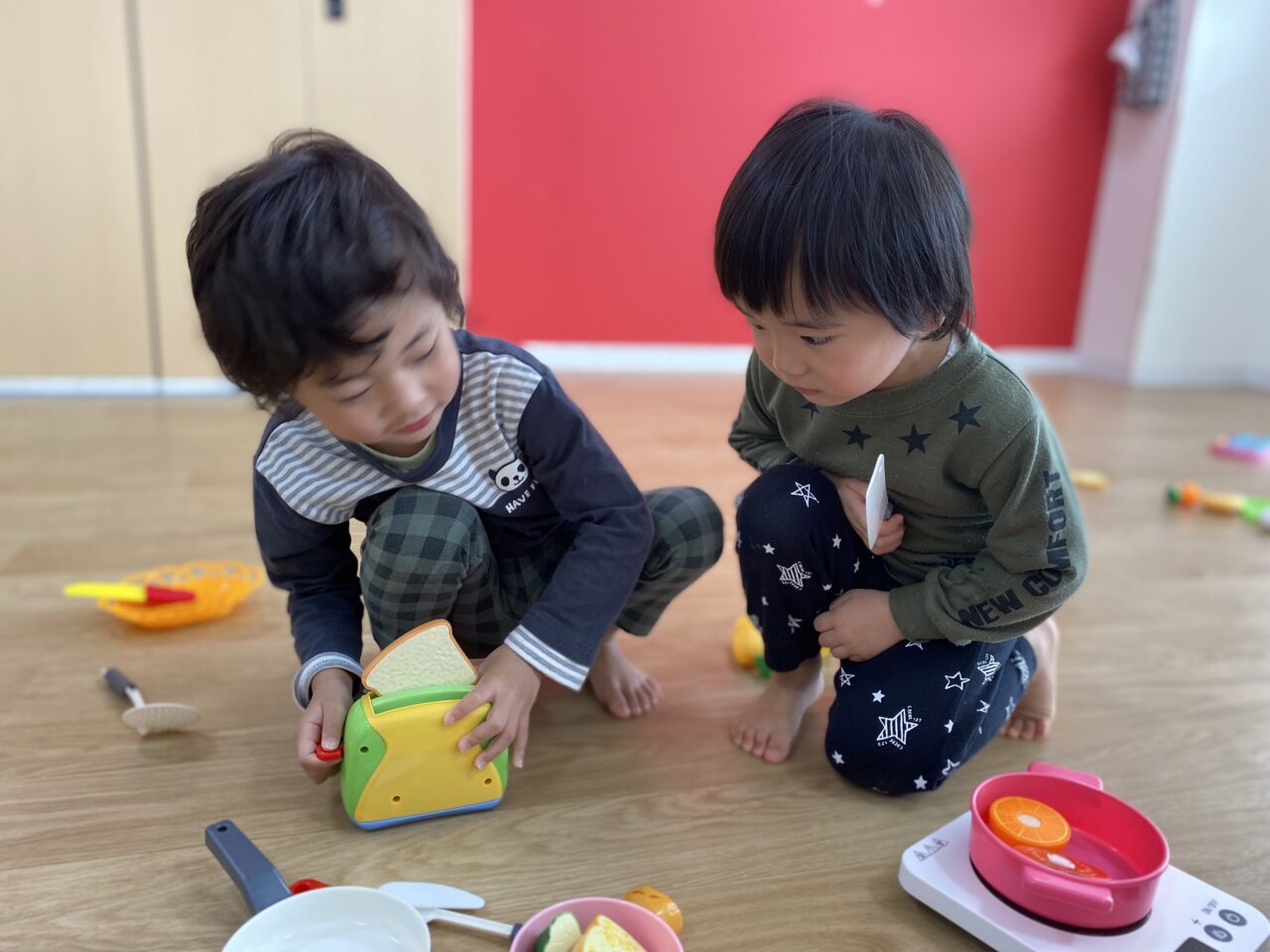 先日、新しいおままごとセットが仲間入りし、子ども達は目をキラキラ✨輝かせながらおままごとで遊びましたので今日はその様子をお伝えしたいと思います?