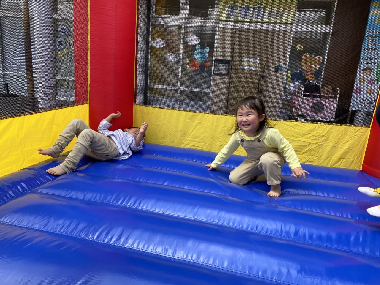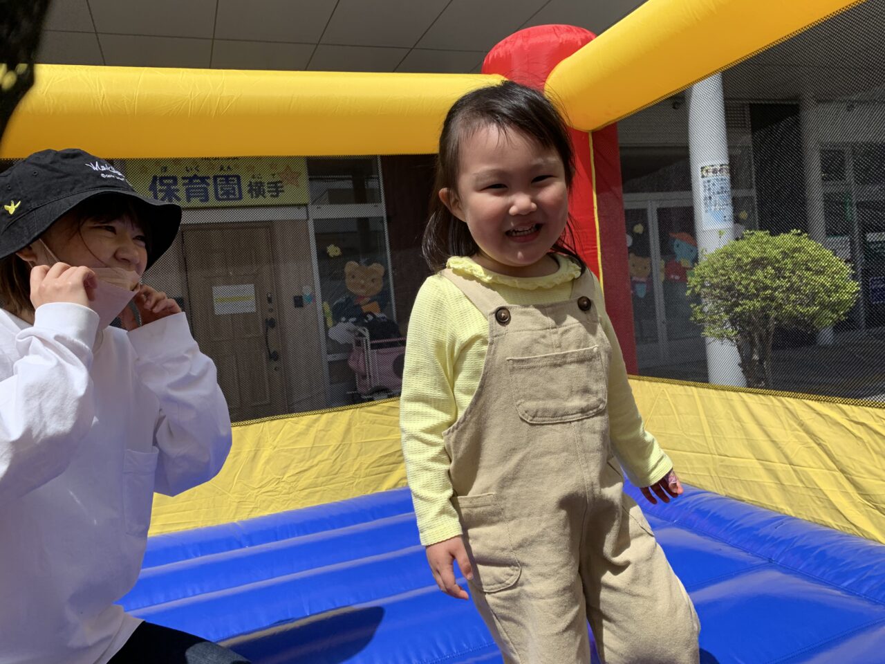 第2回園開放の今日は、待ちに待った!!エアー遊具の登場ですよ??✨