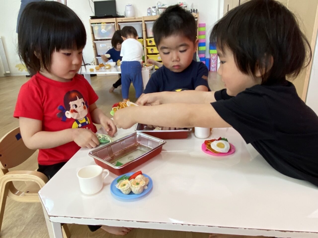 新しい食べ物が仲間入りしたおままごとは、とっても充実していました☺️🍀