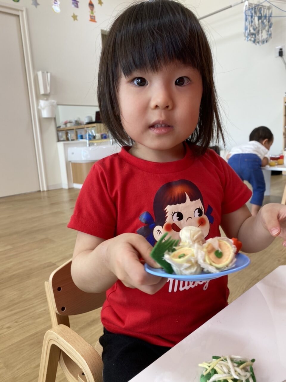 お皿に乗せて、お友だちや保育士にごちそうしてくれました?