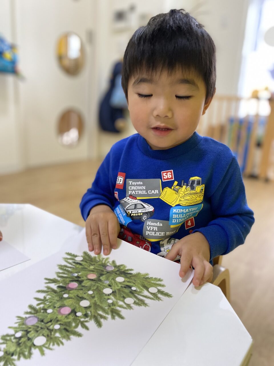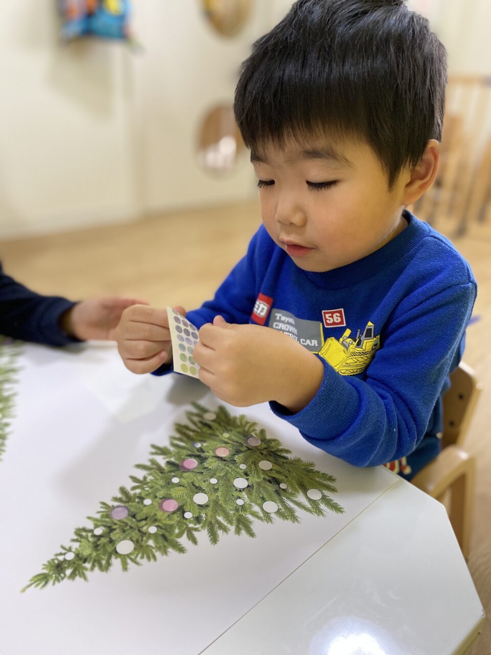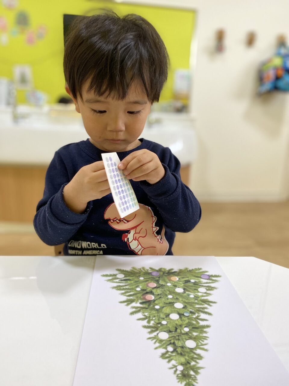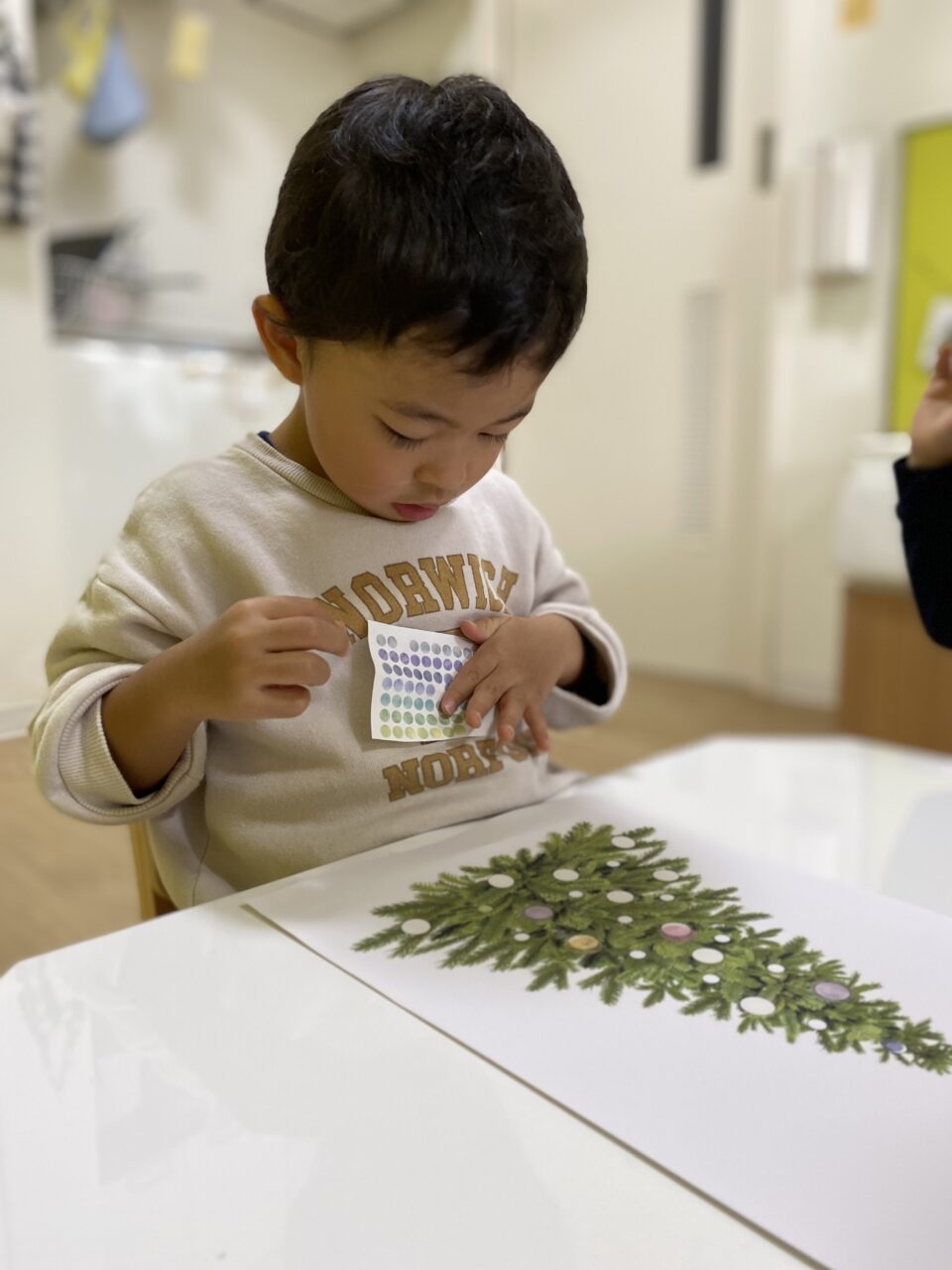 シールを一生懸命に貼る姿を見て、サンタクロースもクリスマスまでワクワクドキドキですね⤴︎⤴︎