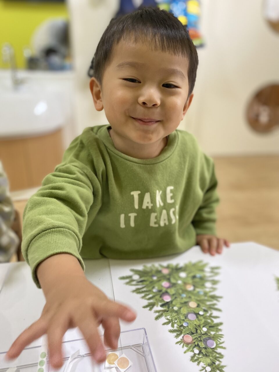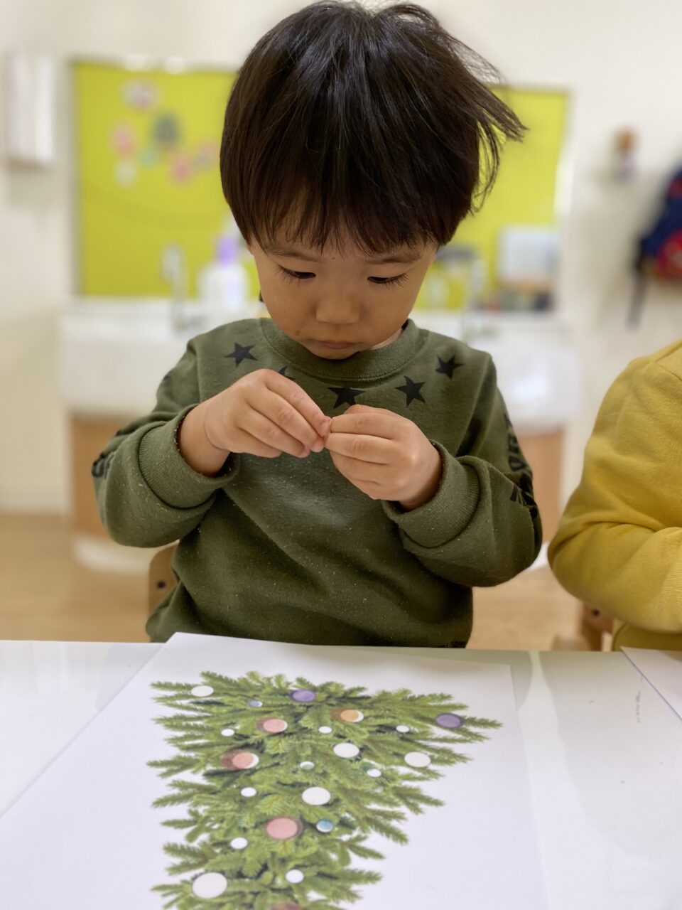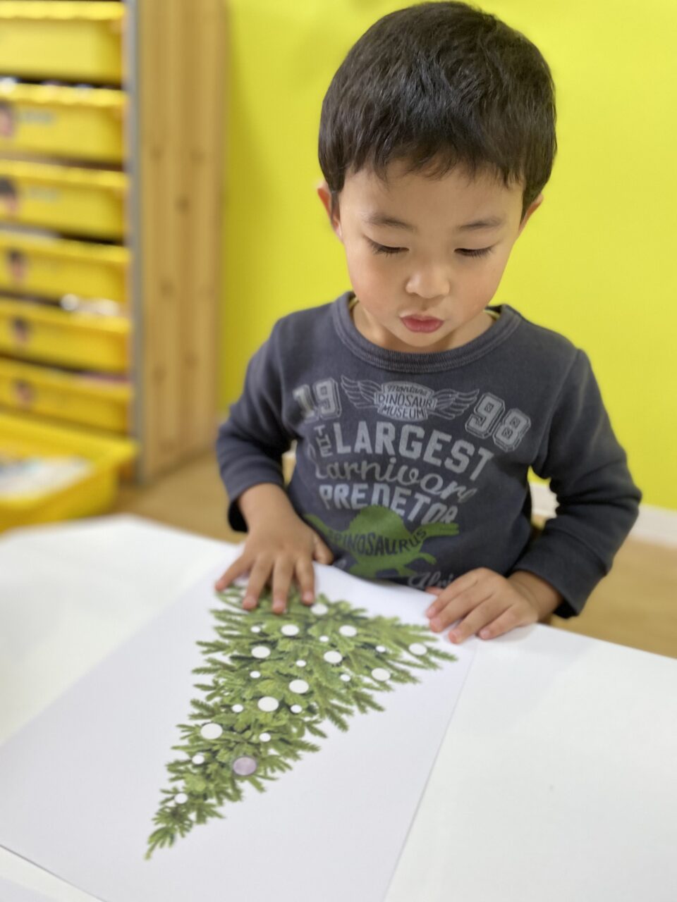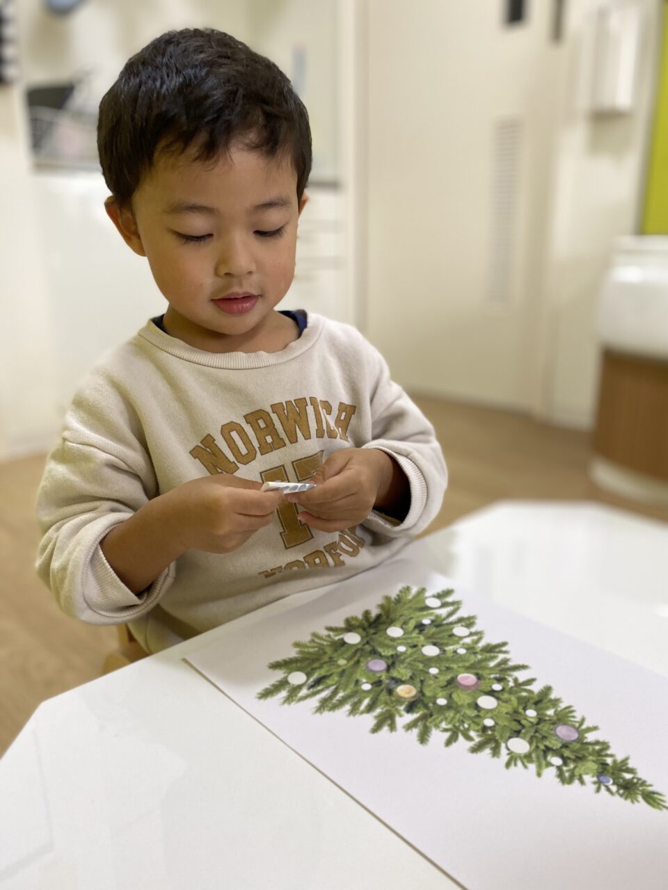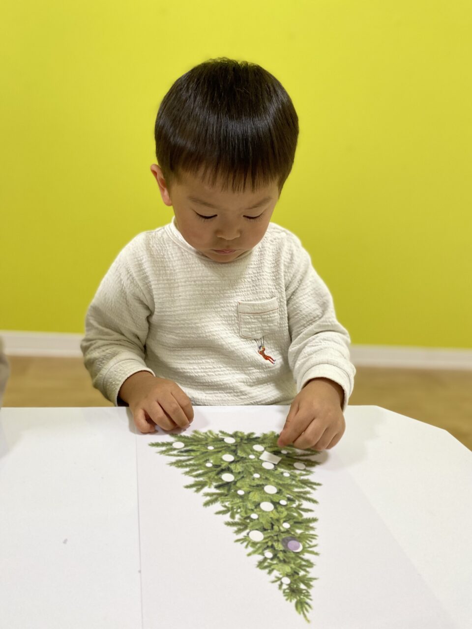 シールを一生懸命に貼る姿を見て、サンタクロースもクリスマスまでワクワクドキドキですね⤴︎⤴︎