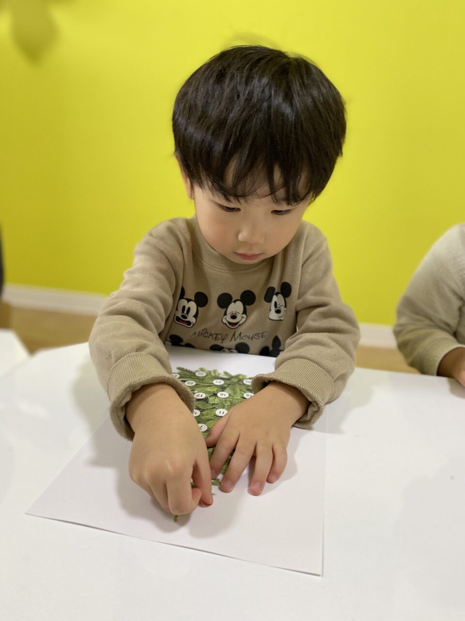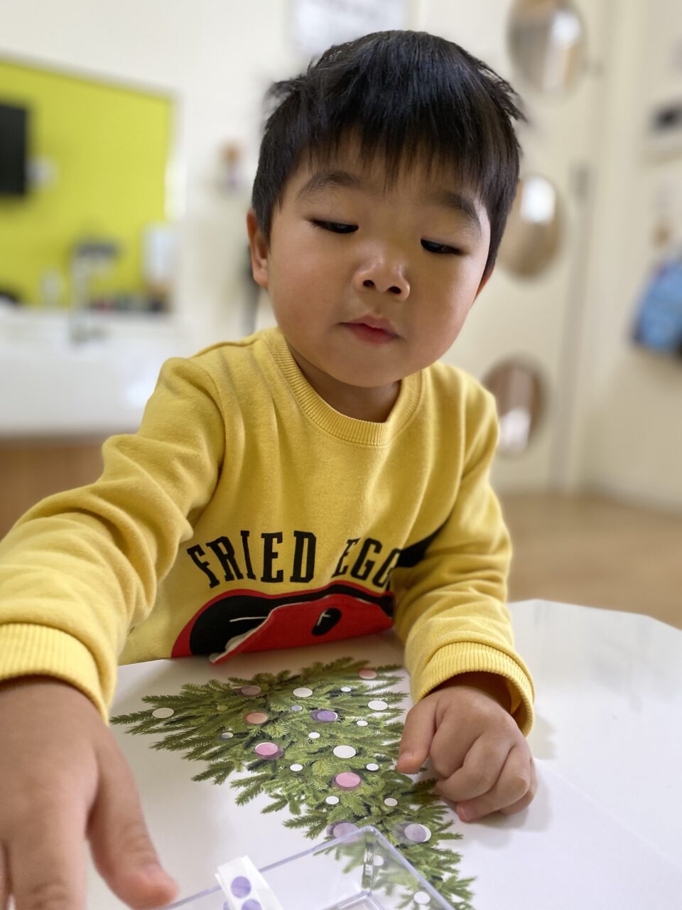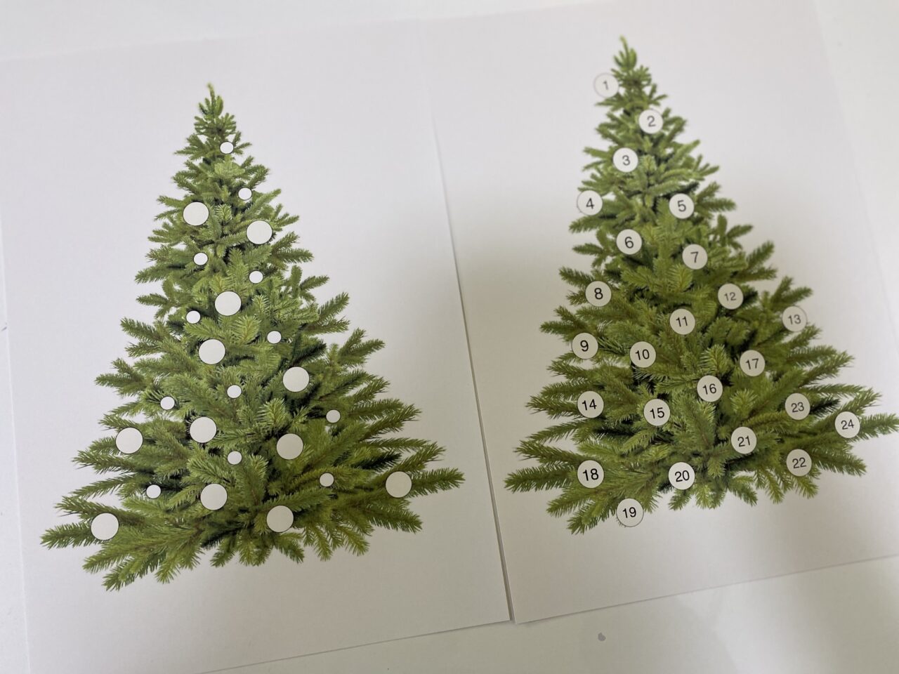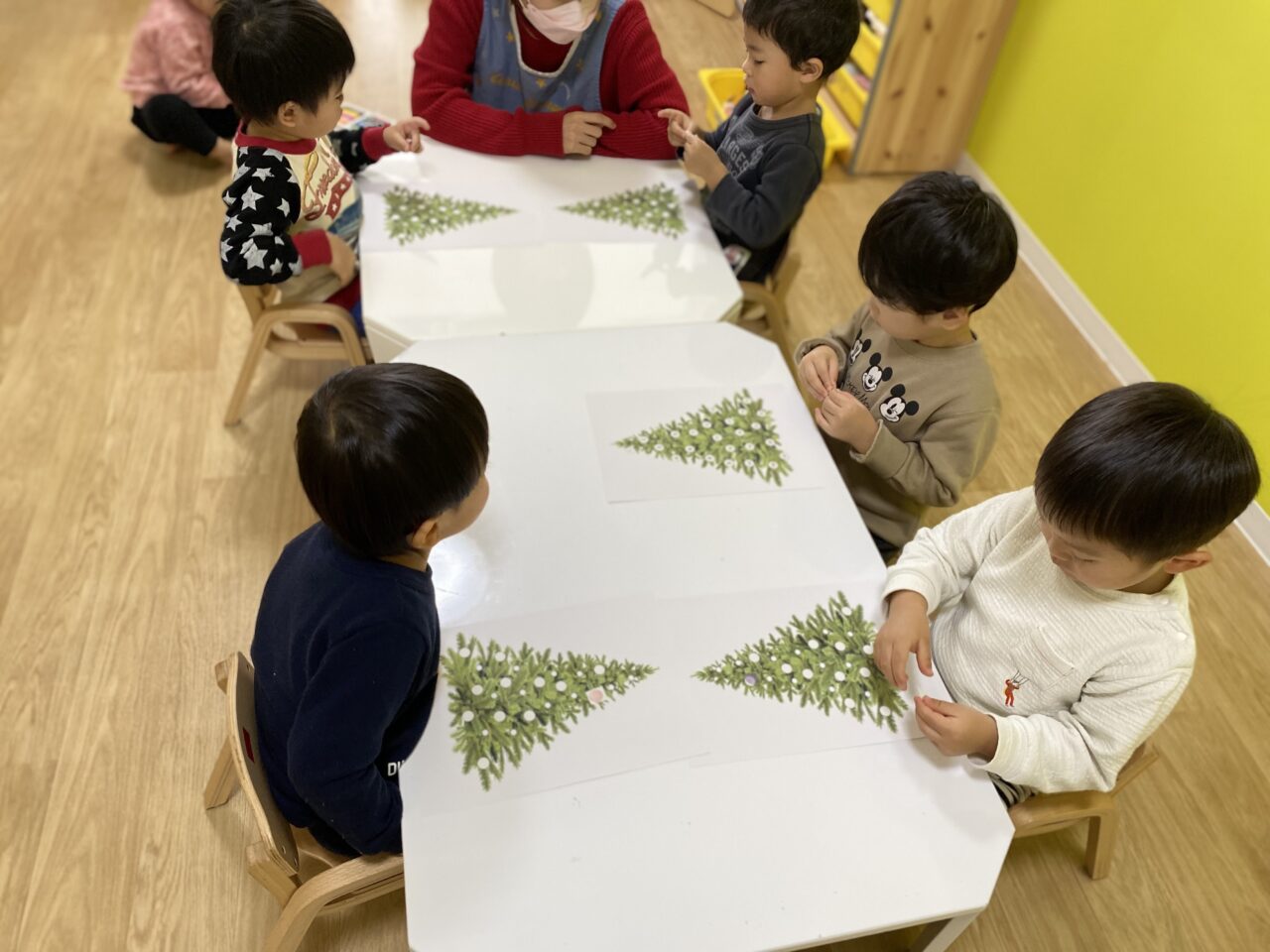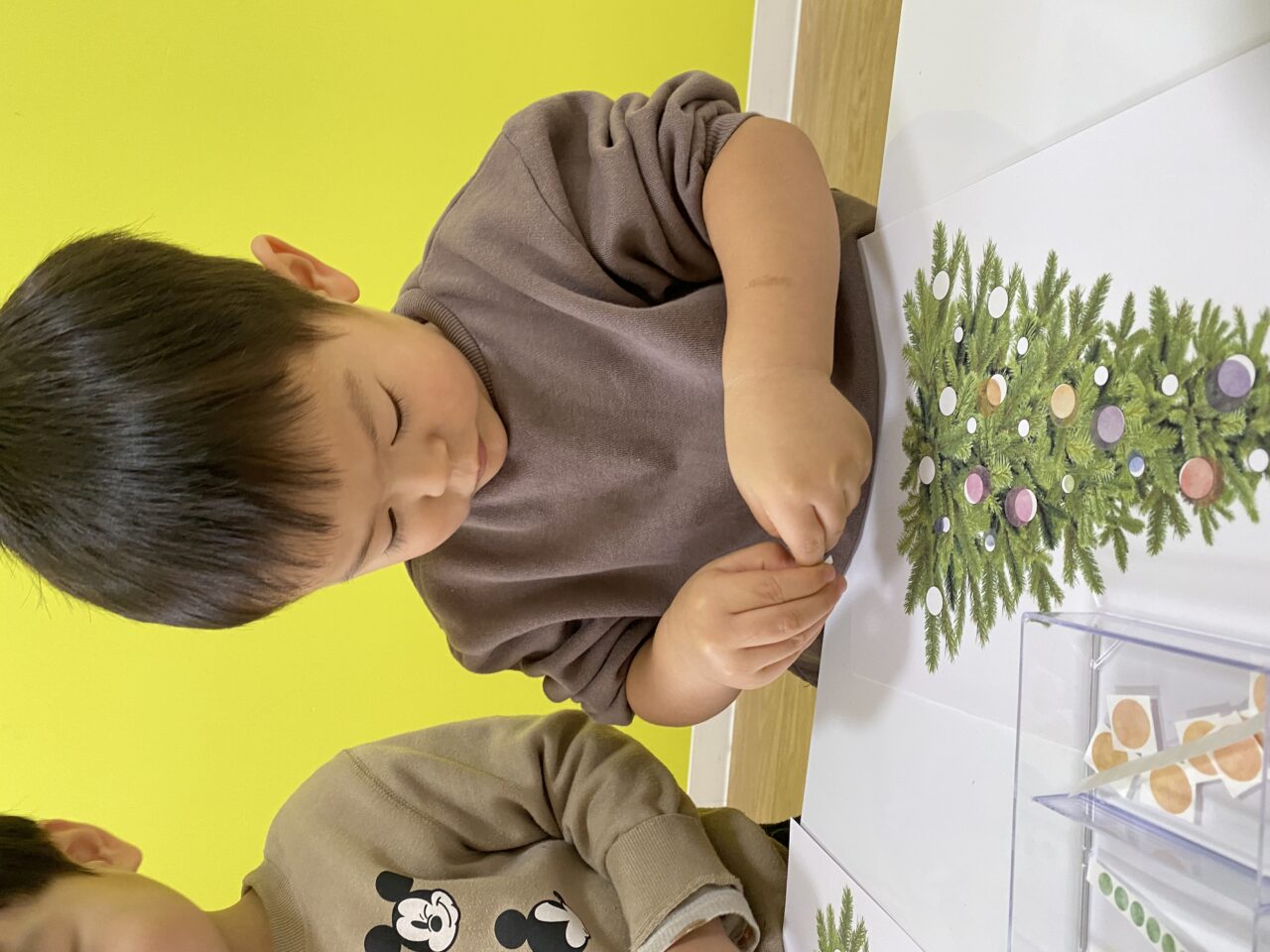 2歳児さんは大小の丸が入ったツリー、数字が入っているのは3歳児さん用です☺︎