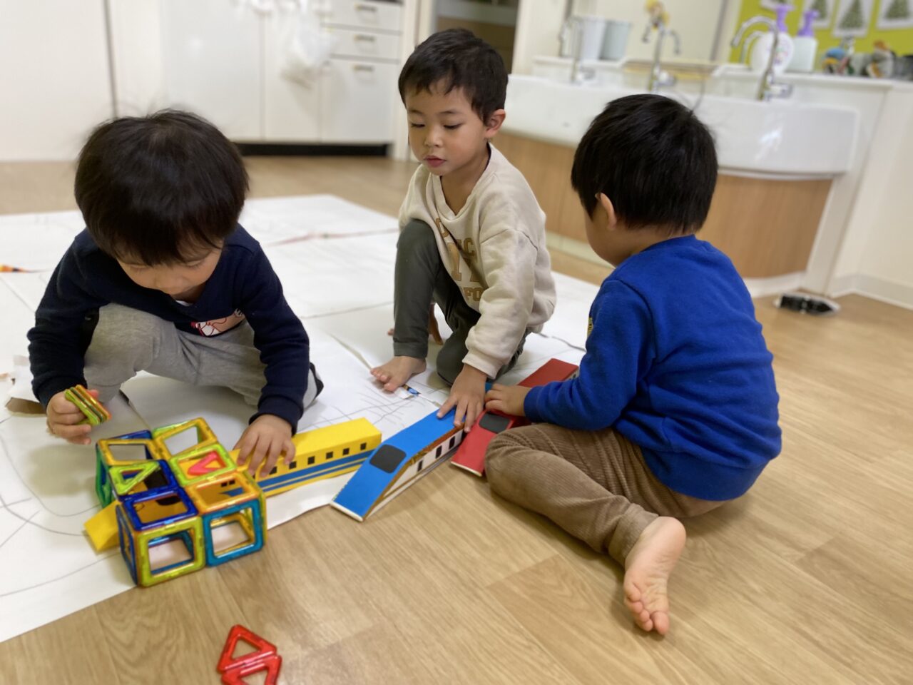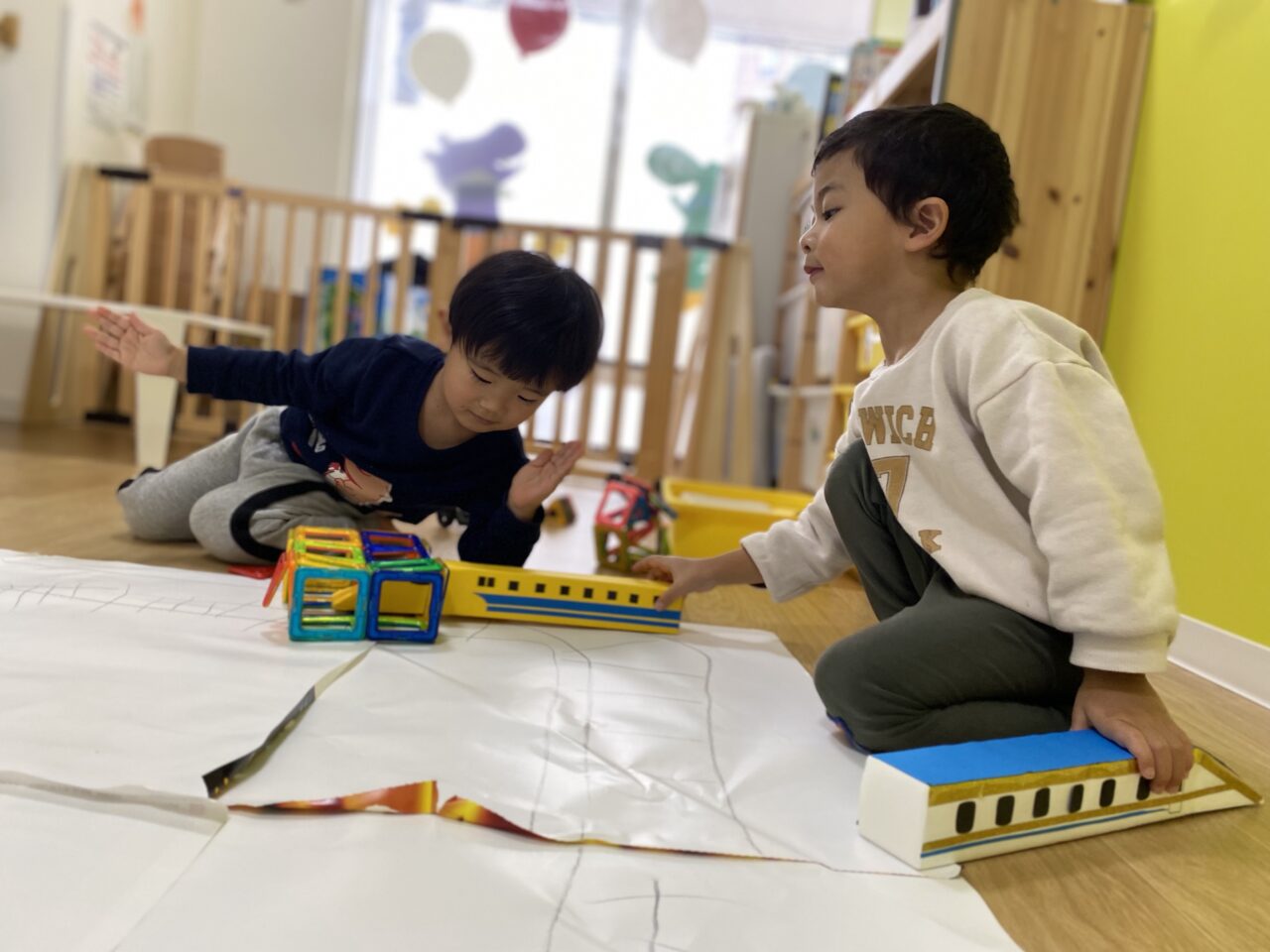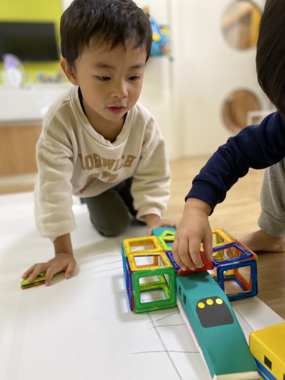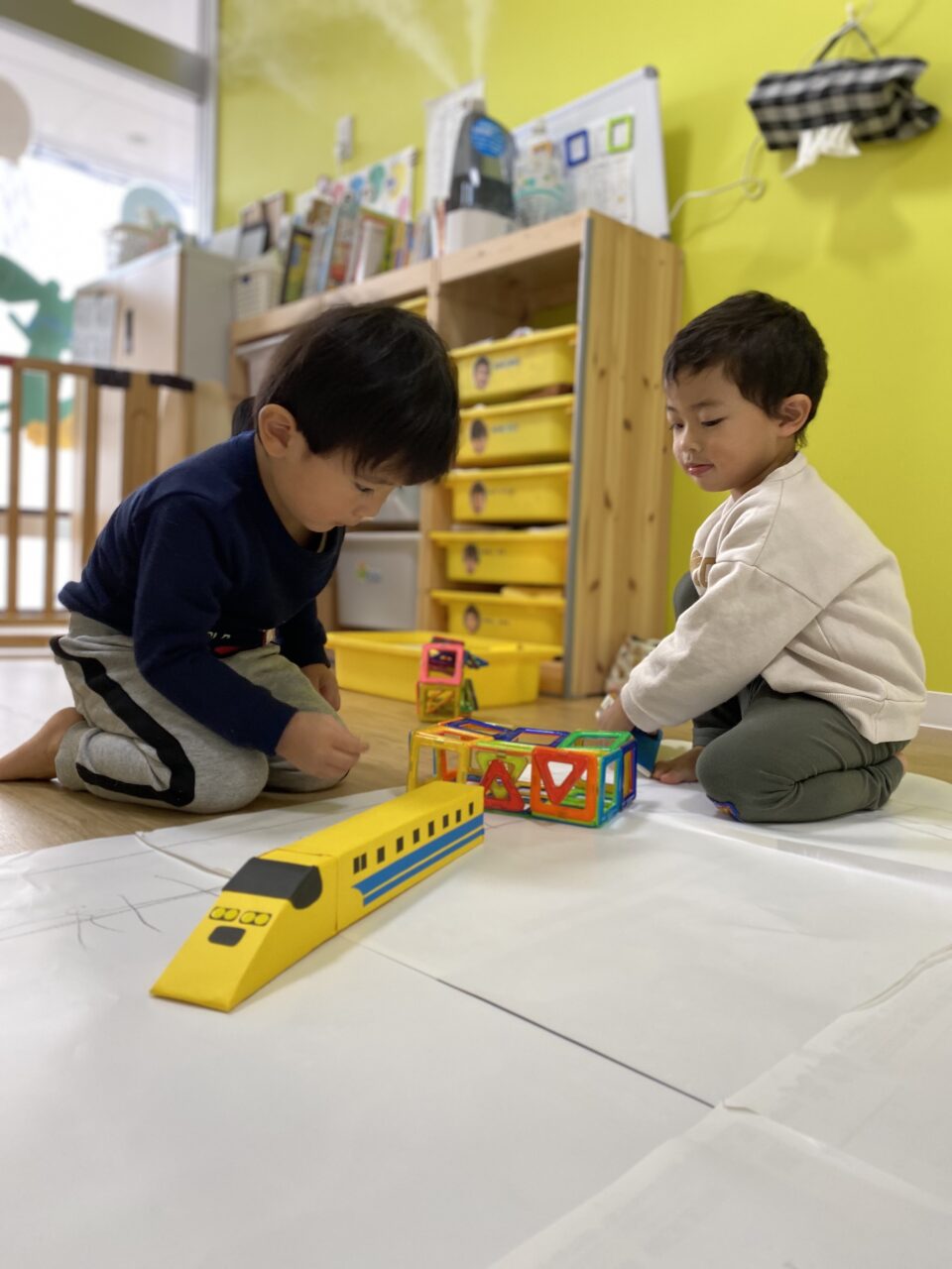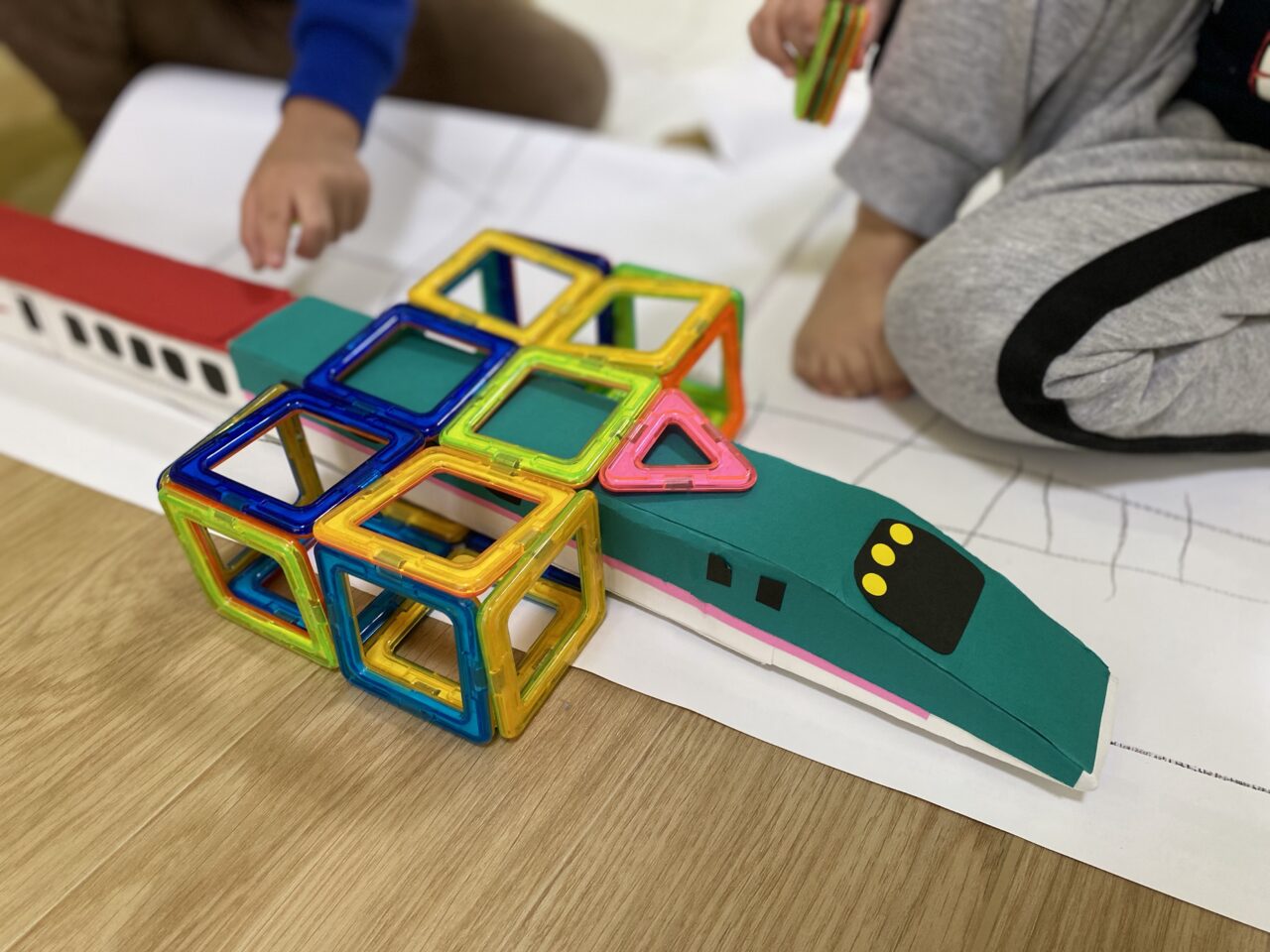 今日はお部屋で何で遊ぼうか〜と子ども達と相談し、マグネットで遊びました!