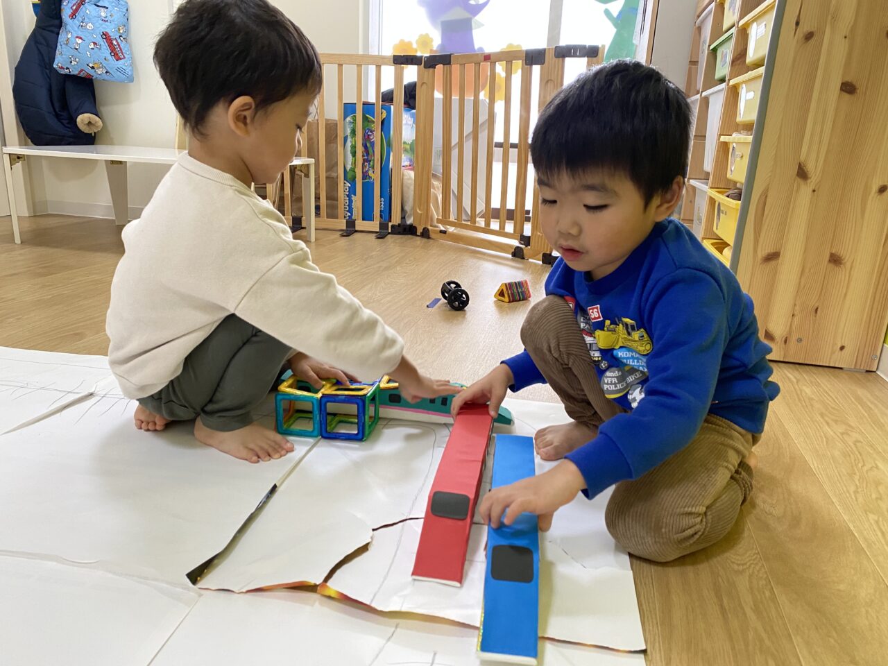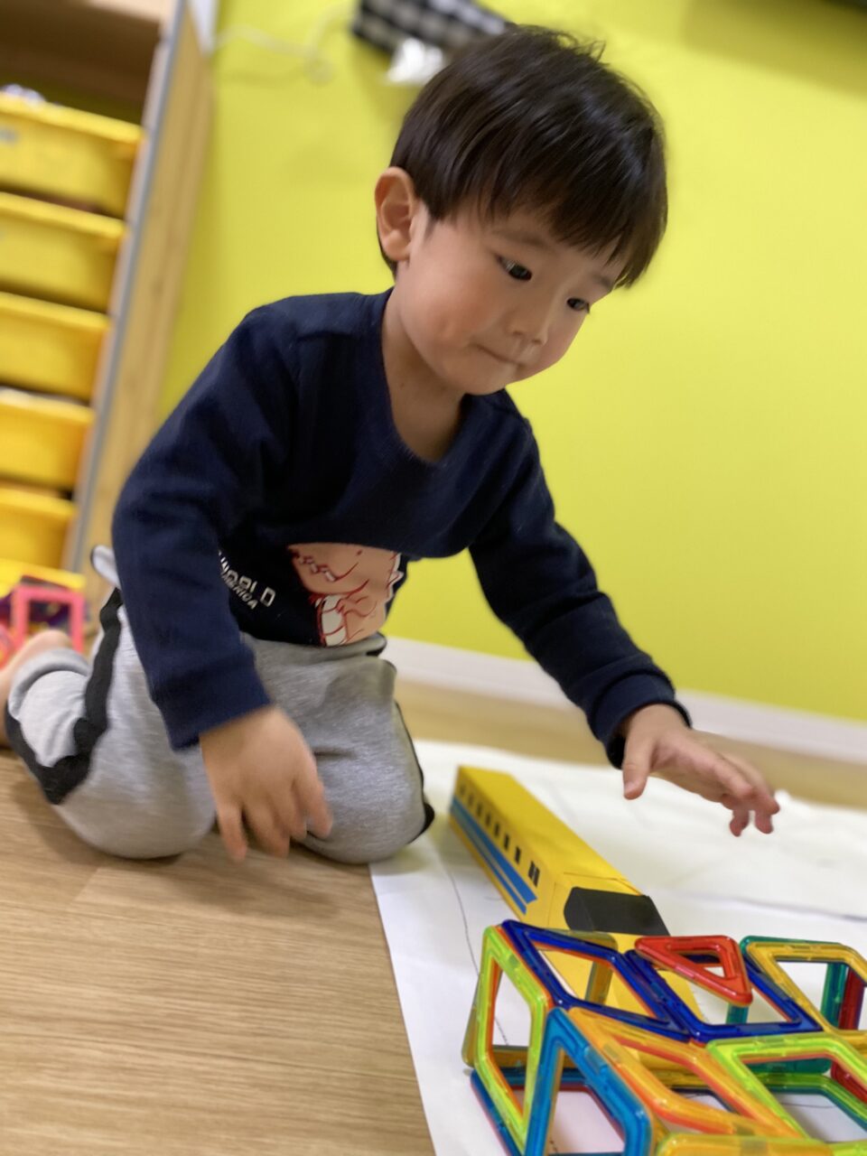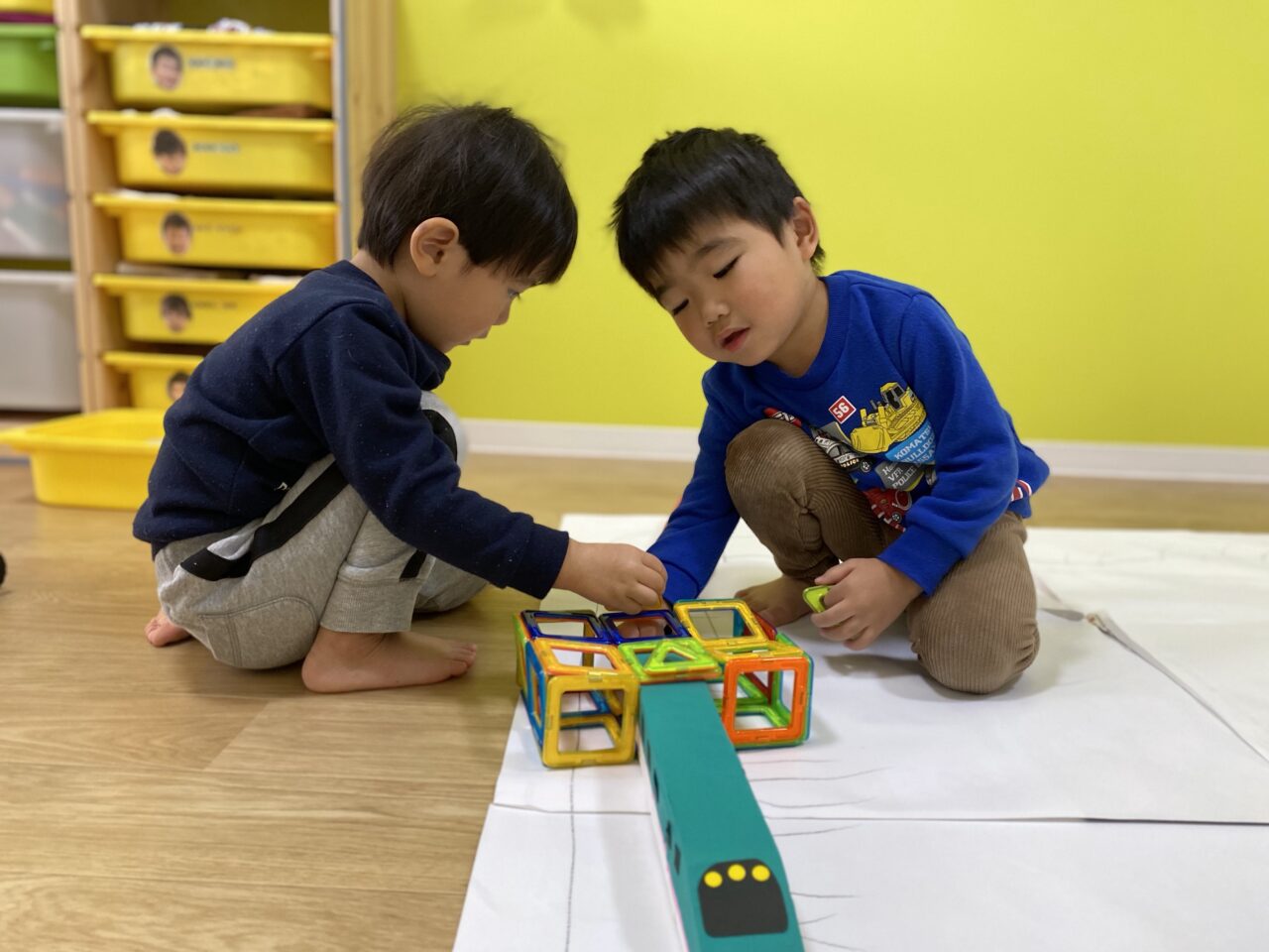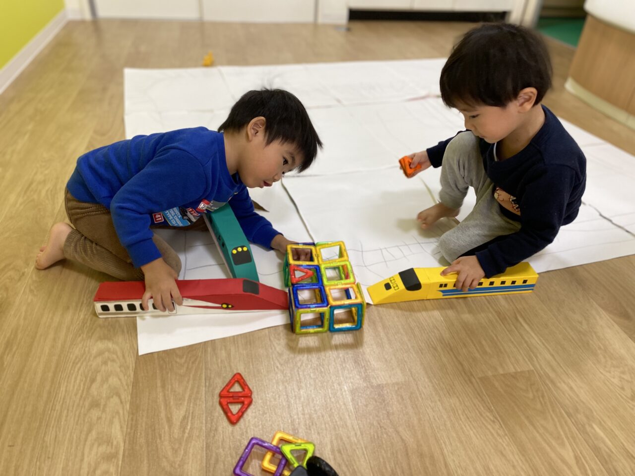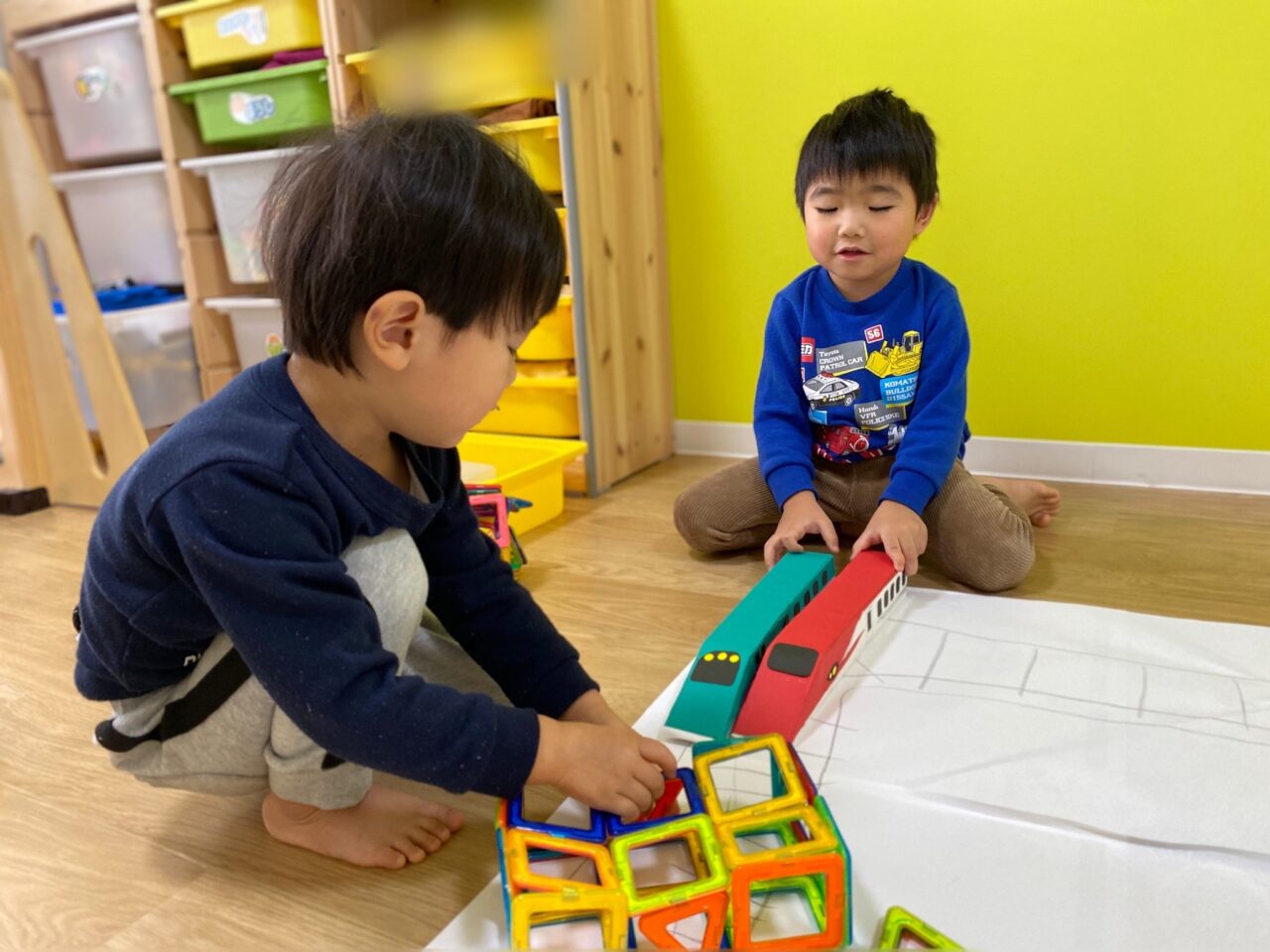 今日はお部屋で何で遊ぼうか〜と子ども達と相談し、マグネットで遊びました!