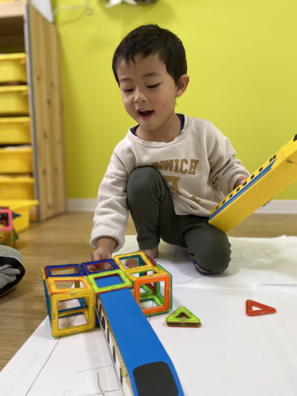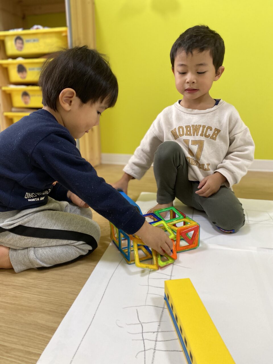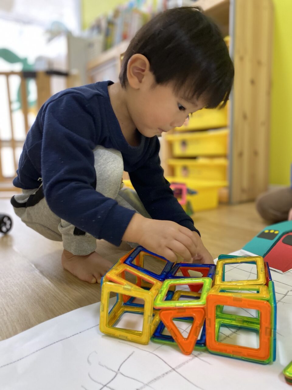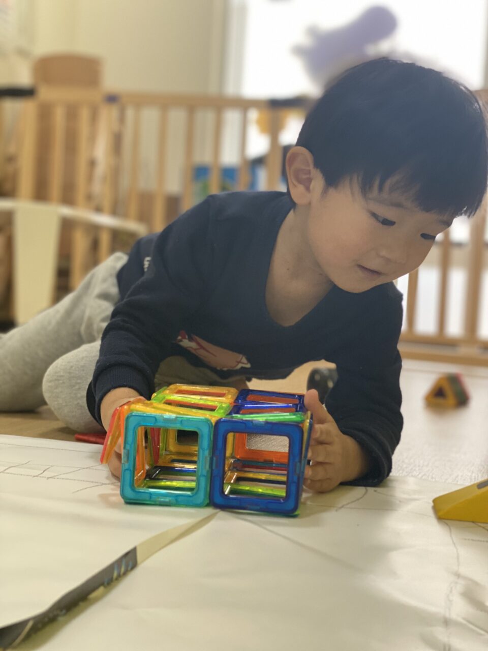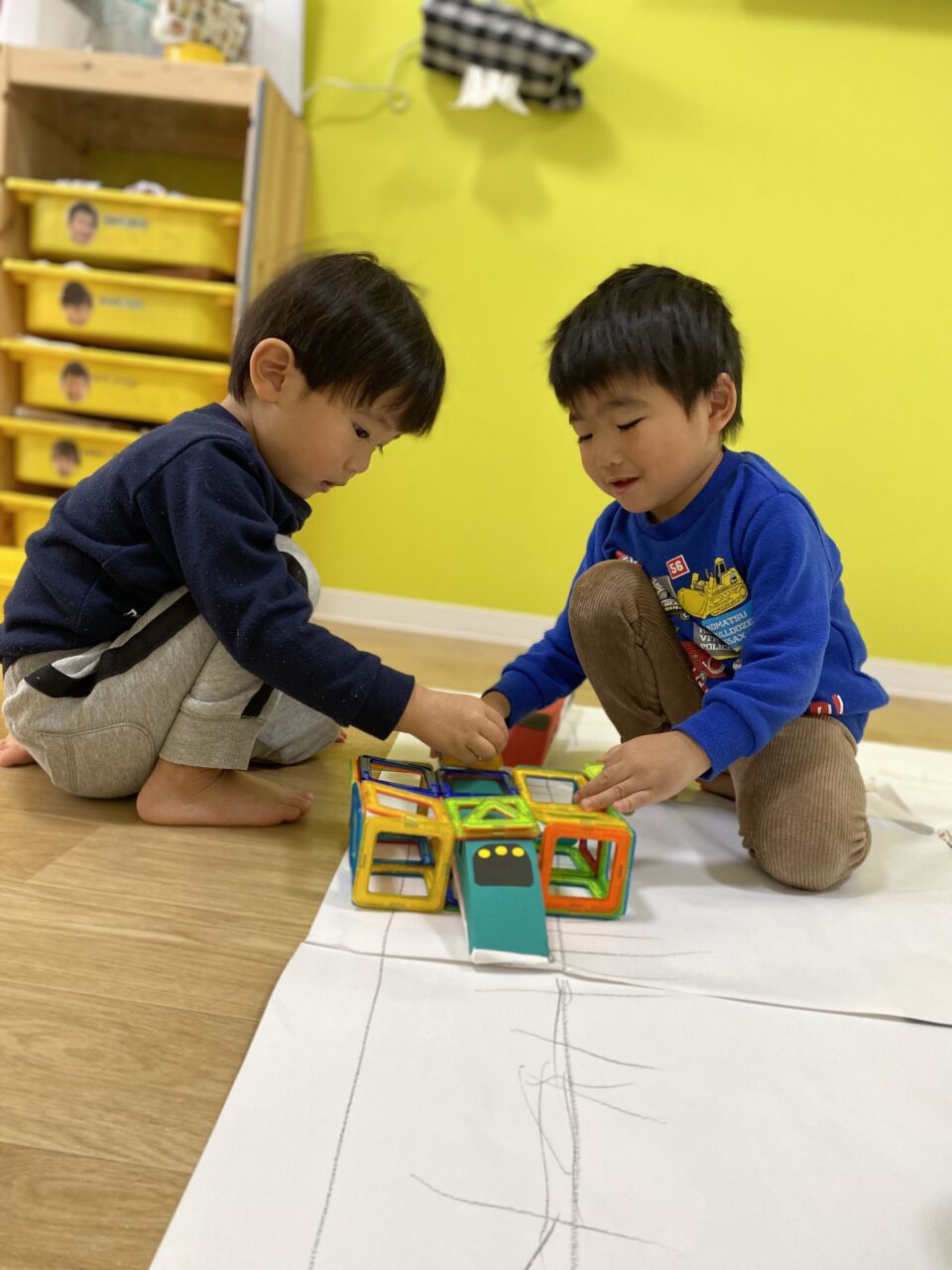 今日はお部屋で何で遊ぼうか〜と子ども達と相談し、マグネットで遊びました!