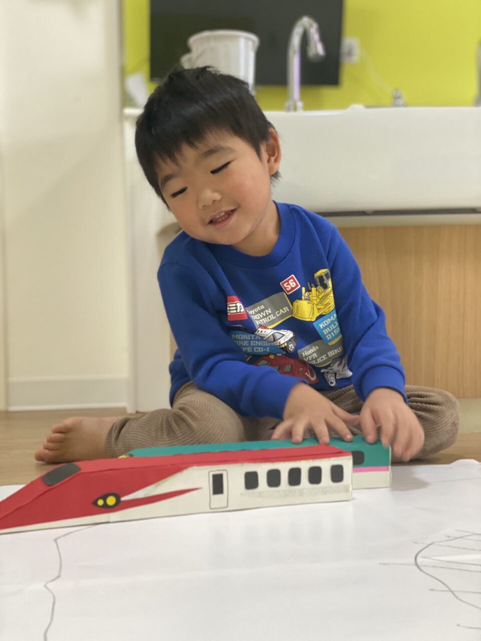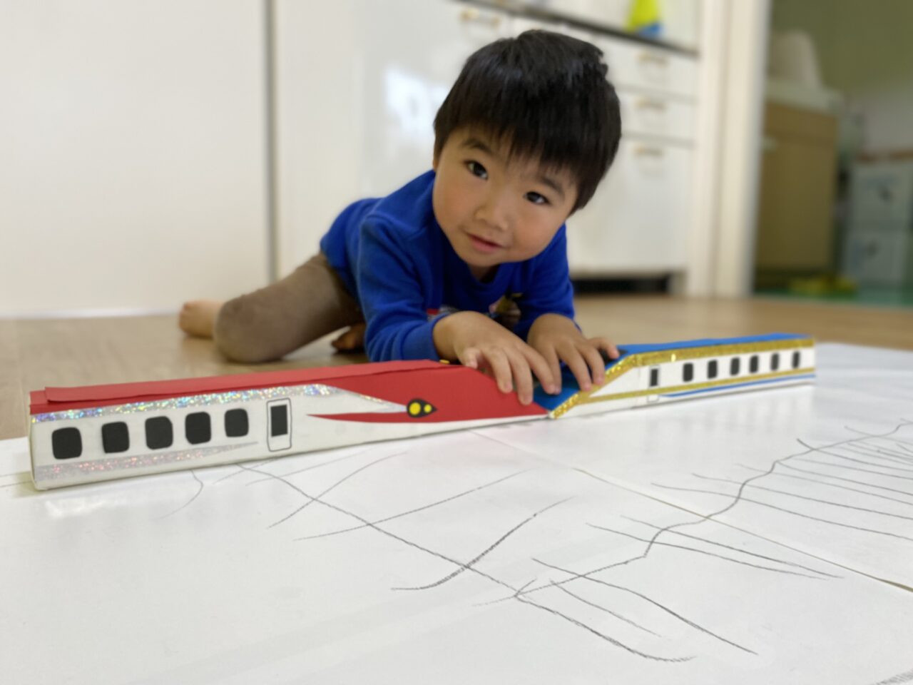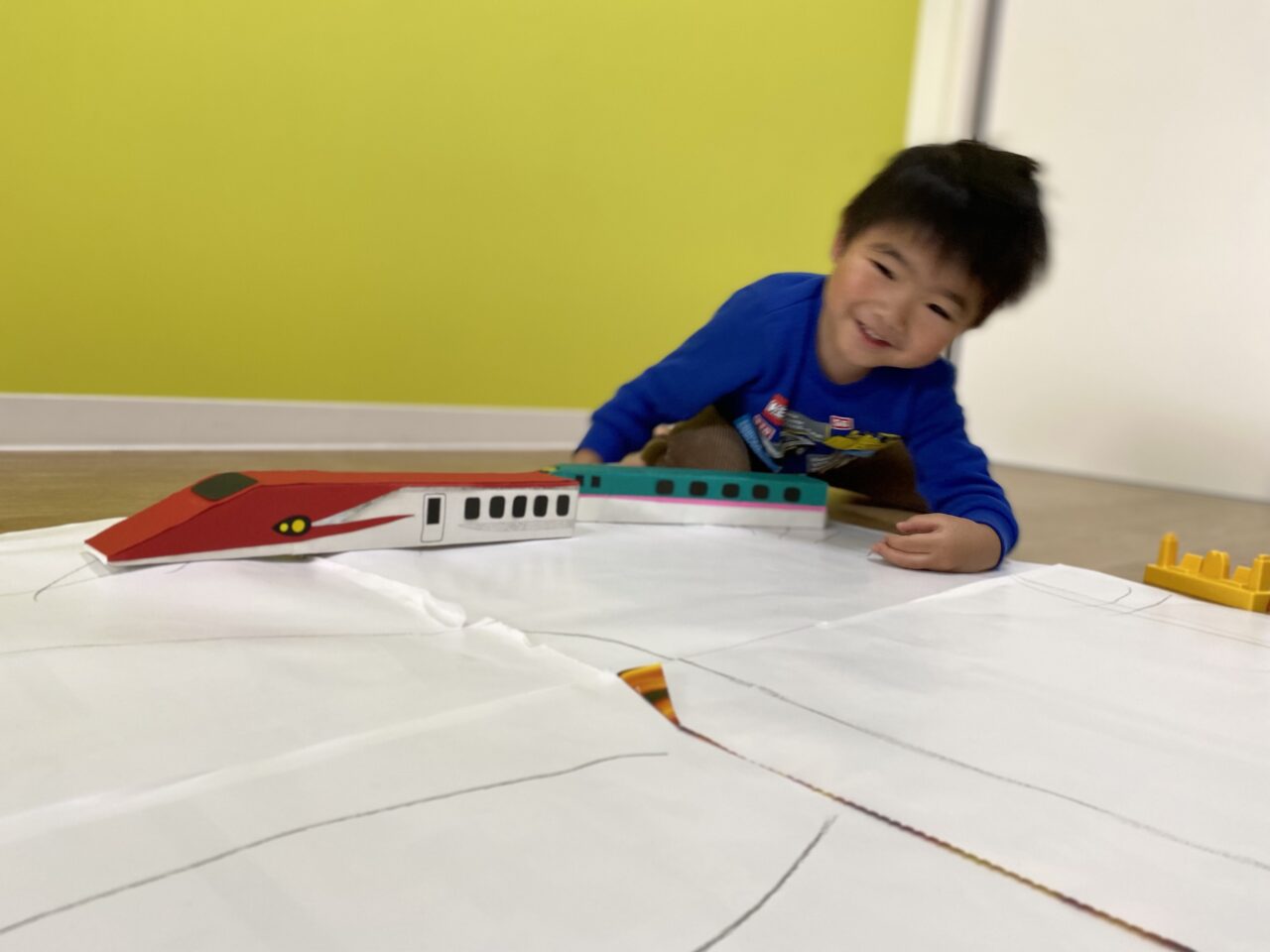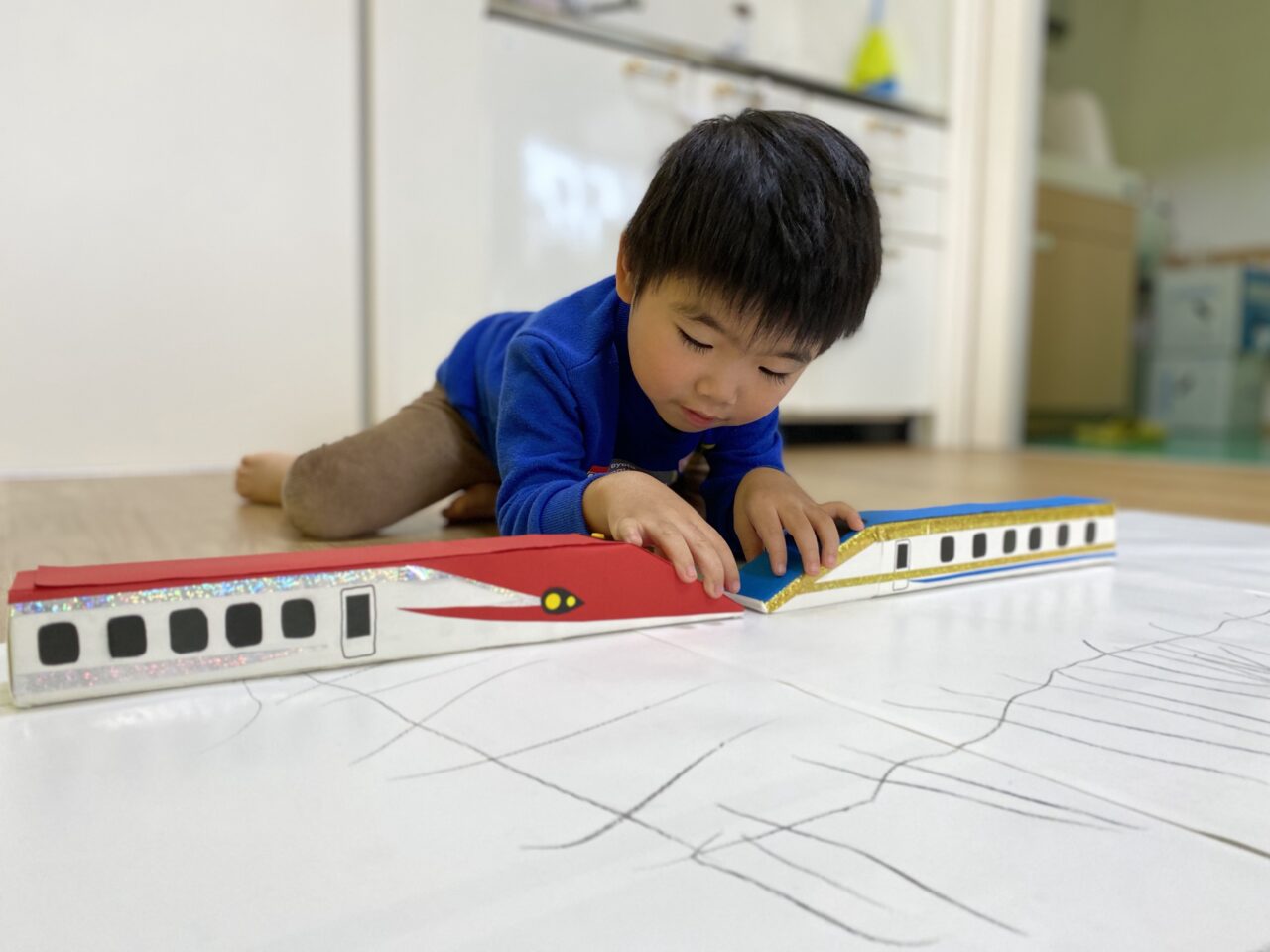 電車大好き♡!Hくんが紙に線路を描いてくれ、新幹線遊びがスタート★!