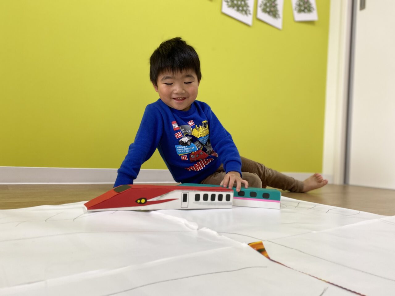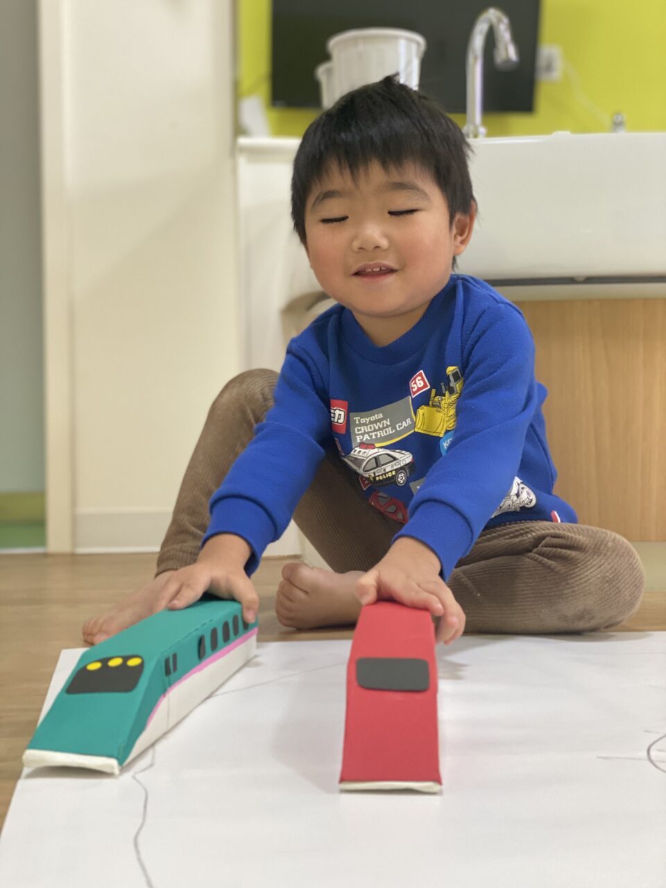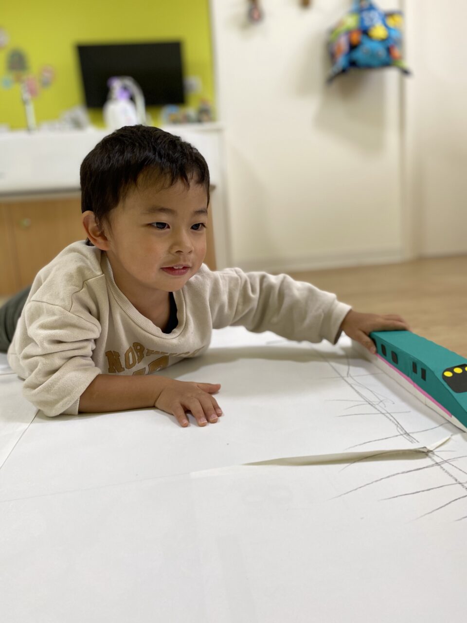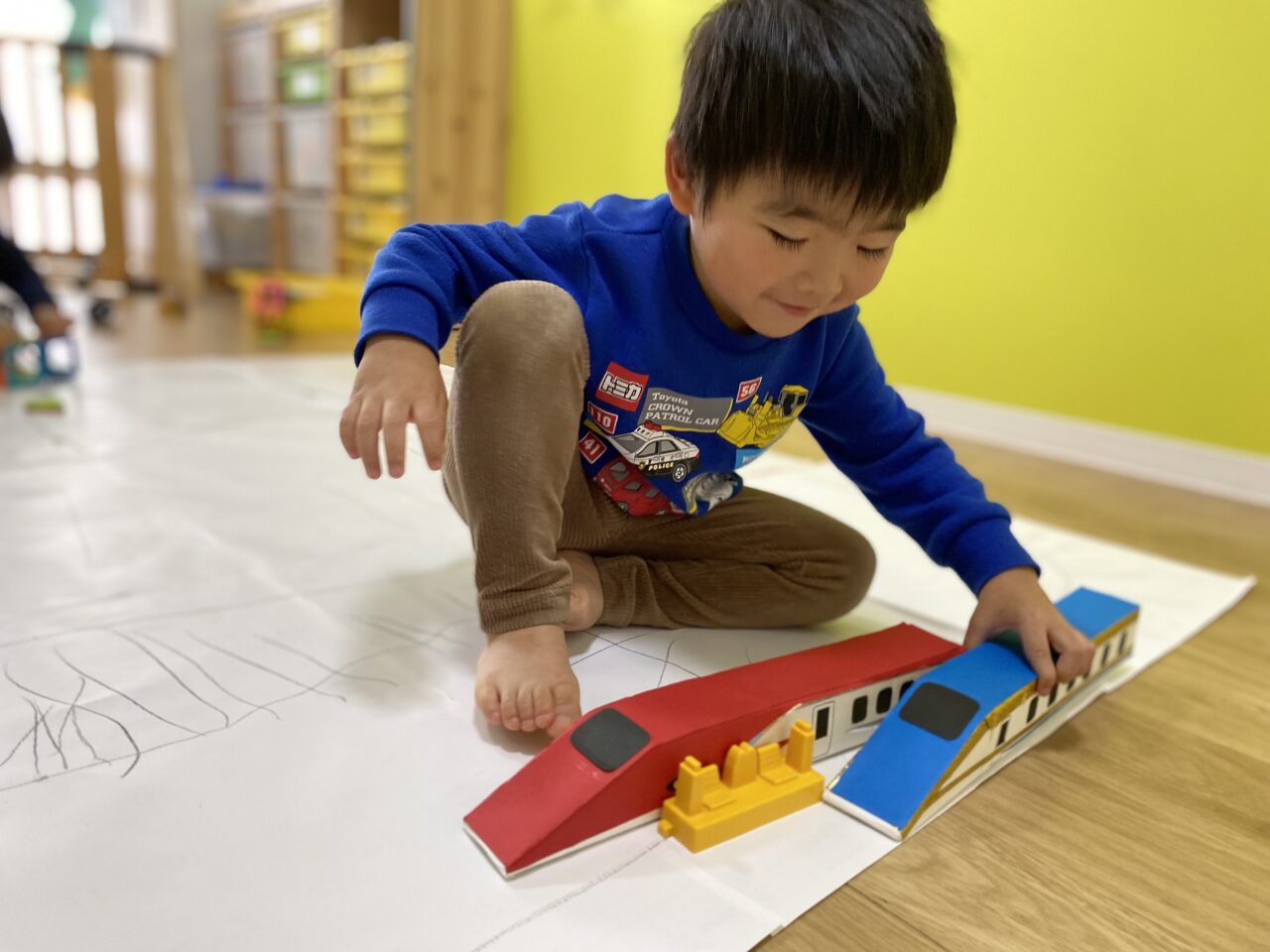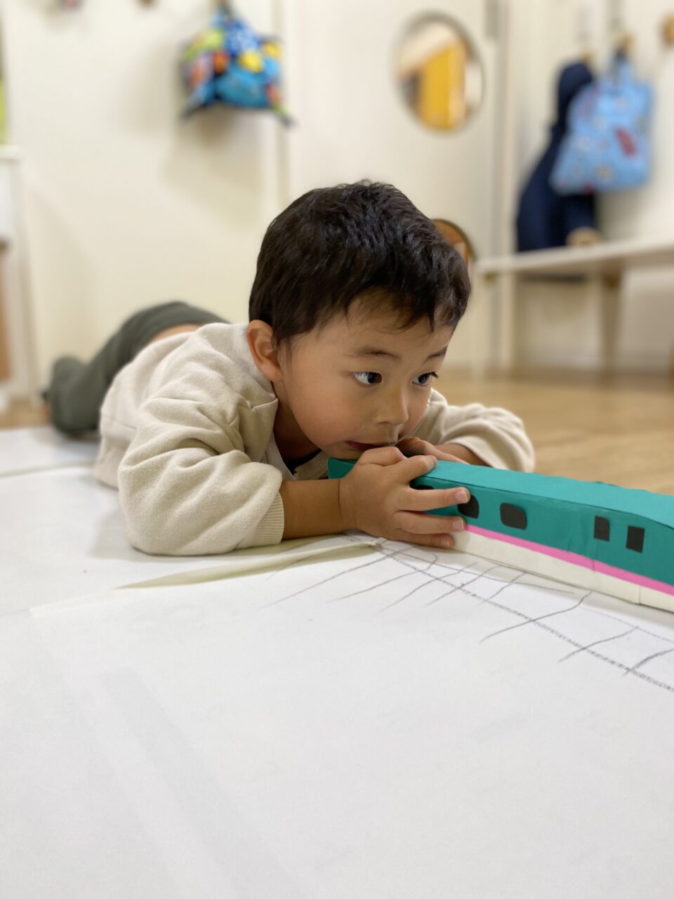 電車大好き♡!Hくんが紙に線路を描いてくれ、新幹線遊びがスタート★!