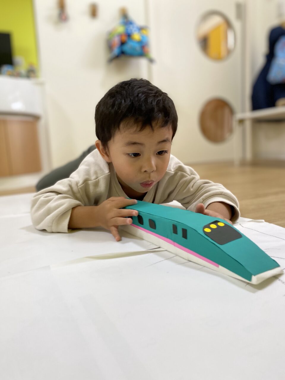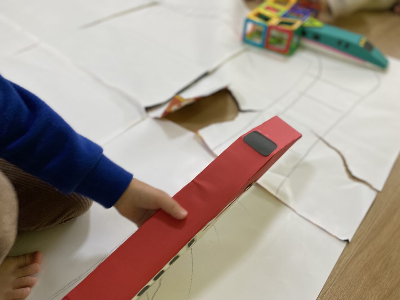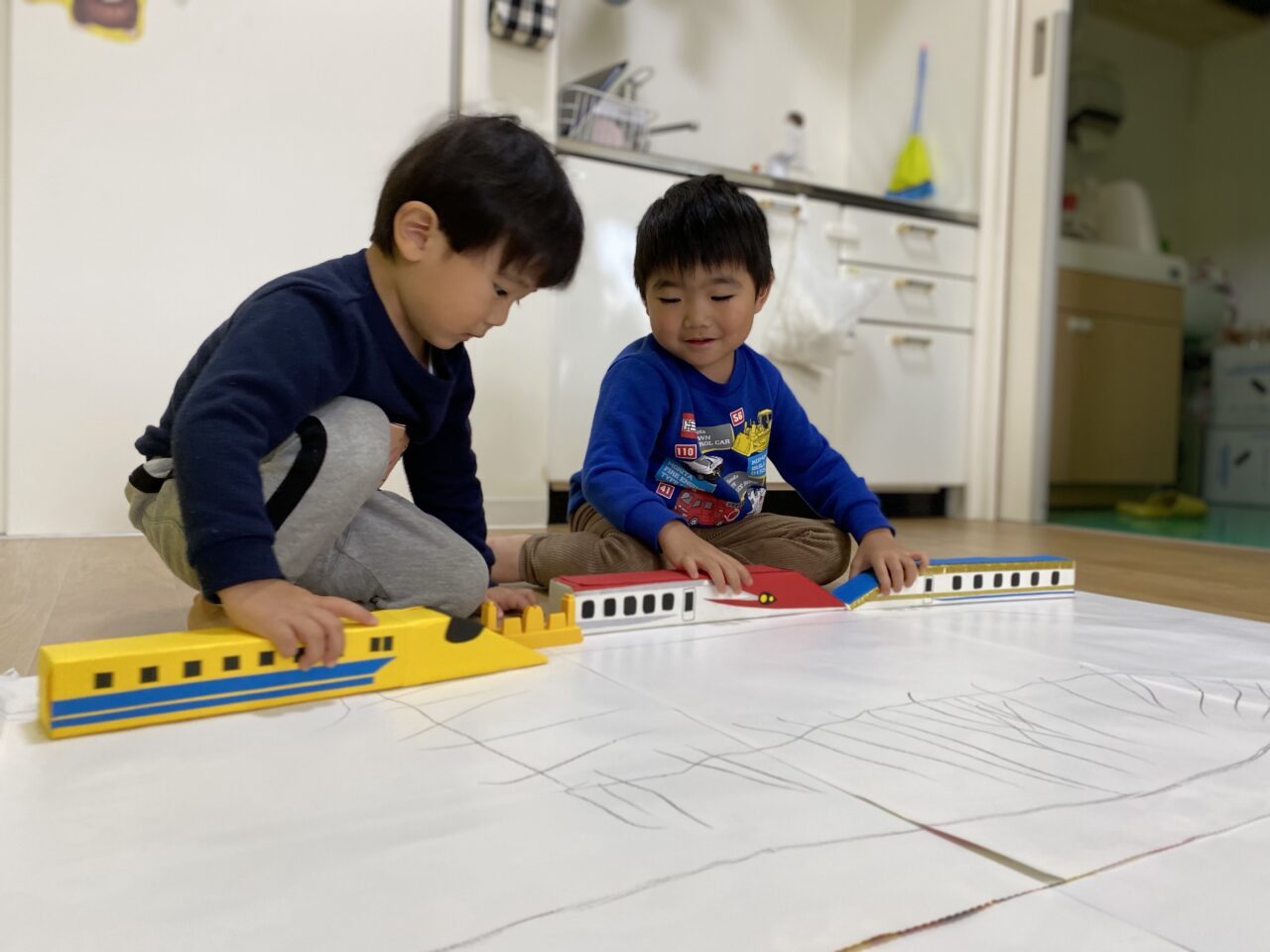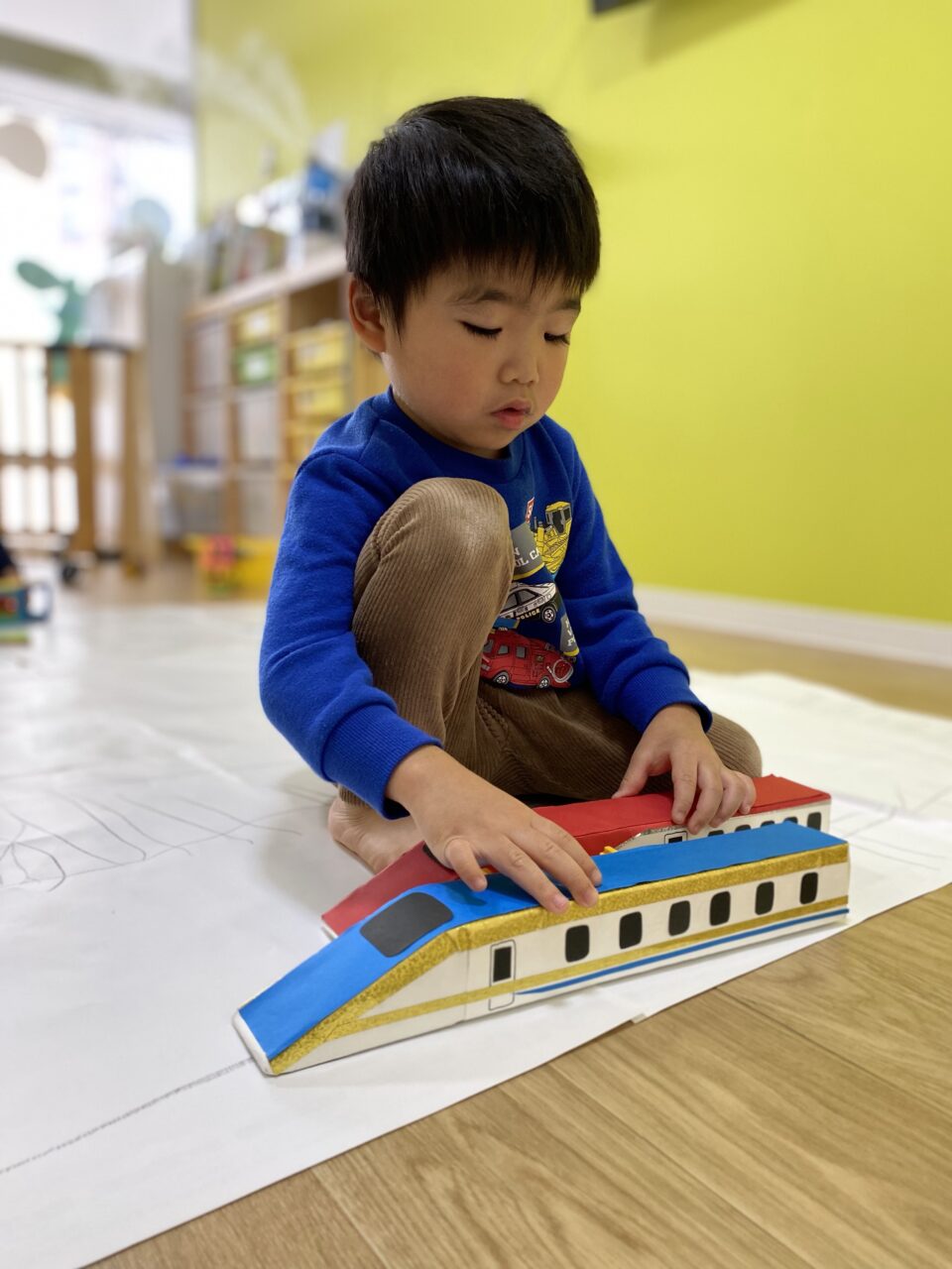 電車大好き♡!Hくんが紙に線路を描いてくれ、新幹線遊びがスタート★!