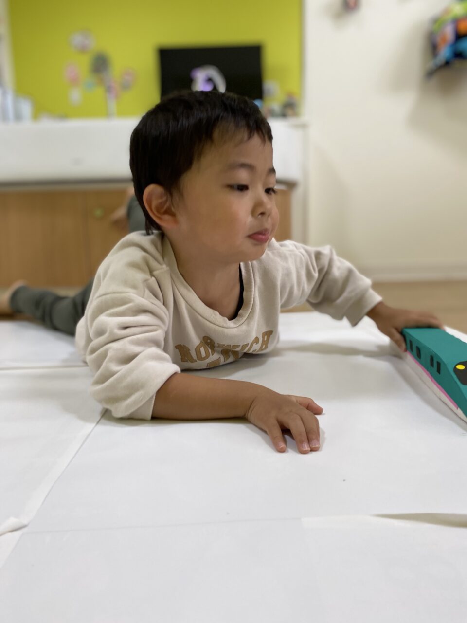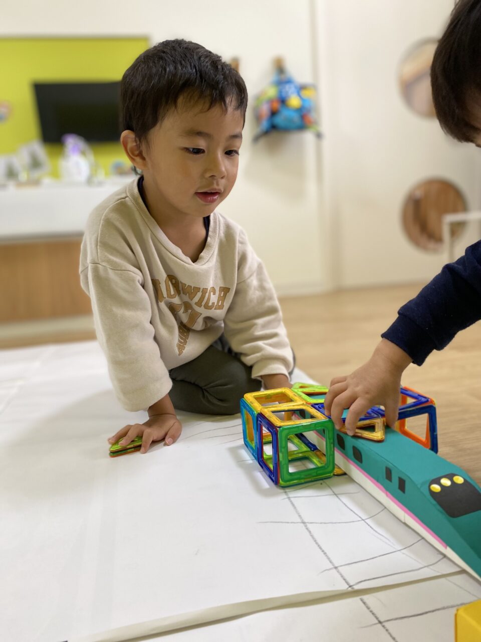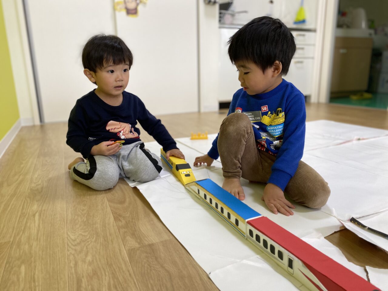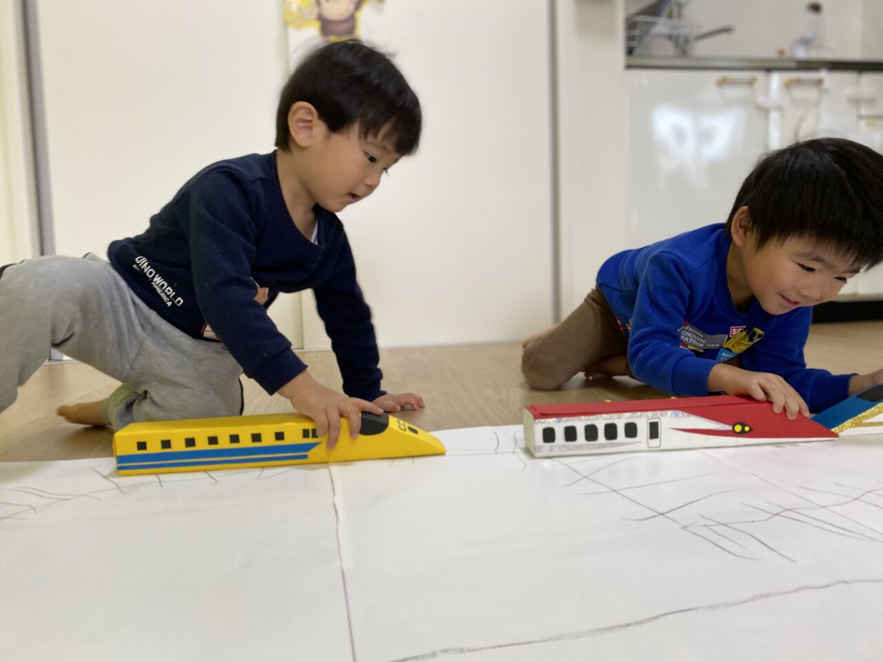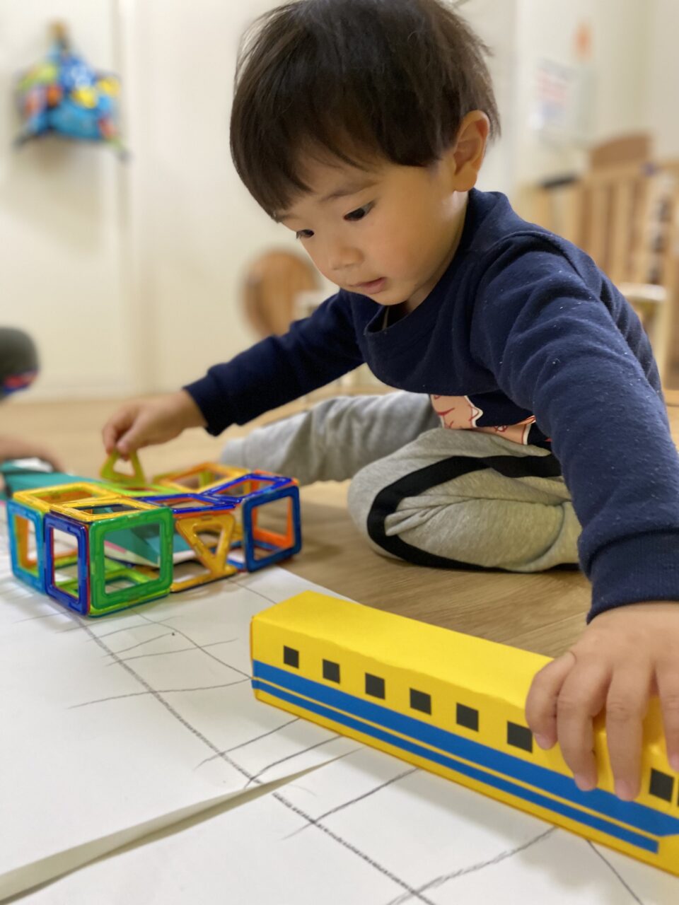 電車大好き♡!Hくんが紙に線路を描いてくれ、新幹線遊びがスタート★!