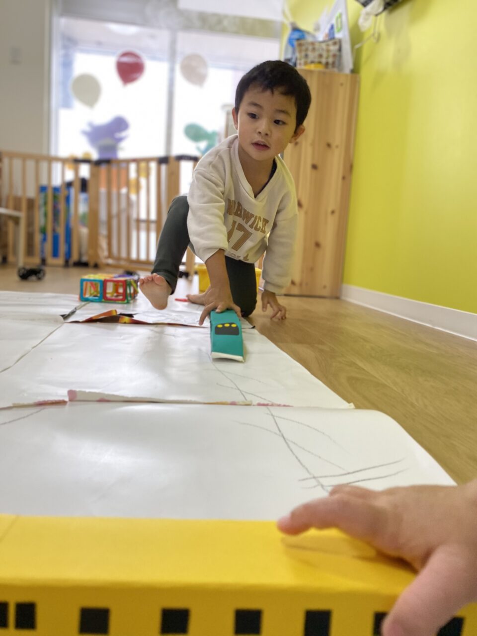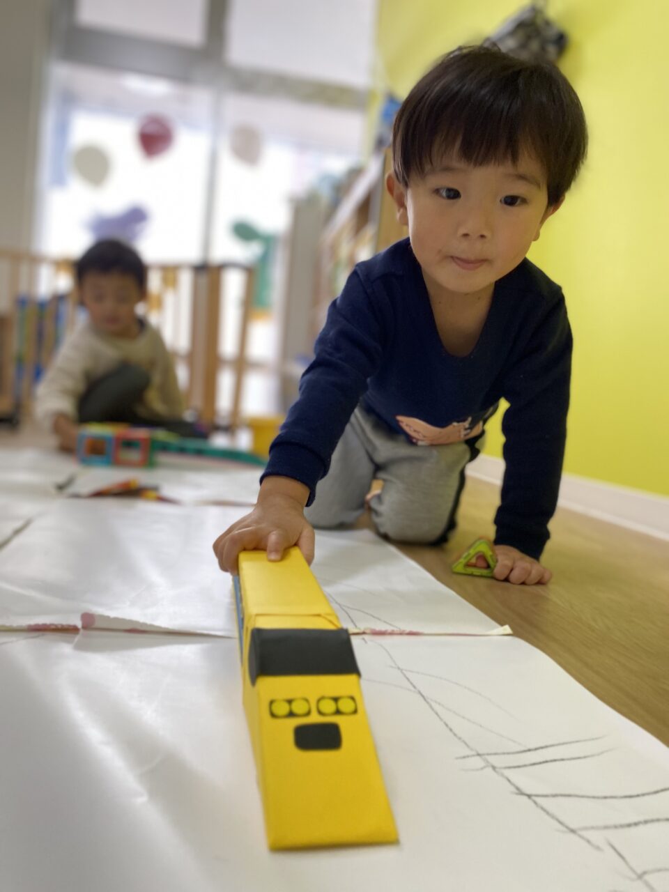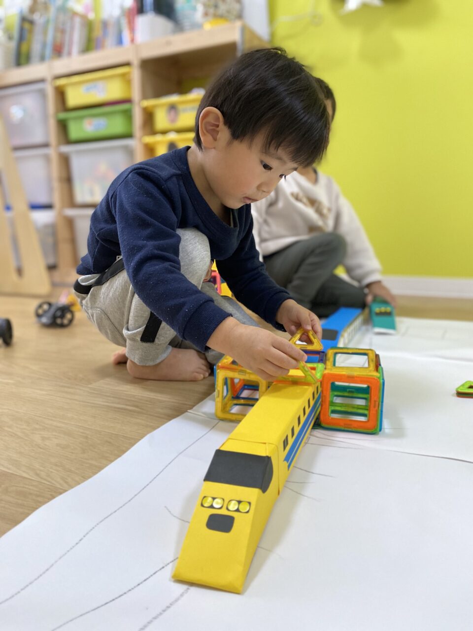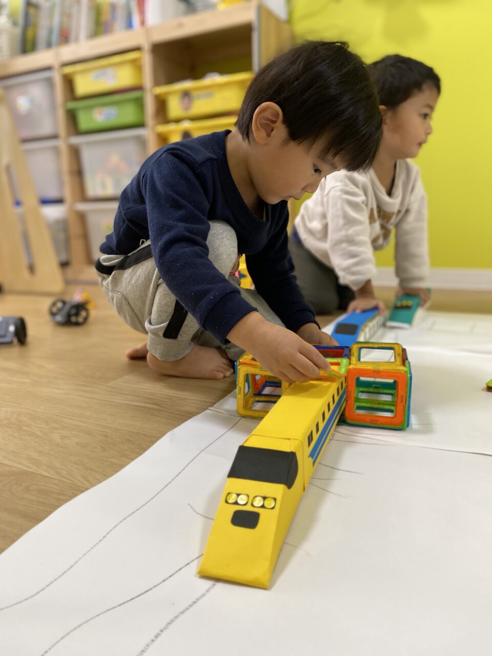 電車大好き♡!Hくんが紙に線路を描いてくれ、新幹線遊びがスタート★!