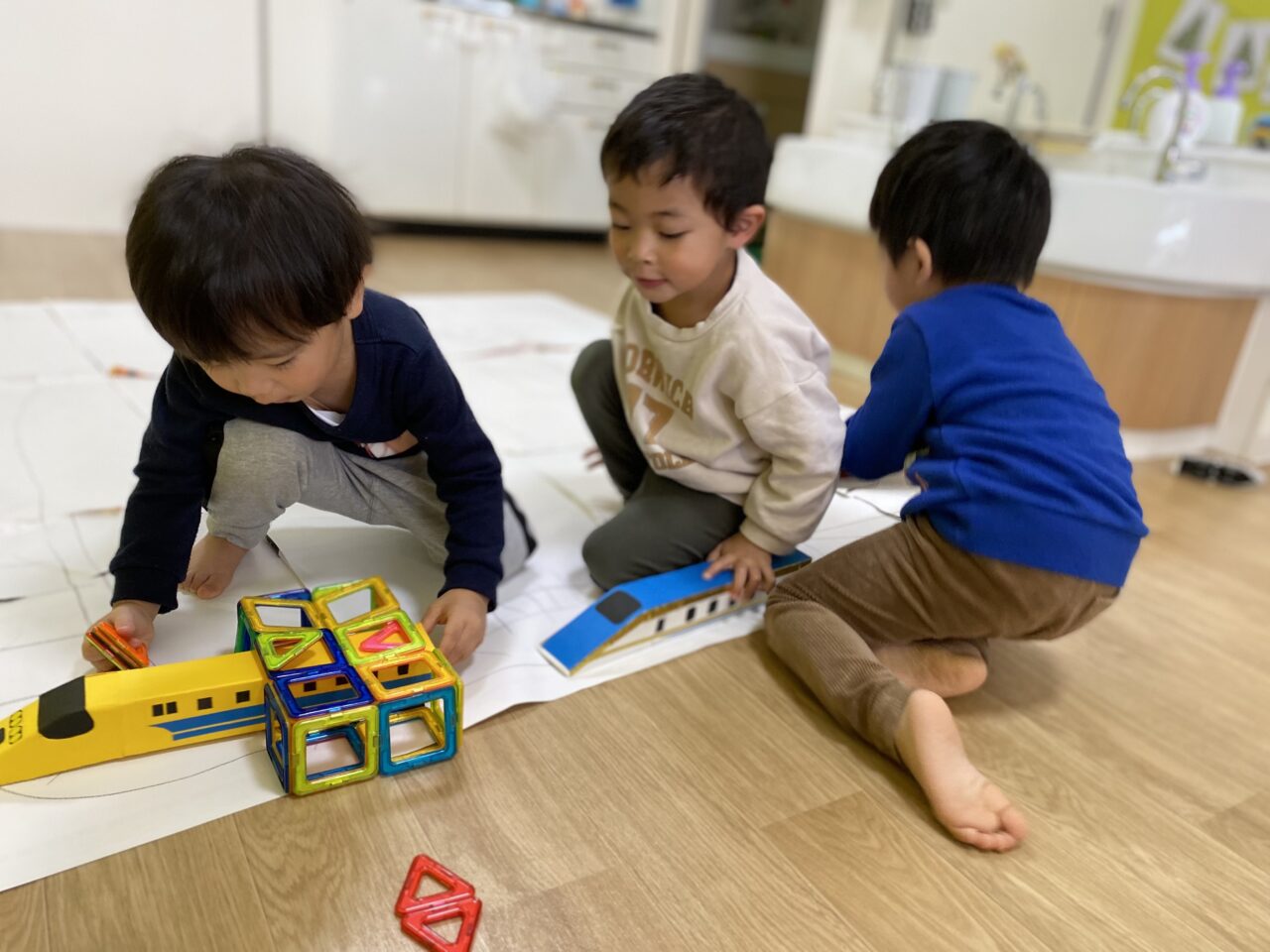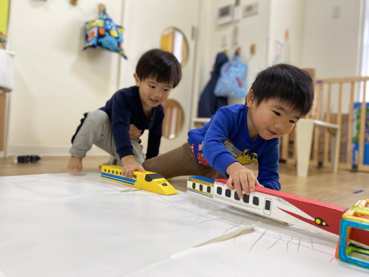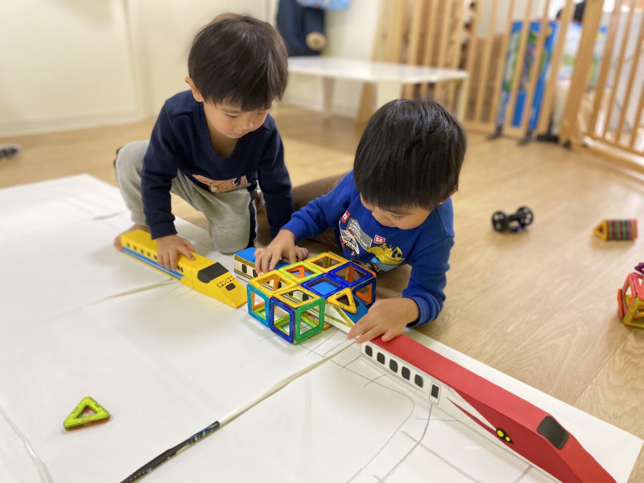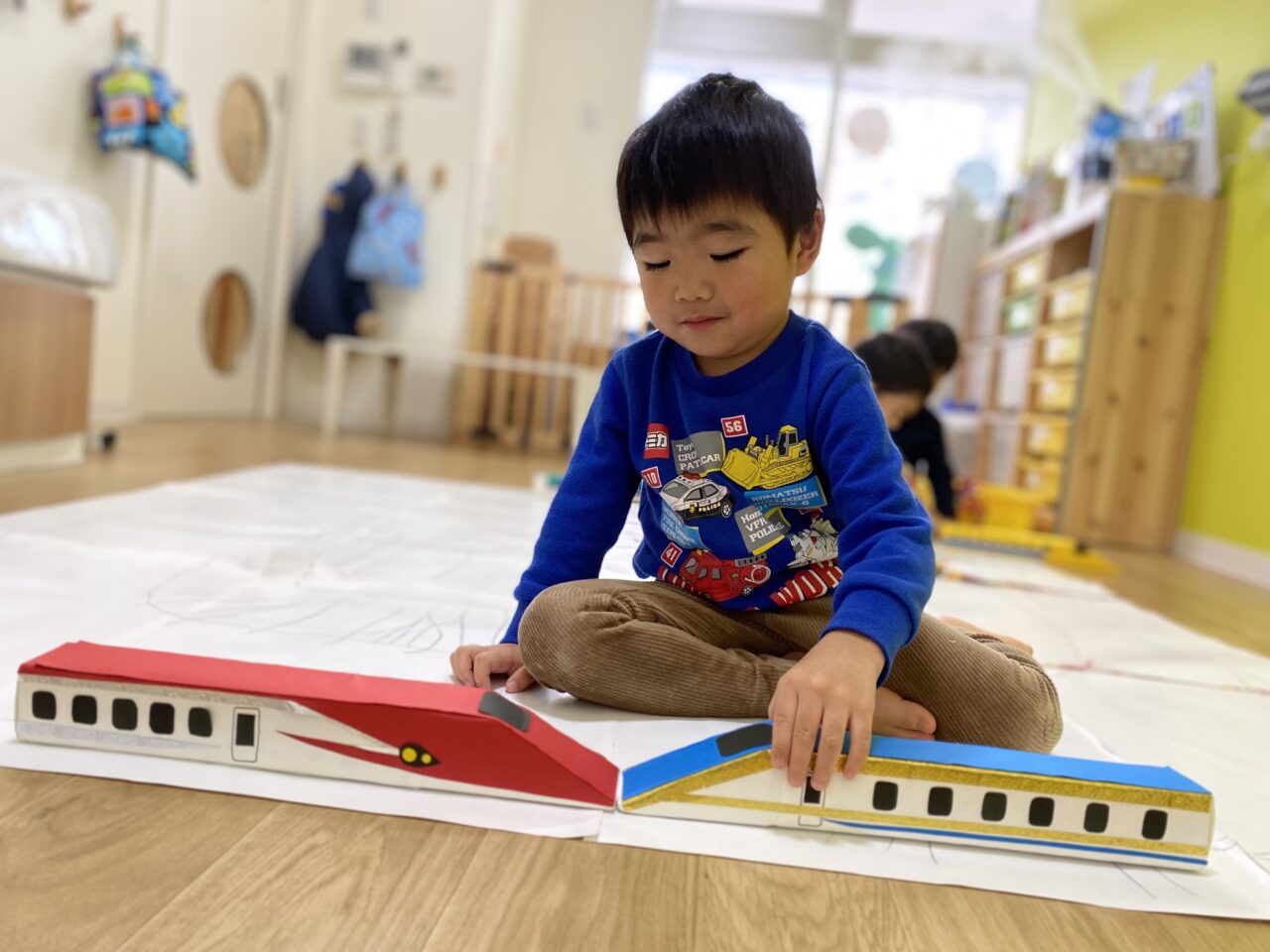 お片付け後「せんせい、楽しかったね♡」とお話していたつき組のお友だち?今日は1人で夢中になって遊んだり、お友だちと一緒に新幹線で遊ぶことを楽しんだつき組でした???