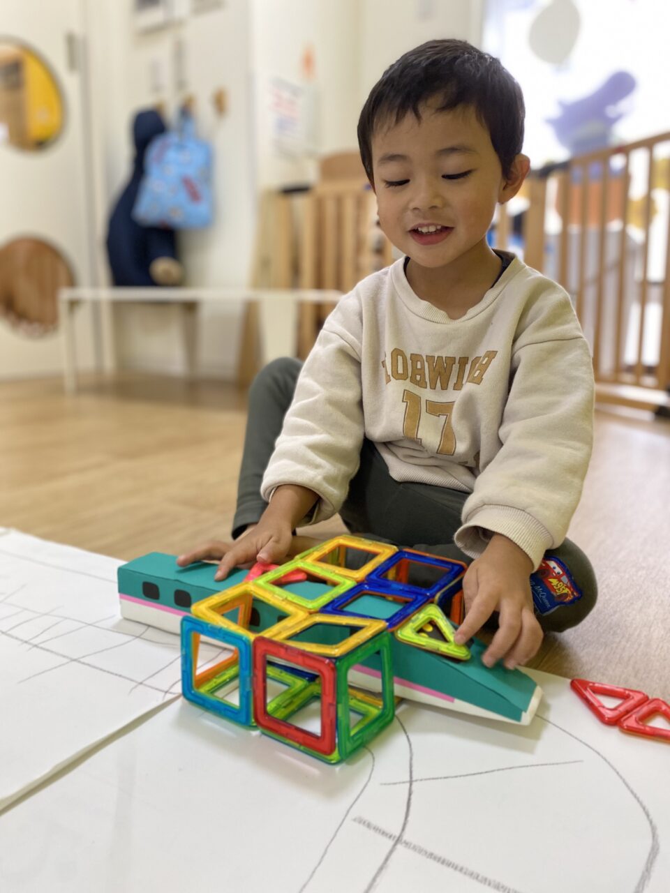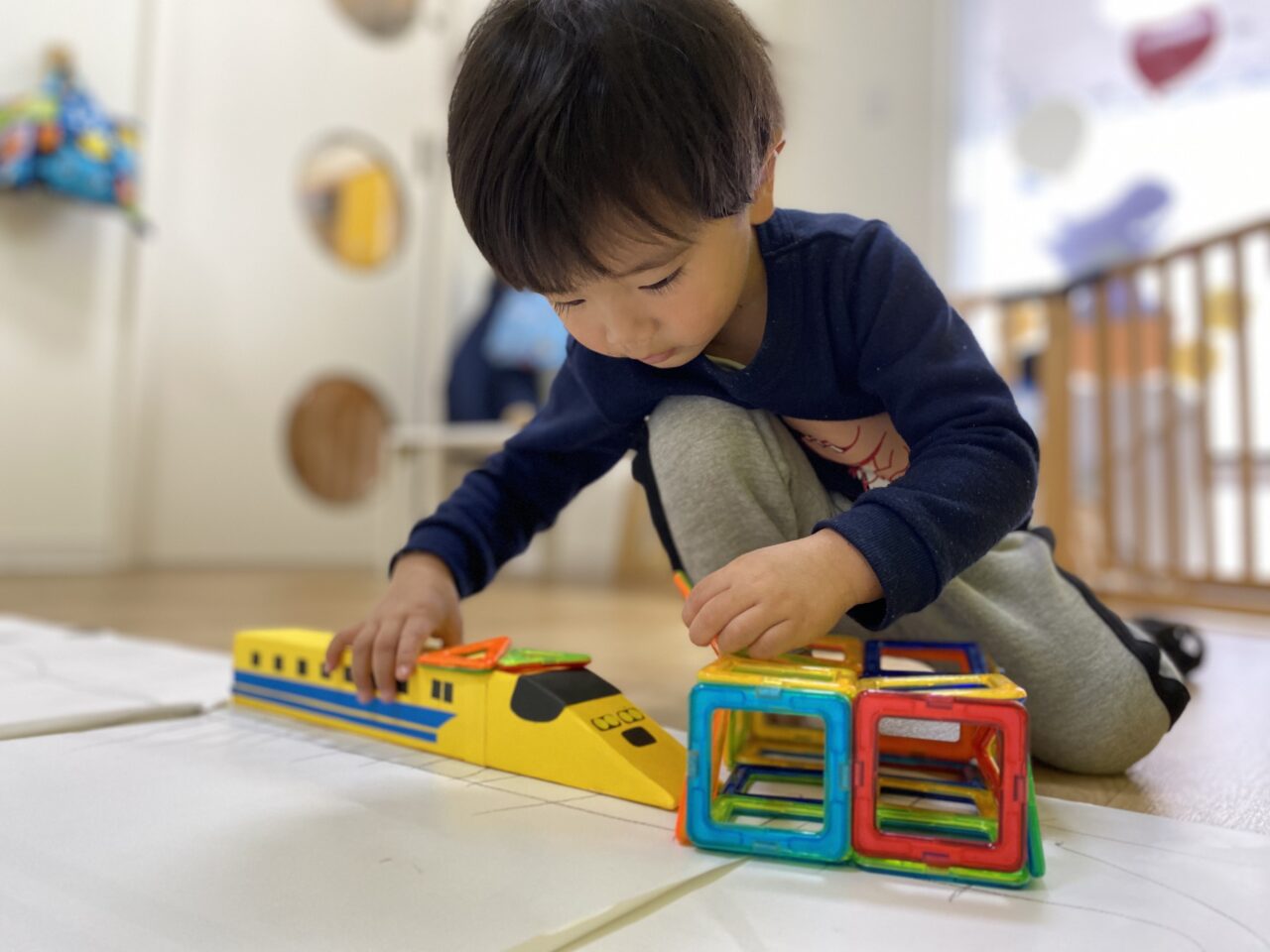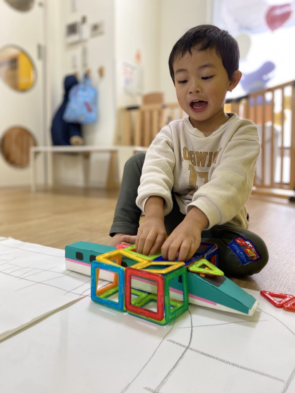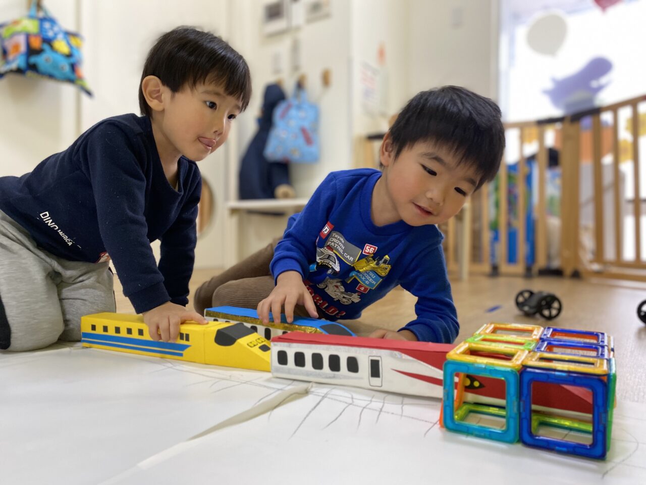 お片付け後「せんせい、楽しかったね♡」とお話していたつき組のお友だち?今日は1人で夢中になって遊んだり、お友だちと一緒に新幹線で遊ぶことを楽しんだつき組でした???
