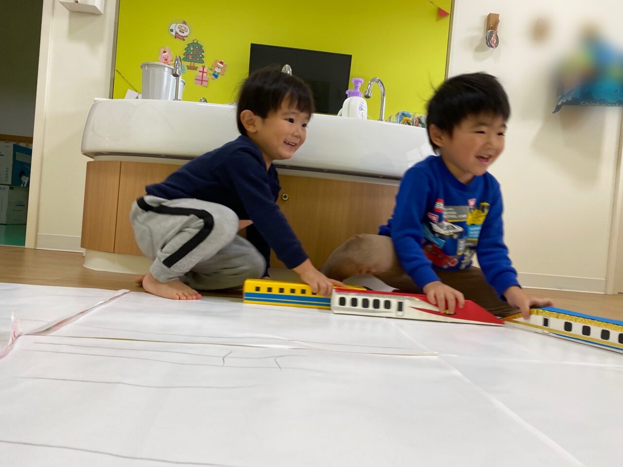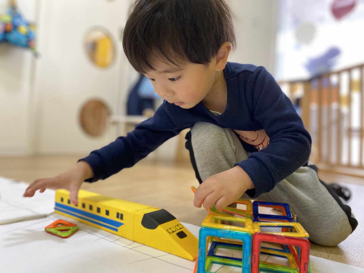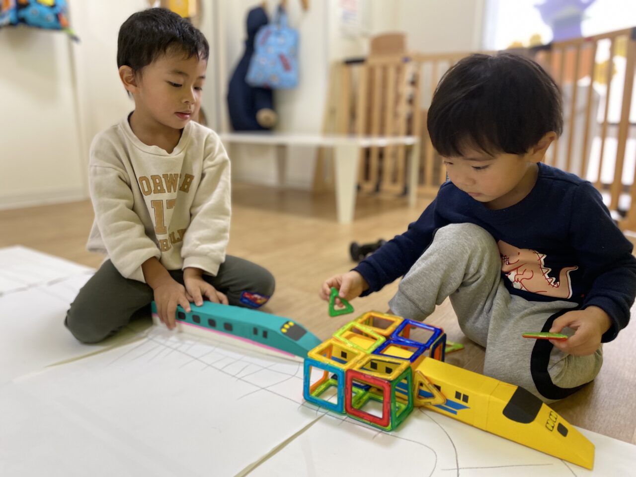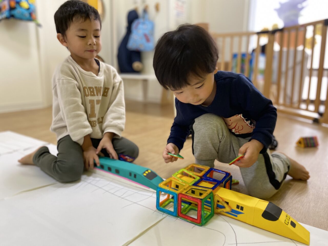 お片付け後「せんせい、楽しかったね♡」とお話していたつき組のお友だち?今日は1人で夢中になって遊んだり、お友だちと一緒に新幹線で遊ぶことを楽しんだつき組でした???