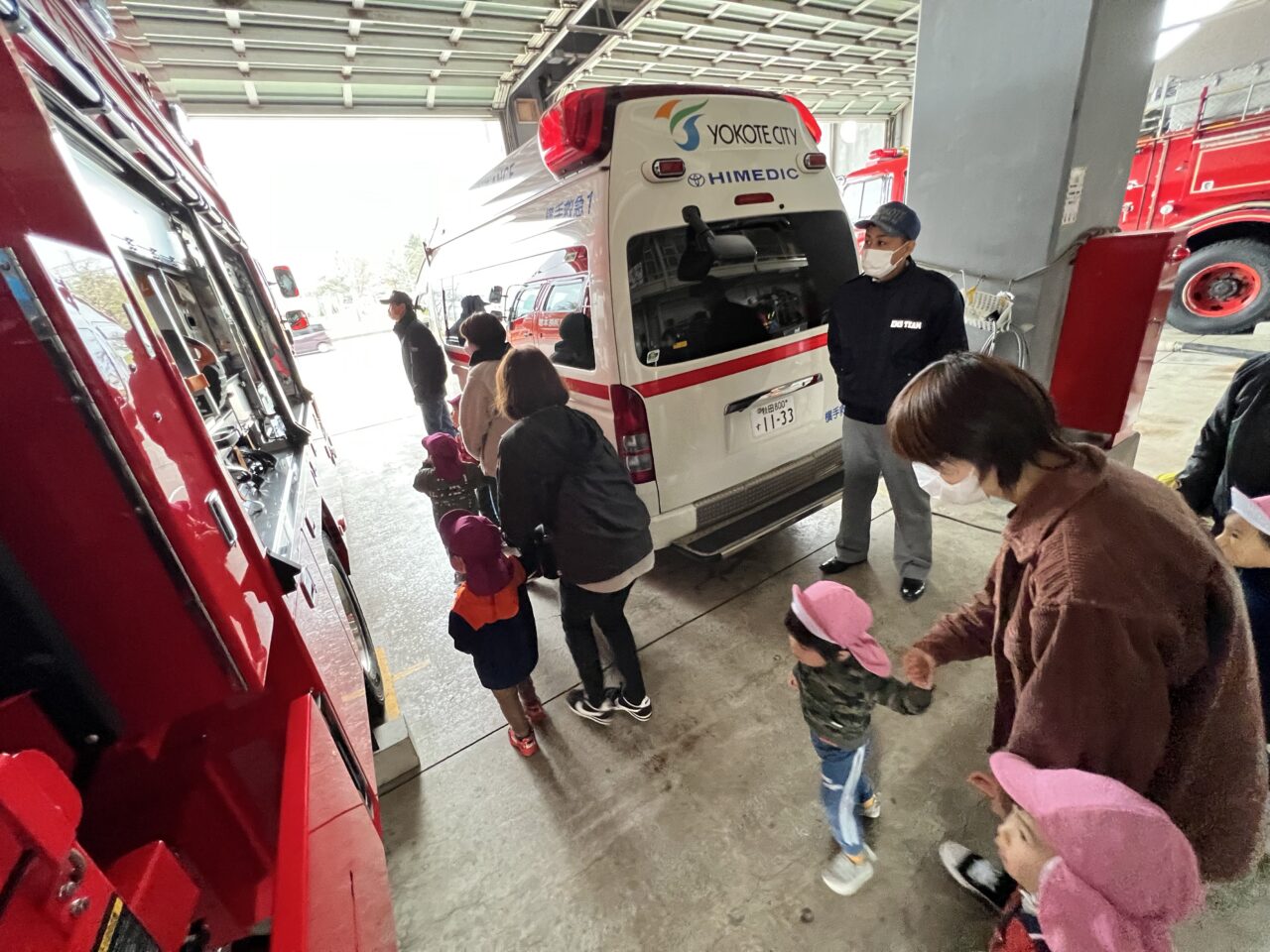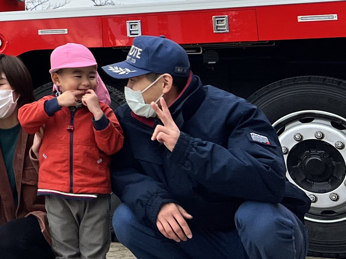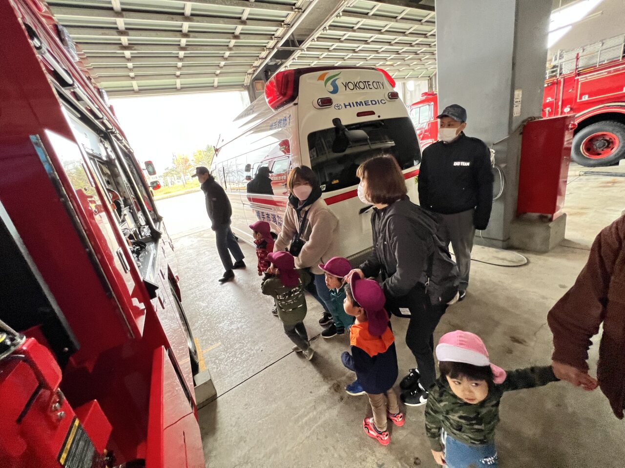 近くで消防車などの働く車を見られるなんて、子どもたちにとっては羨ましいと思います😆★
