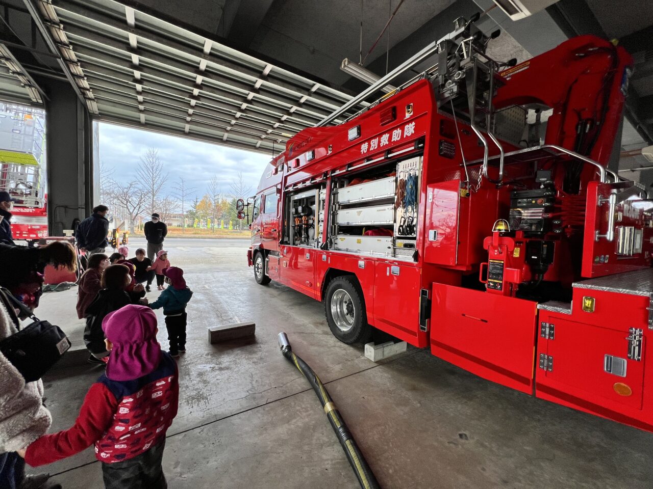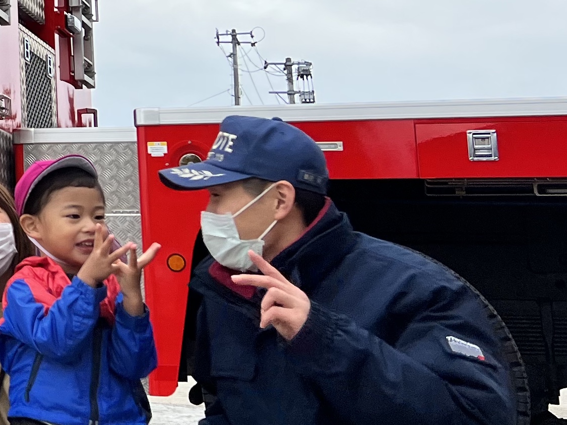 「はしご車だ★!」「しょうぼうぼうしゃ〜♡」など嬉しそうな子どもたち??