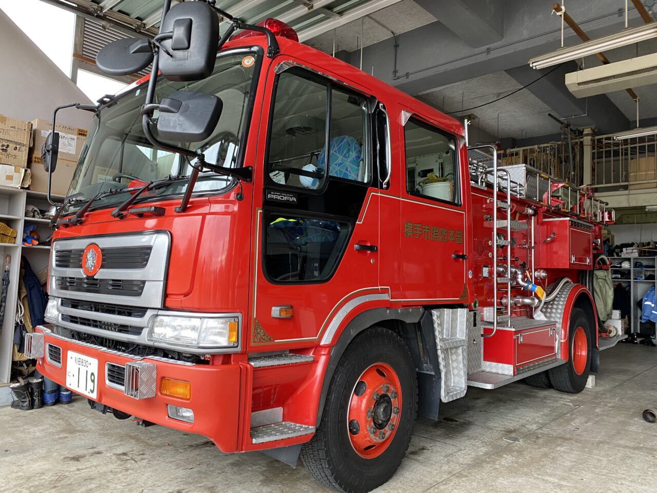 ポンプ車は3トンのお水が入っていて5分でなくなってしまうそうです?‼︎