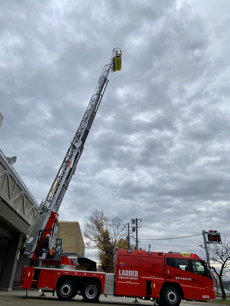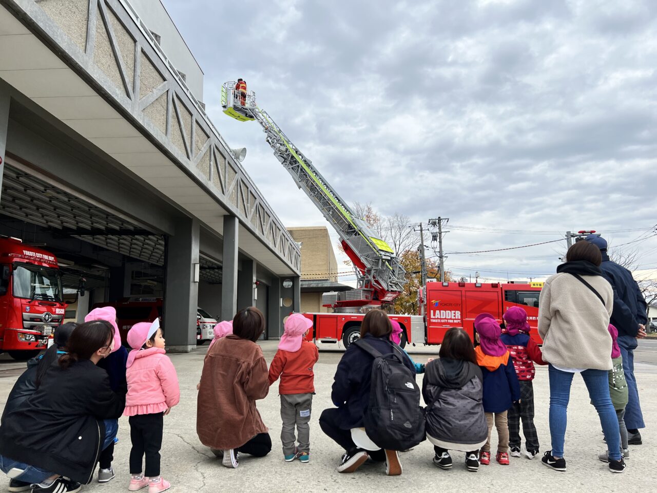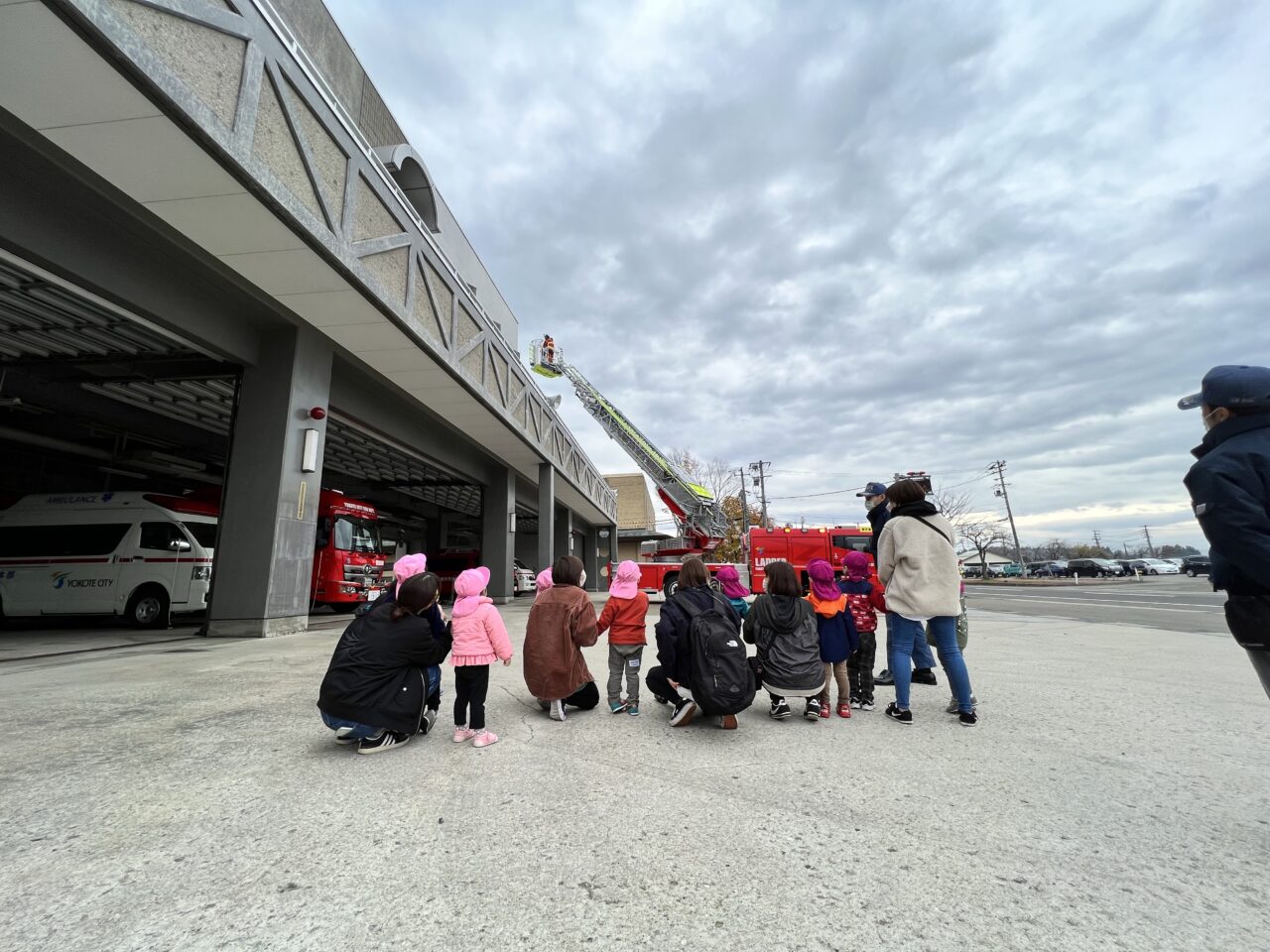 子どもたち、どんどん!どんどん‼︎高くなるはしご車に大興奮‼︎‼︎‼︎‼︎‼︎
