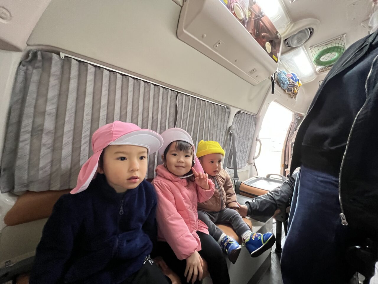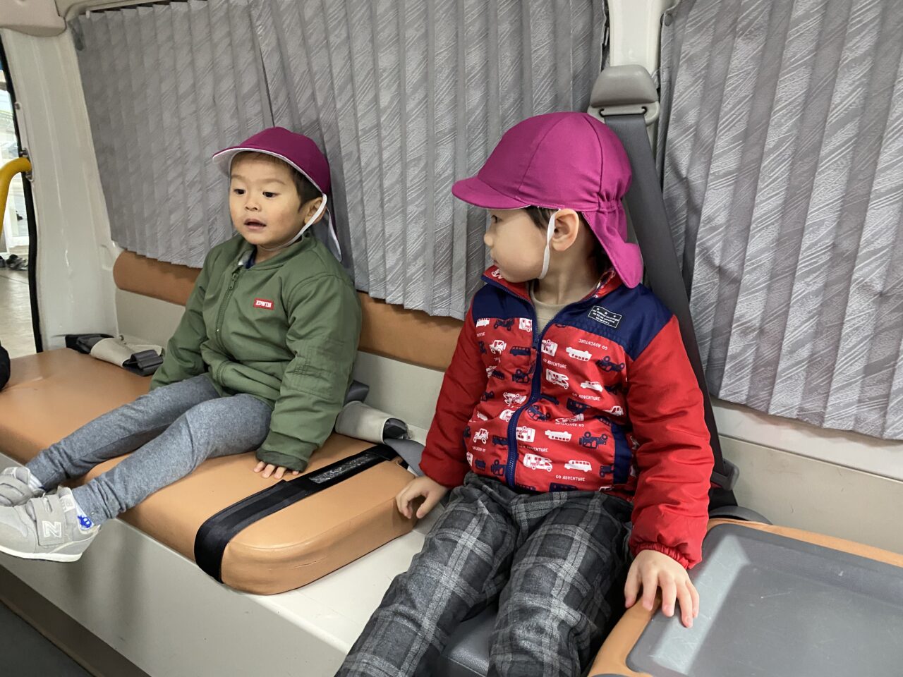乗っている間は窓の外を見て保育士にいろいろ教えてくれる子どもたちです?