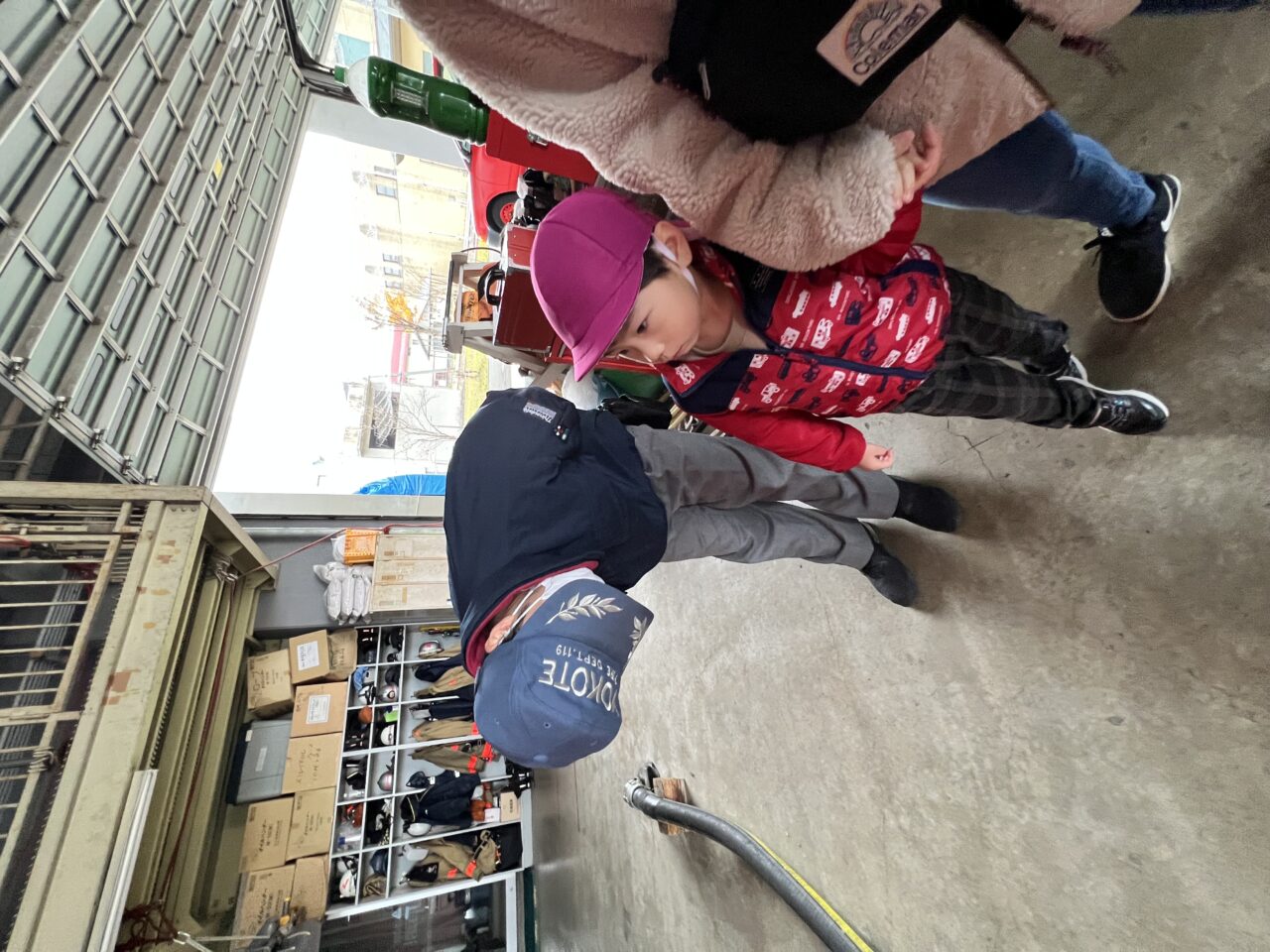 子どもたちをお出迎えしてくれたはしご車のはしごの部分を動かしてくれるとのことで見せてもらいました?✨