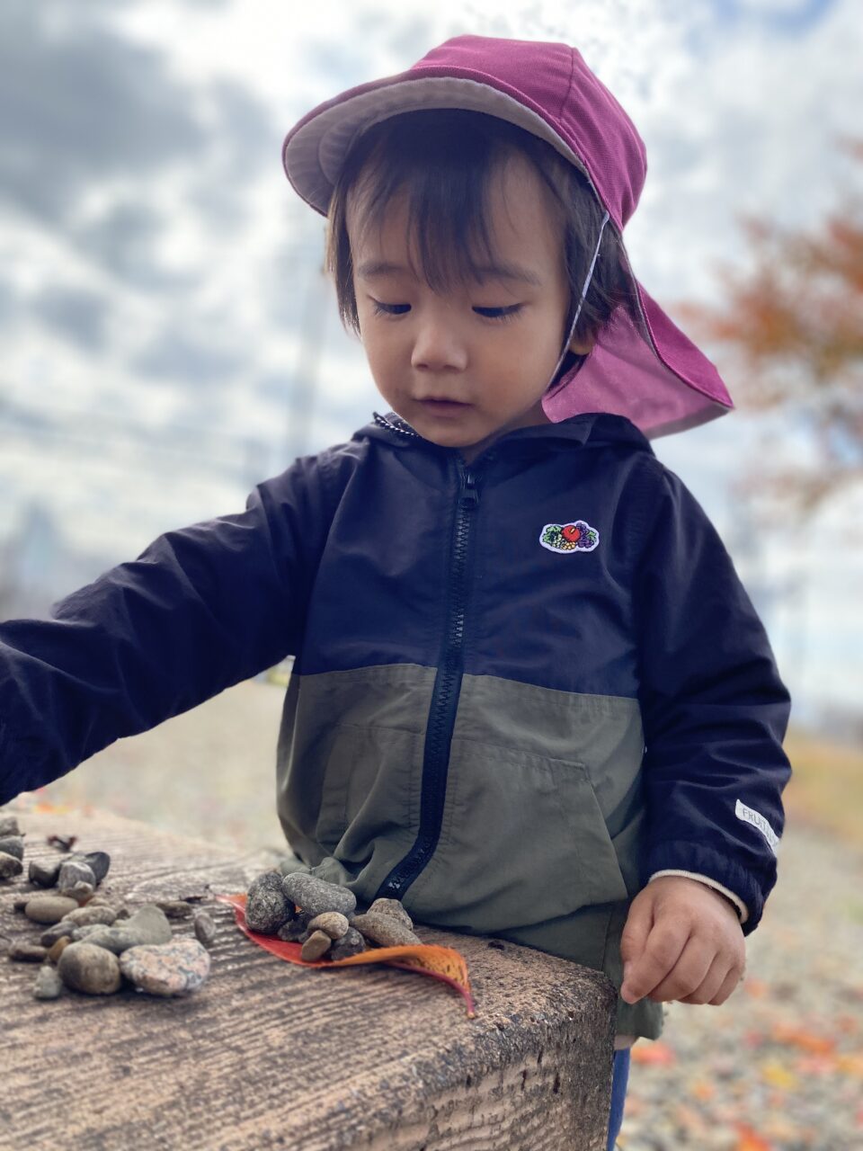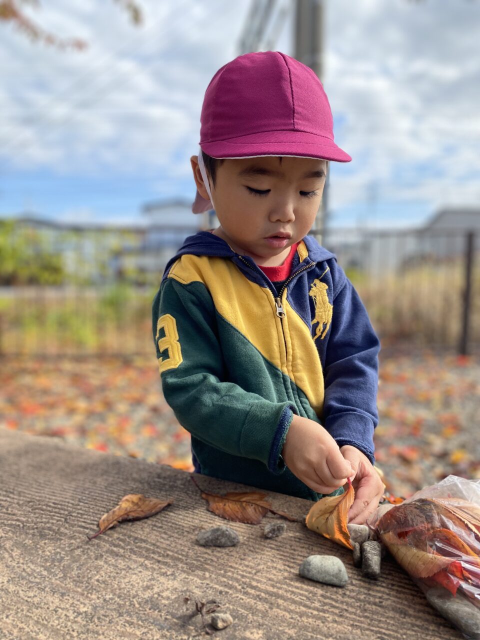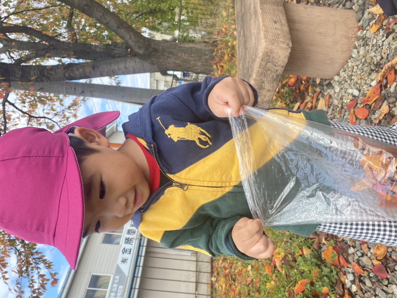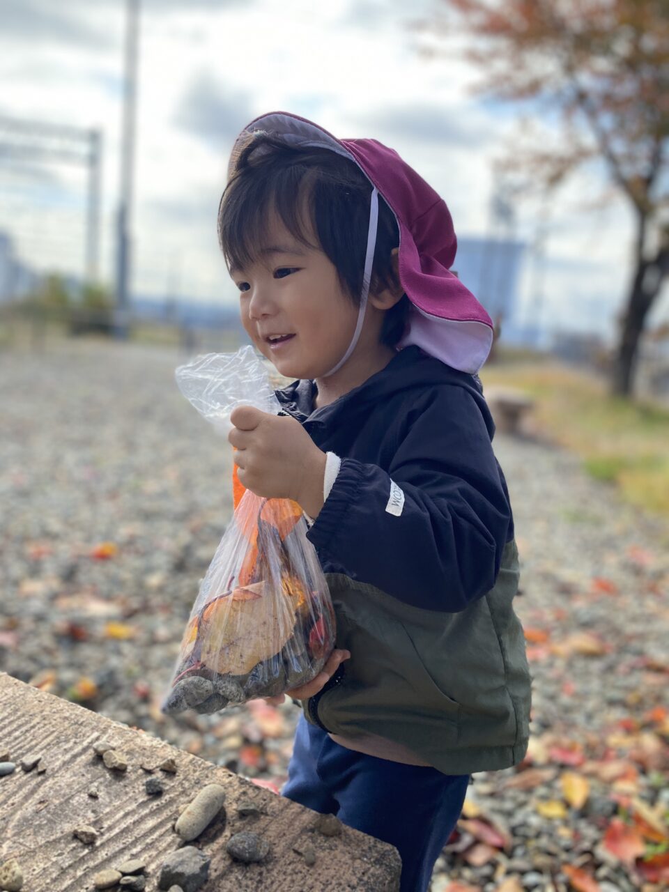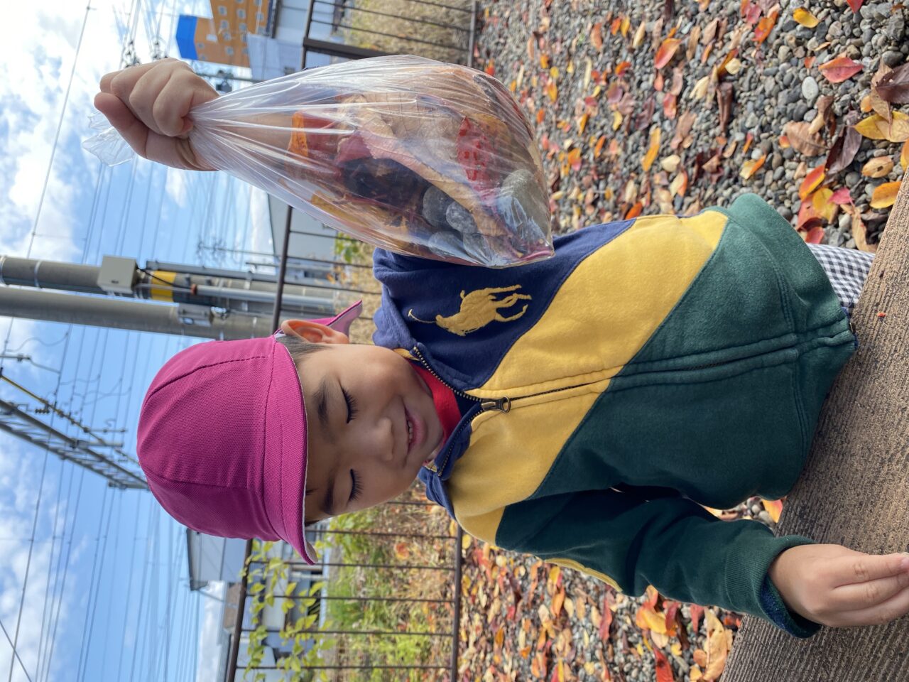 Iくんは落ち葉と石を厳選しながら袋に入れてます??