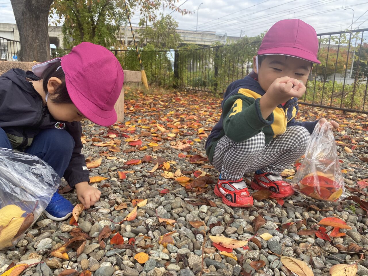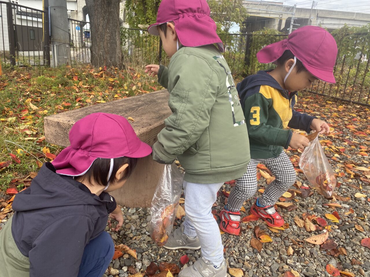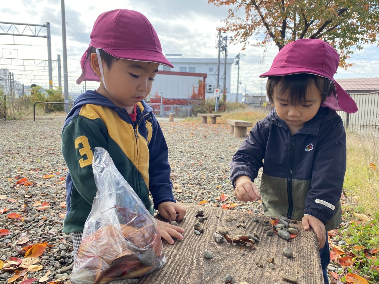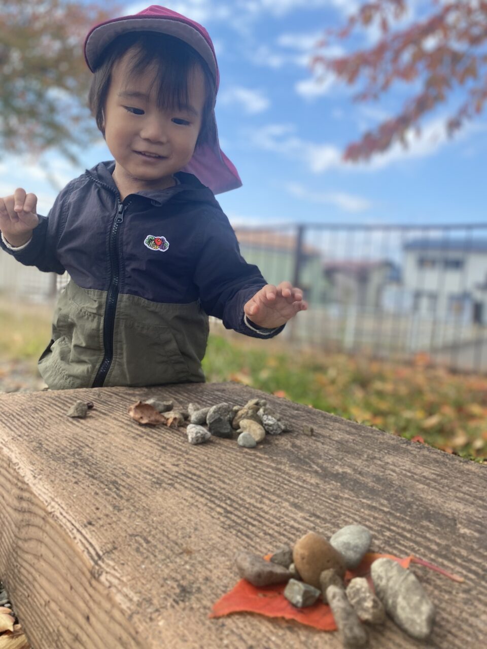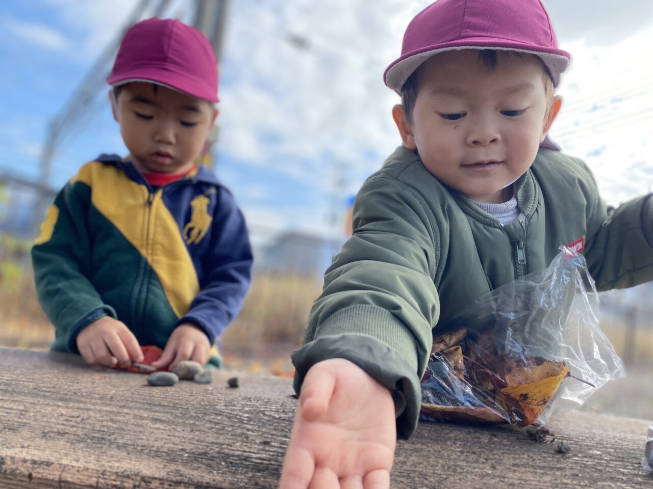 Iくんは落ち葉と石を厳選しながら袋に入れてます??
