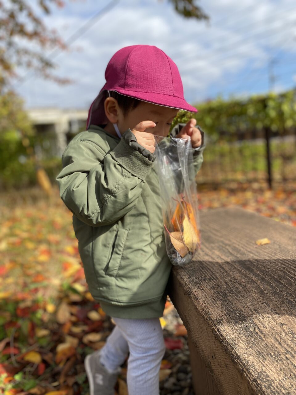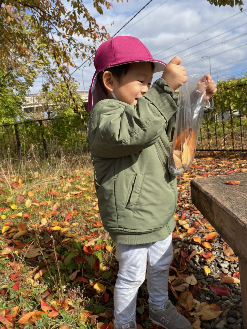 小さくてかわいい落ち葉を見つけたのでIくんに渡すと