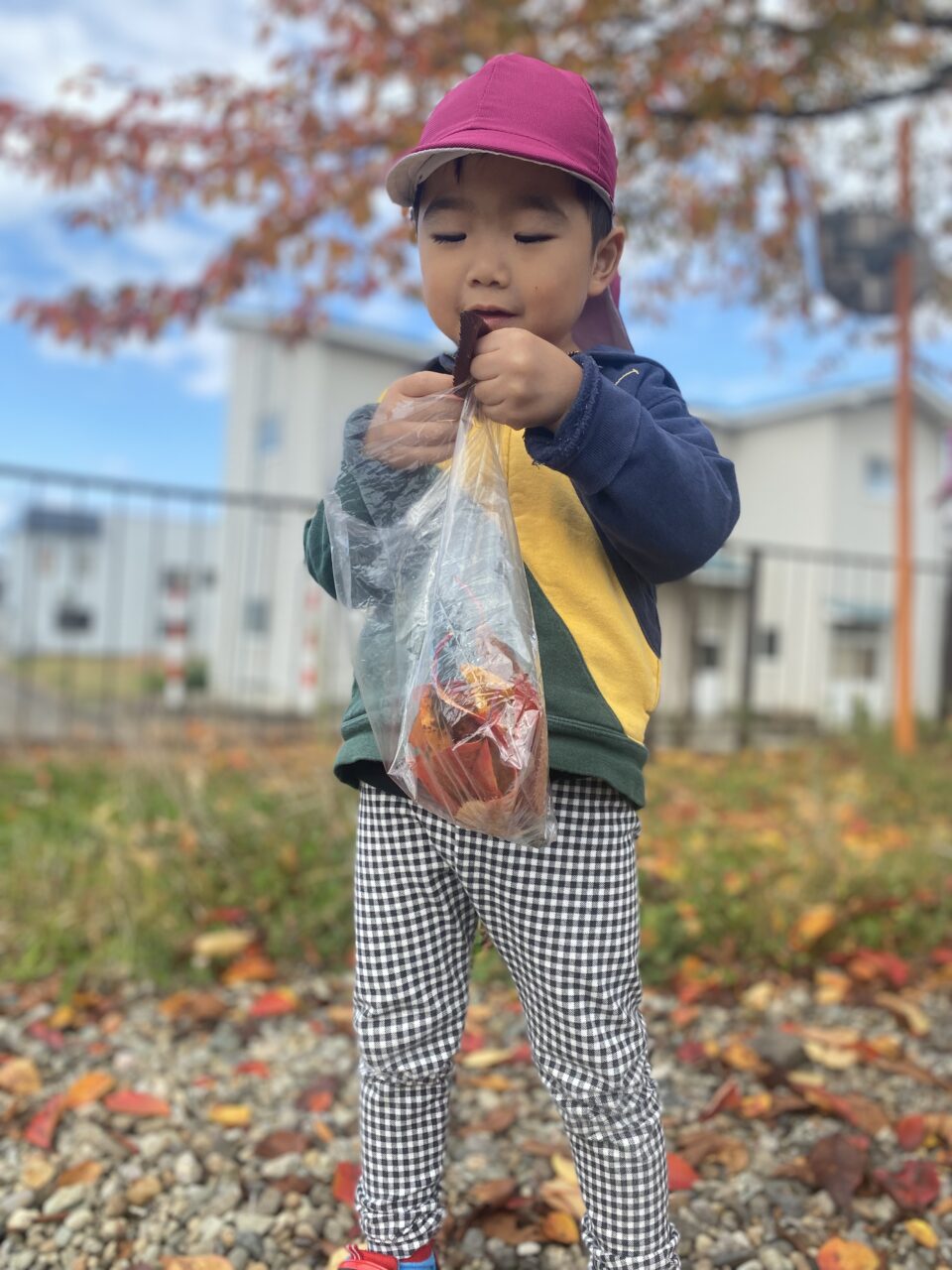 沢山の落ち葉を持ち帰ってきて、楽しそうにお家でも肉巻きをご馳走してくれました🍂💕