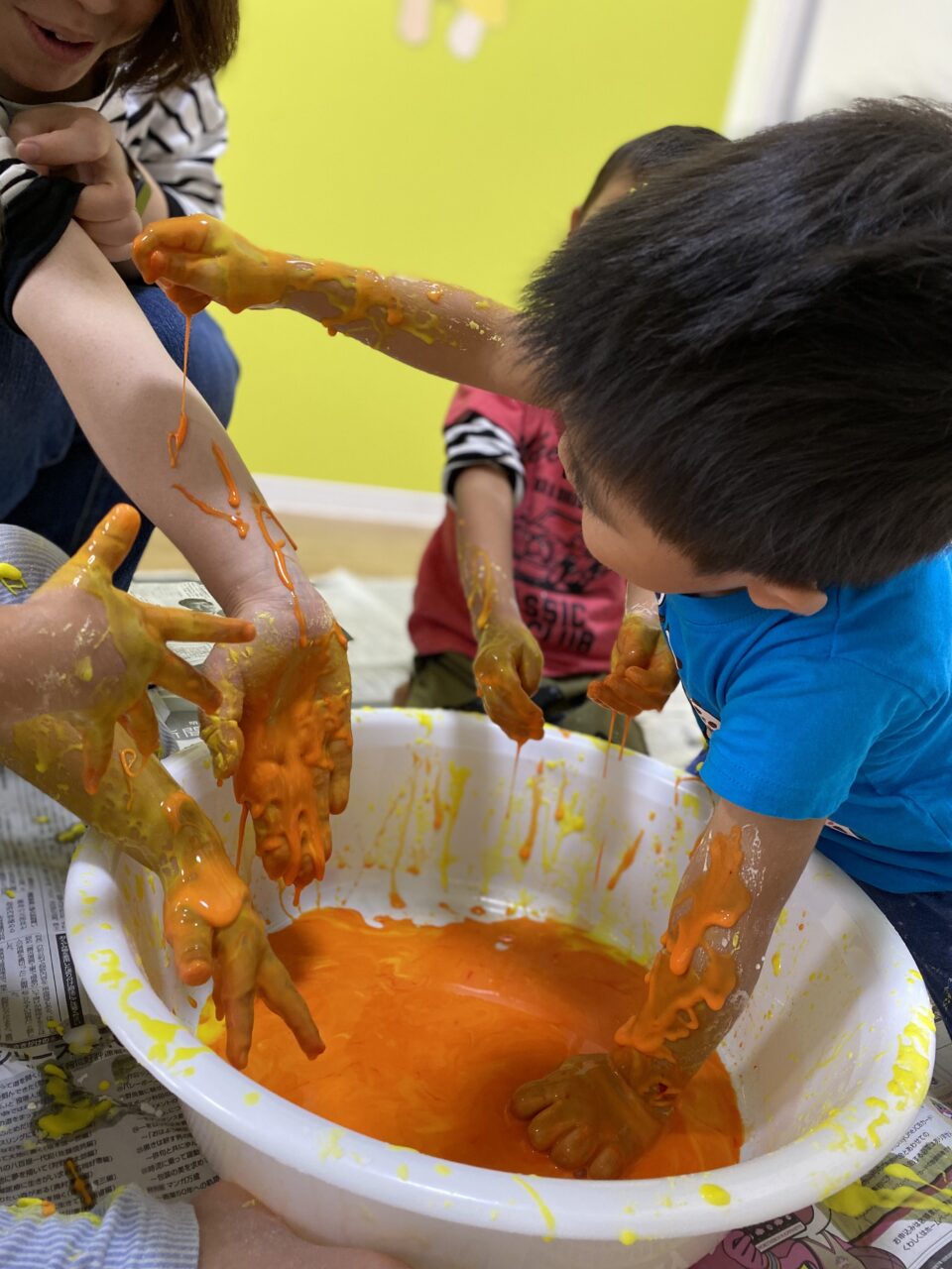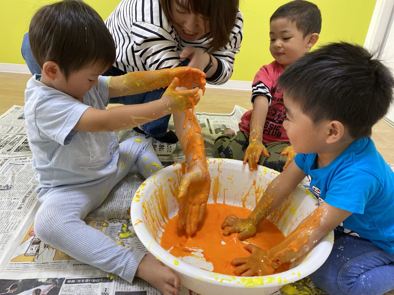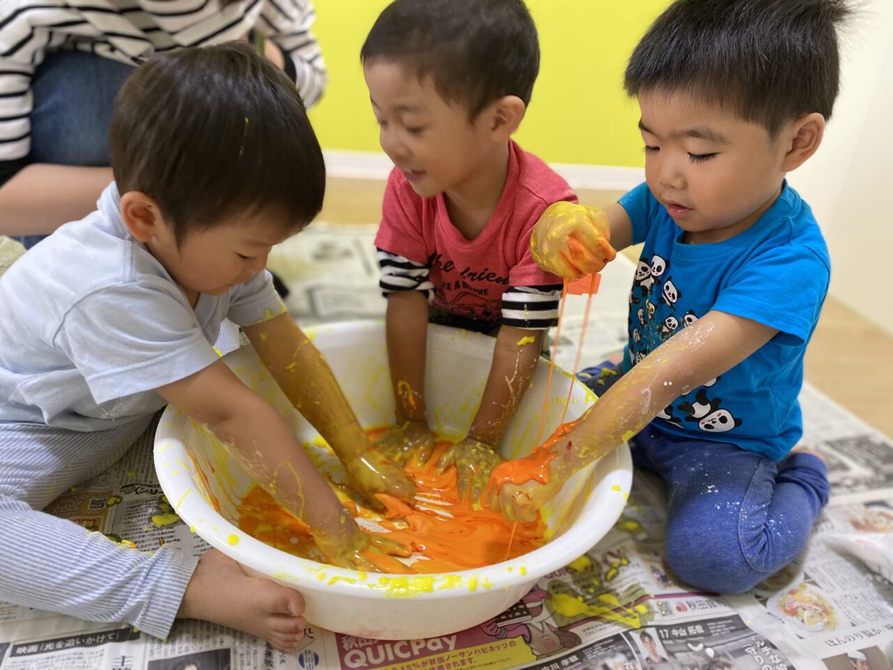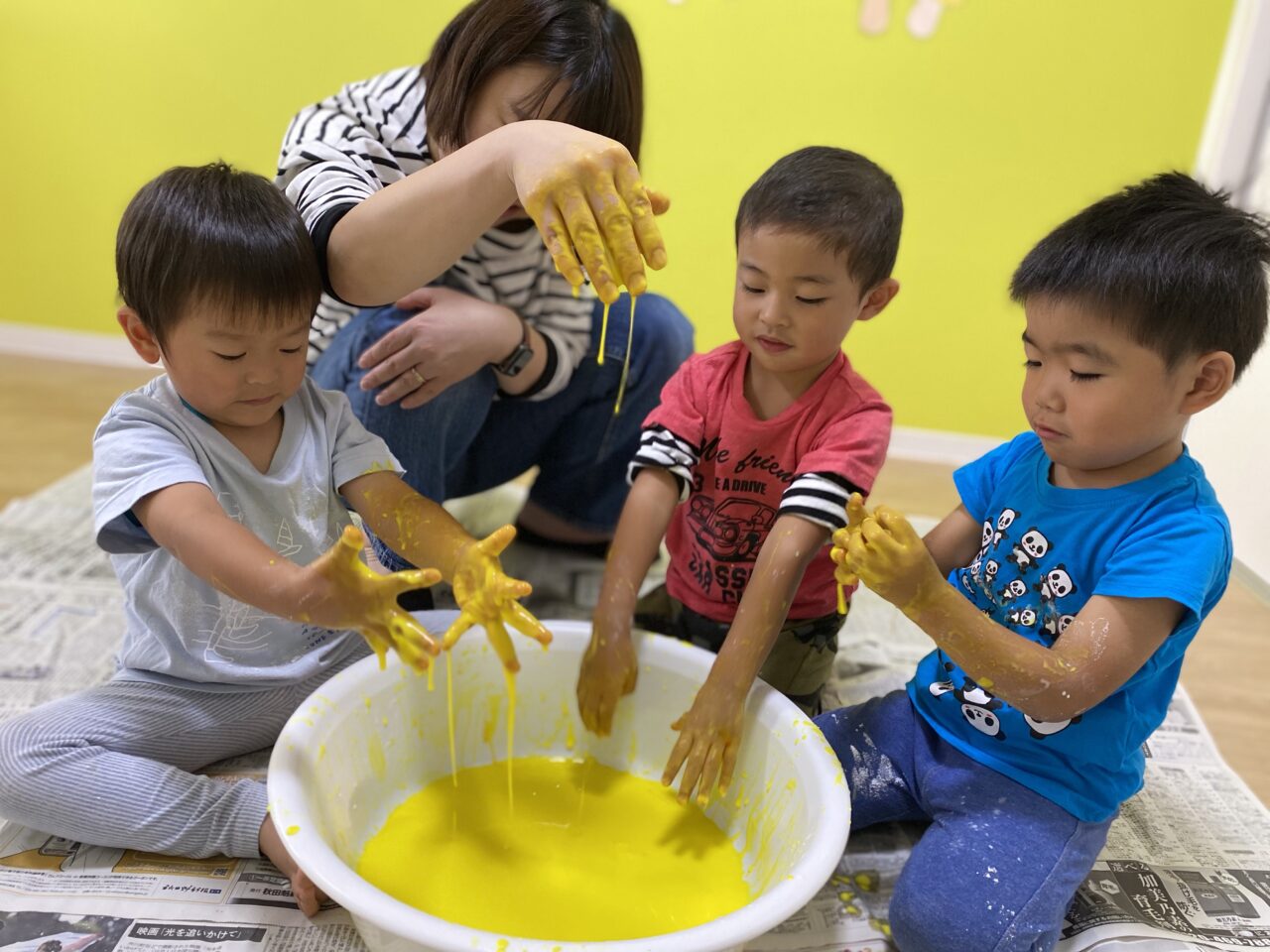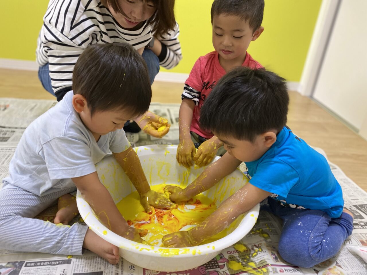 黄色を投入してみんなで色を混ぜますよー♪