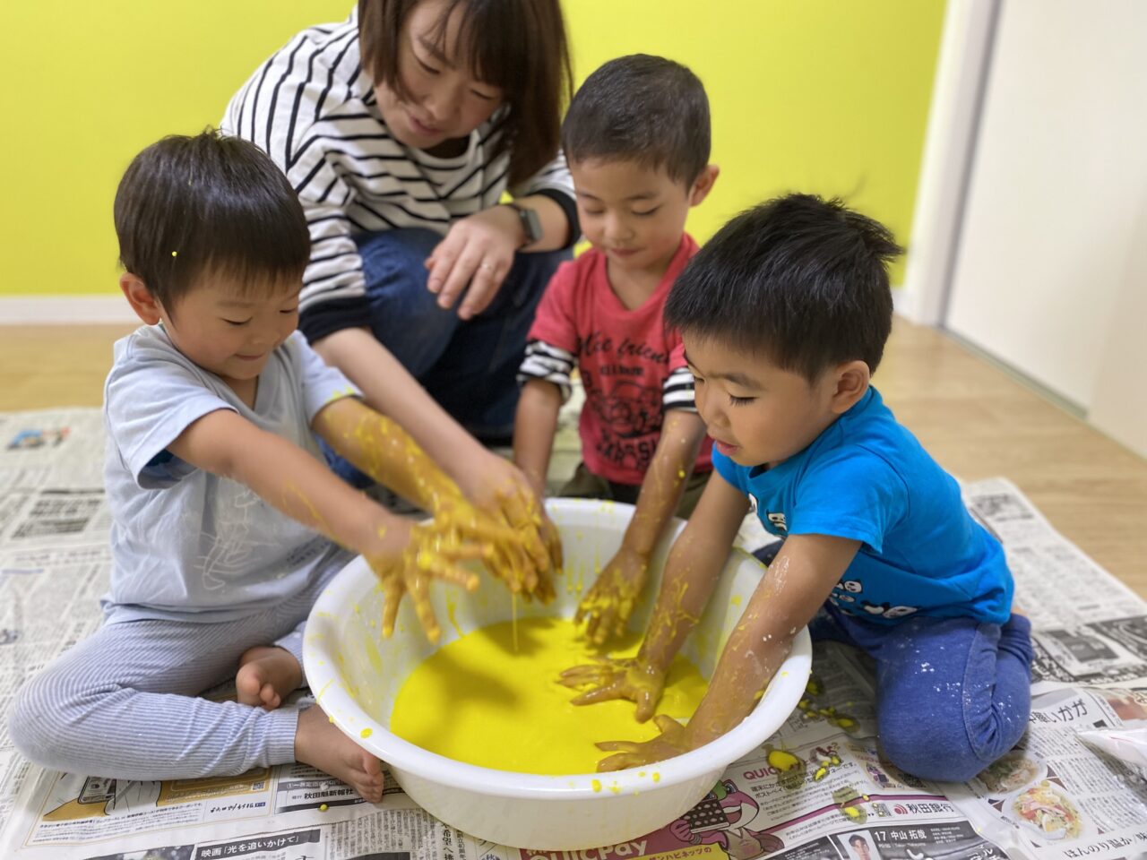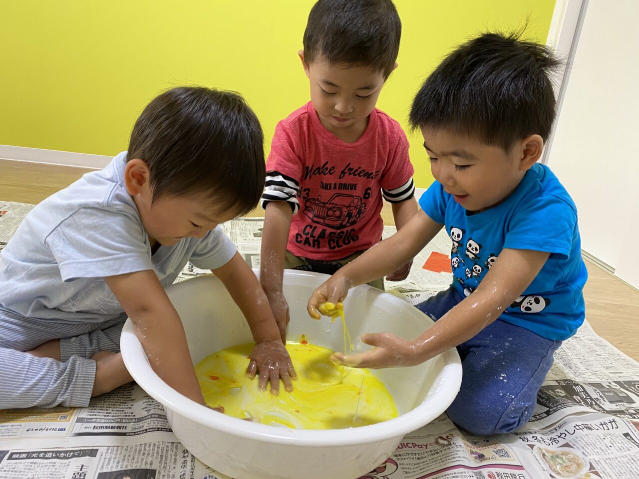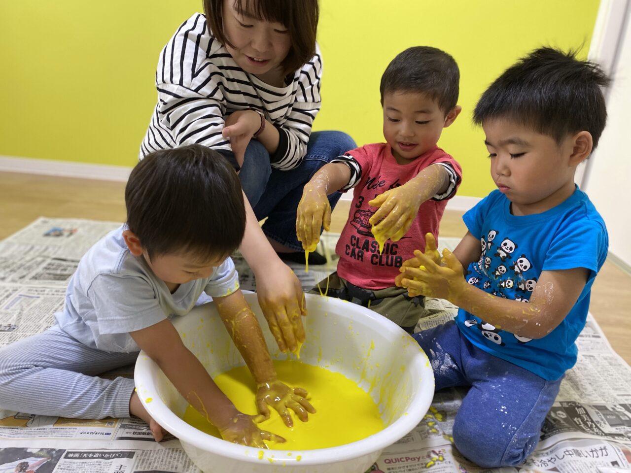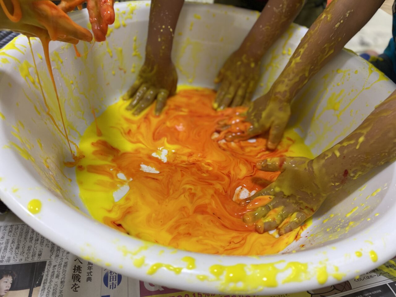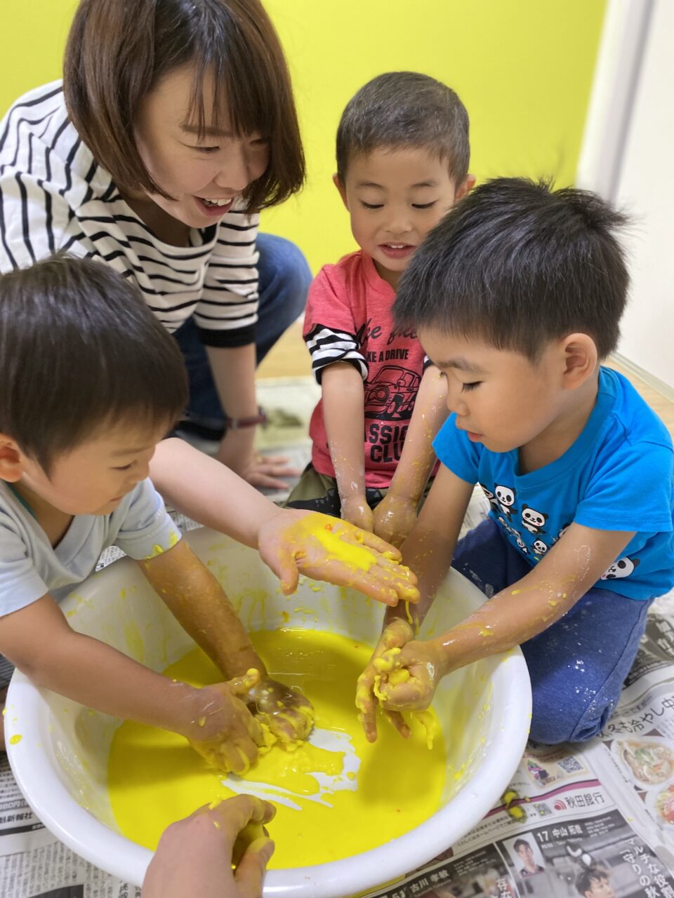 黄色を投入してみんなで色を混ぜますよー♪