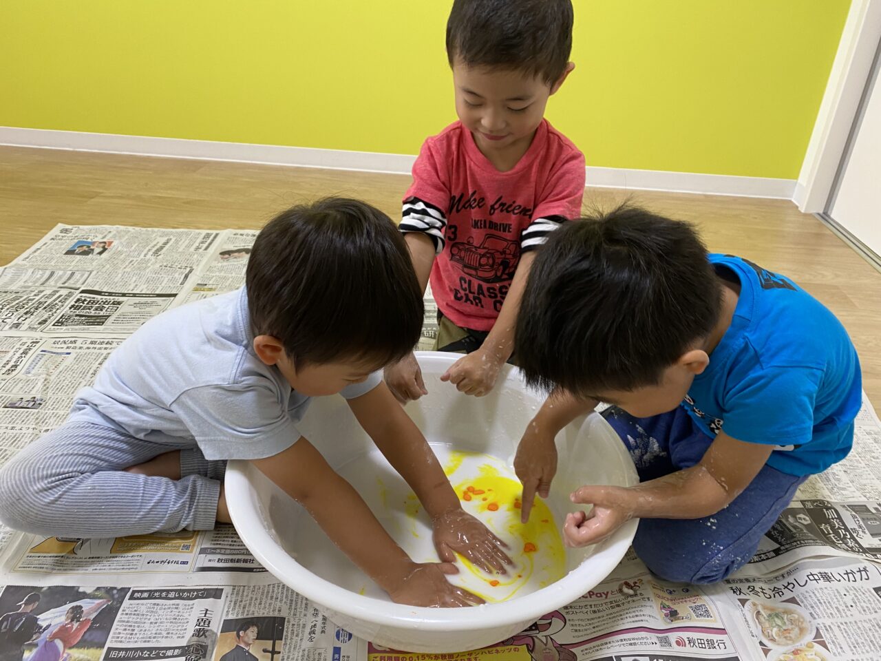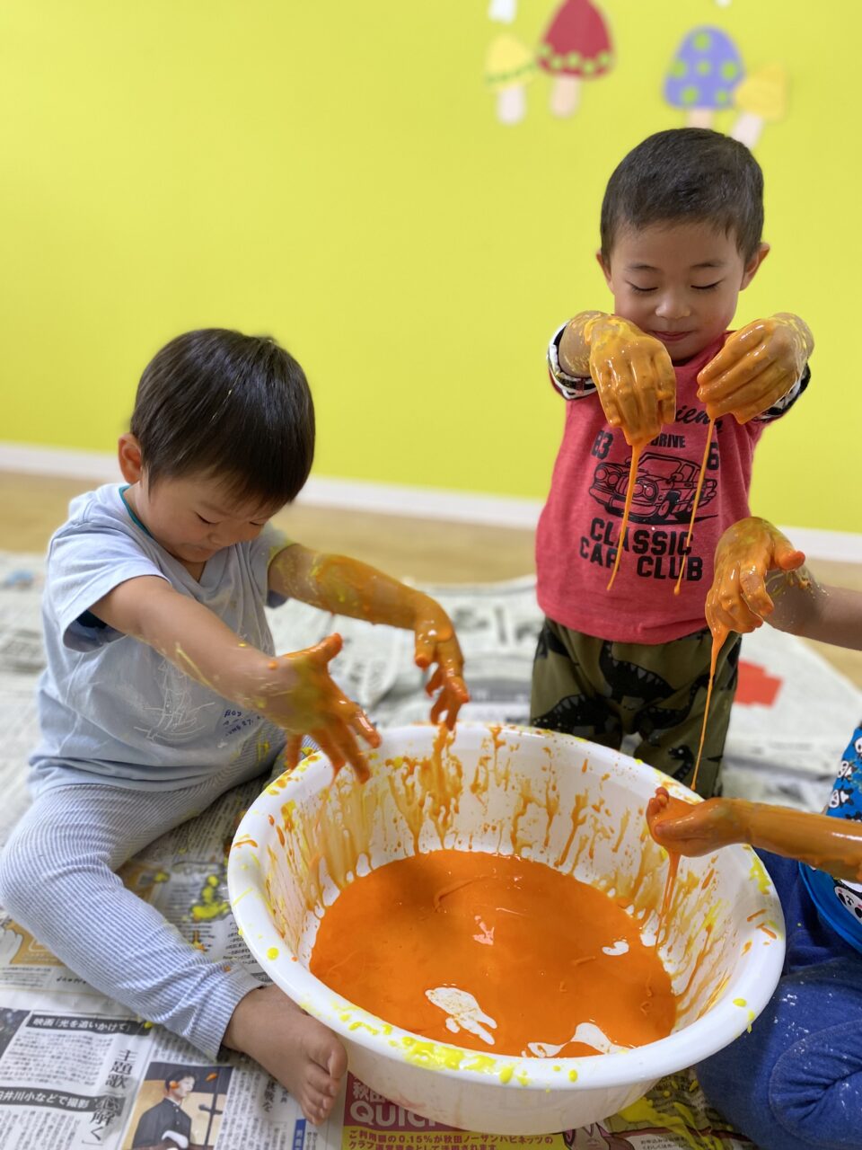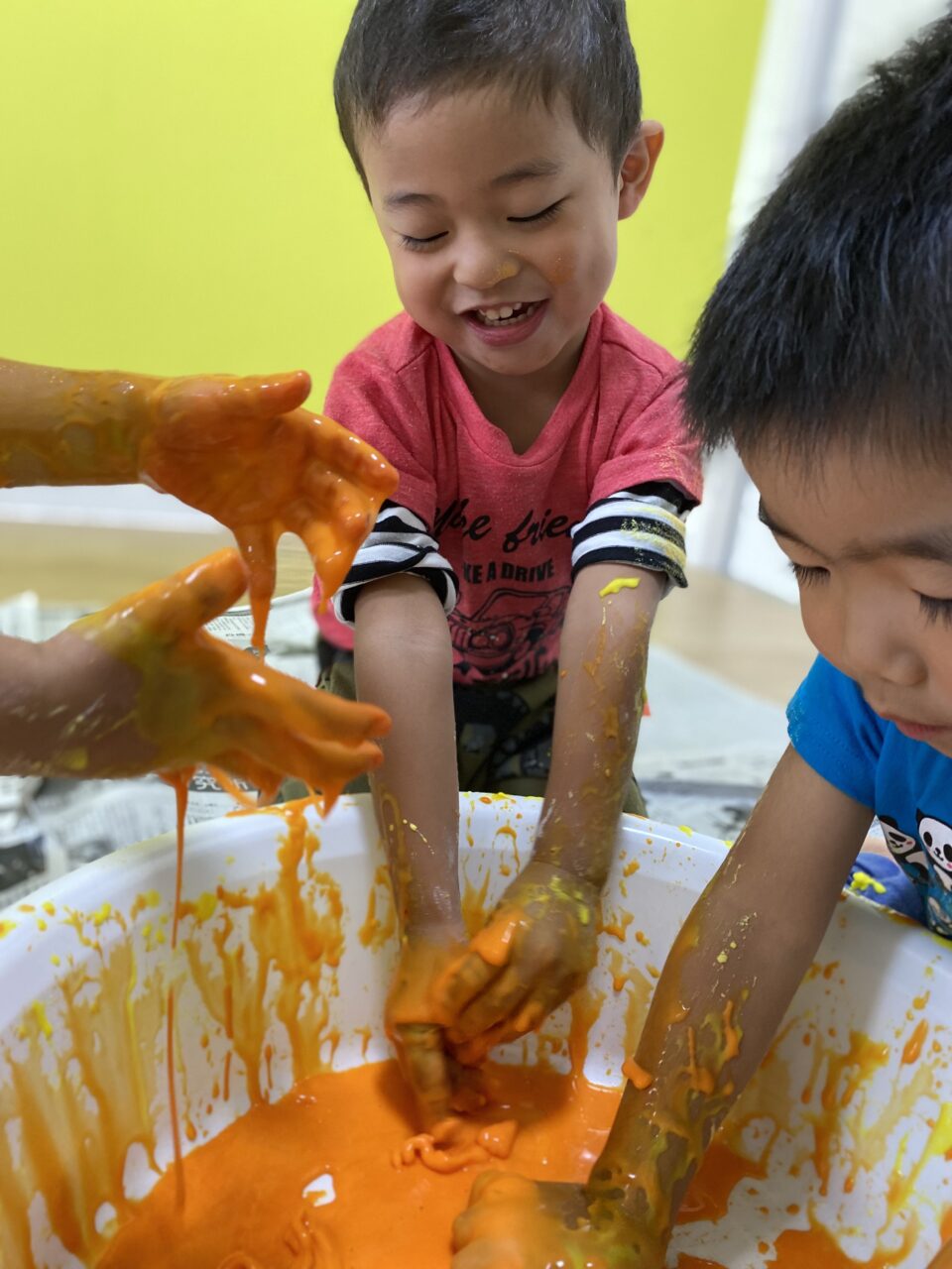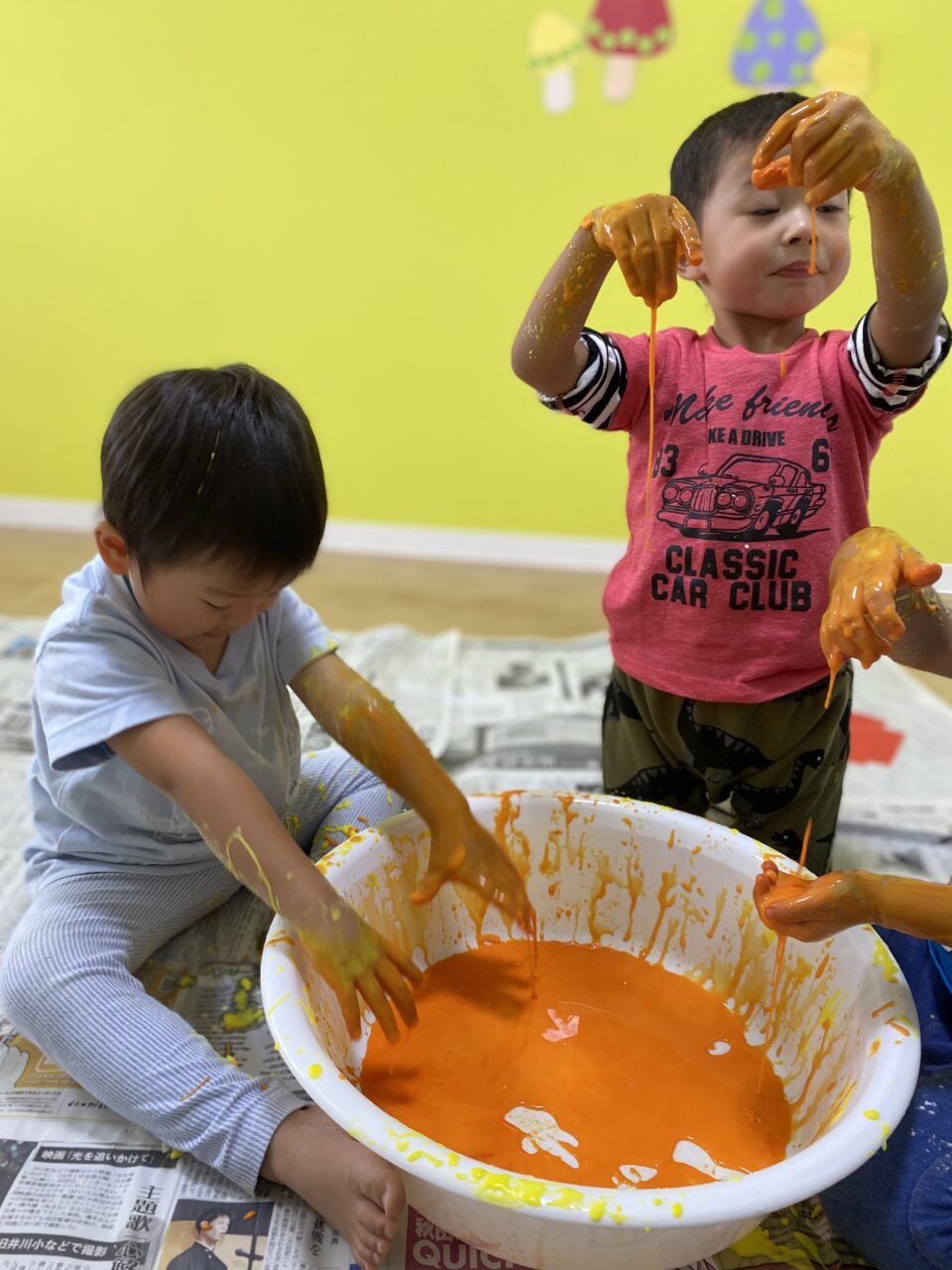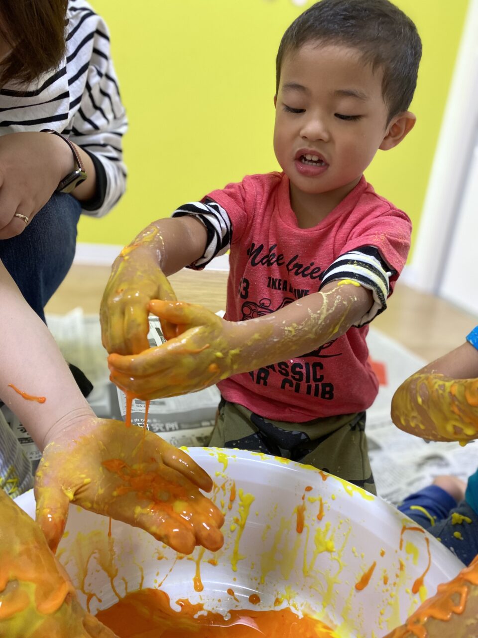 黄色を投入してみんなで色を混ぜますよー♪