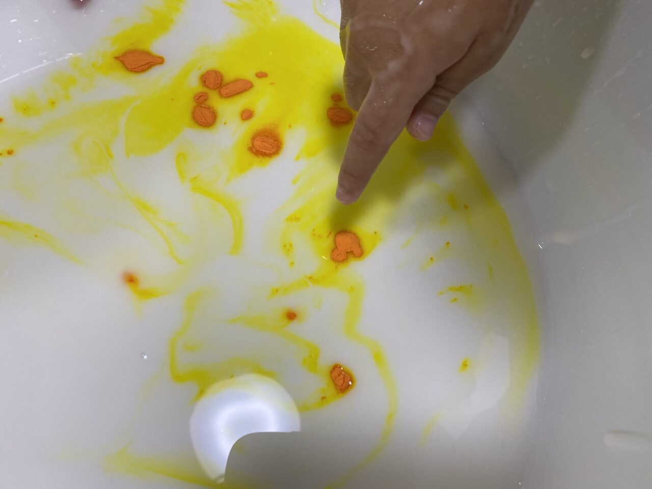 あら不思議!赤色の食紅を入れたはずなのに「オレンジ」に大変身?⭐︎