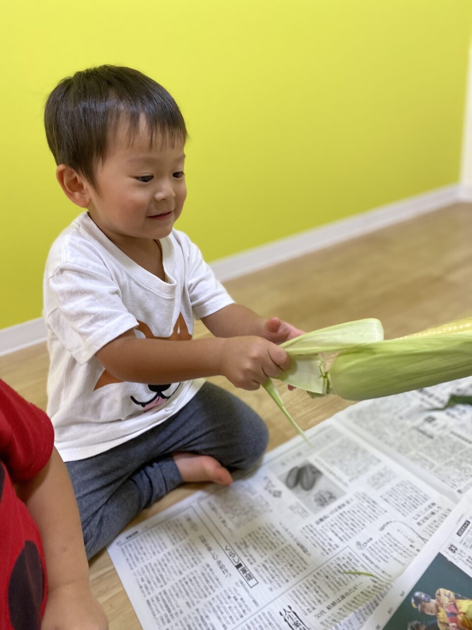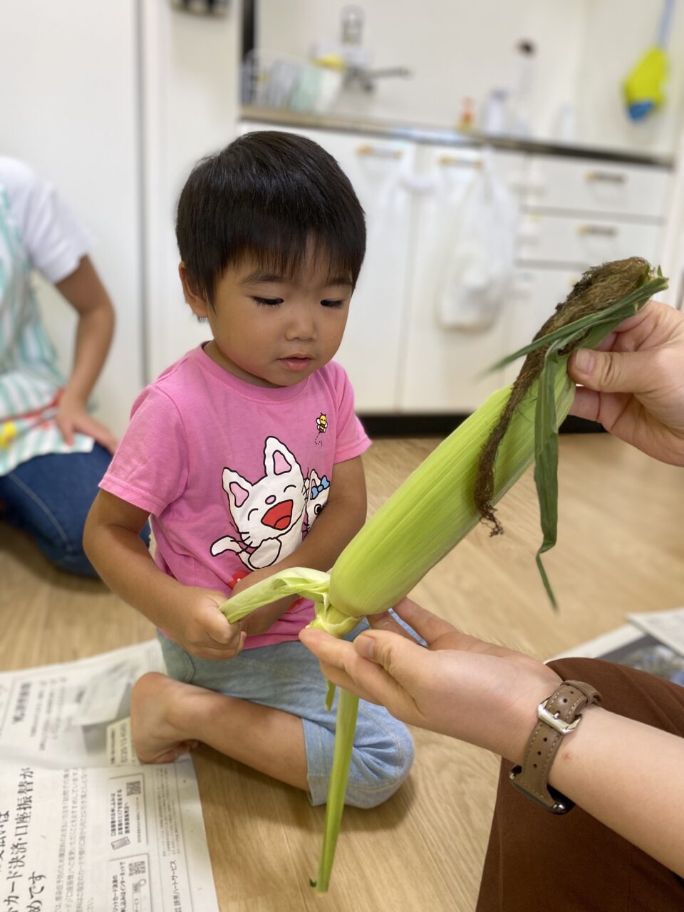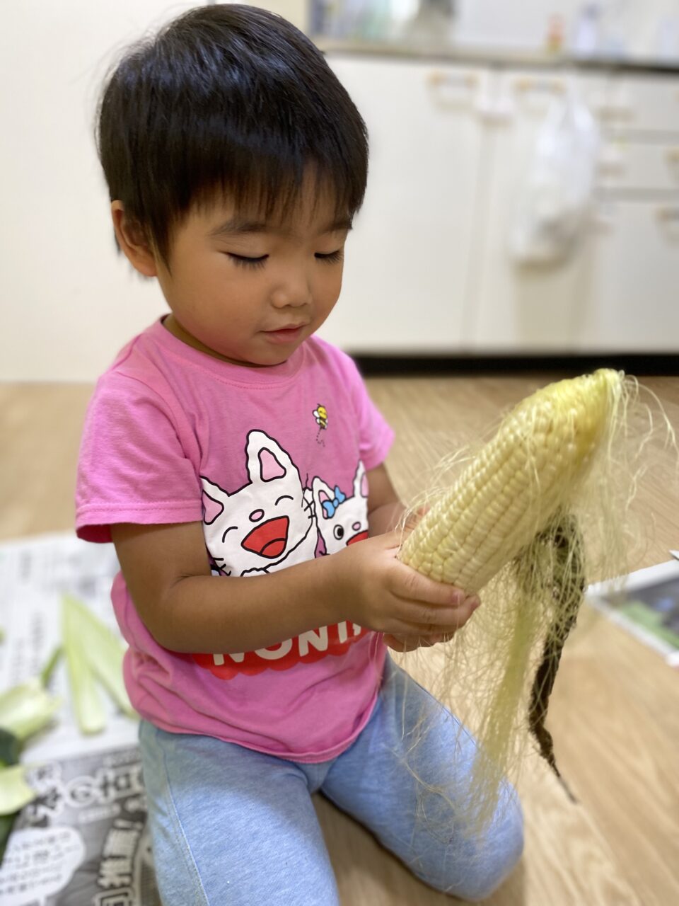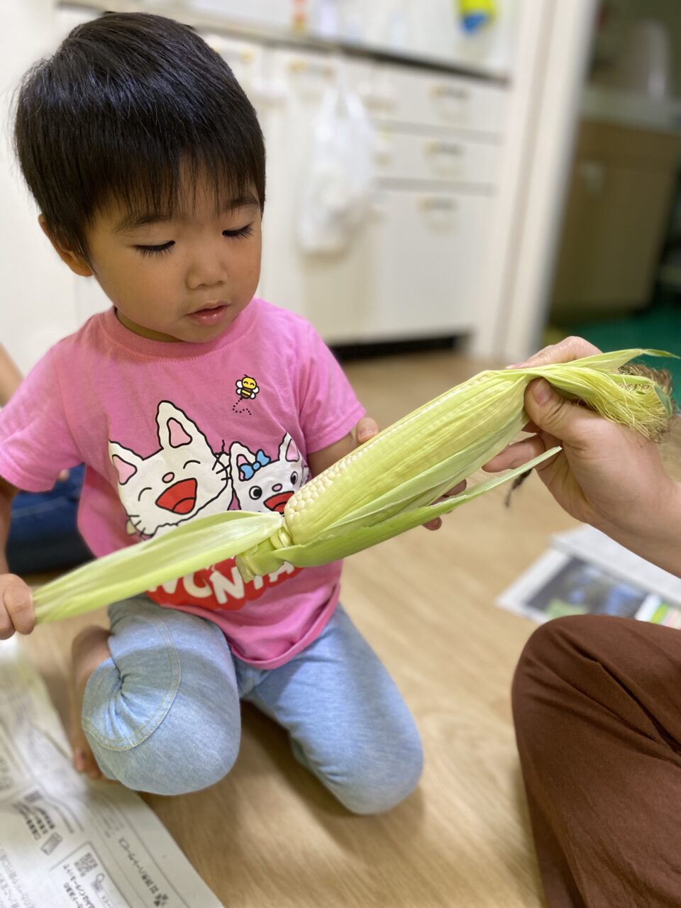 ✨きらきらっ子のトウモロコシ🌽を手にしたお顔☺とってもいいですね❗😃