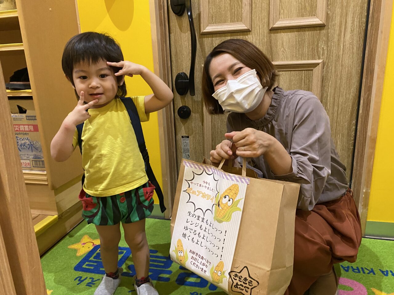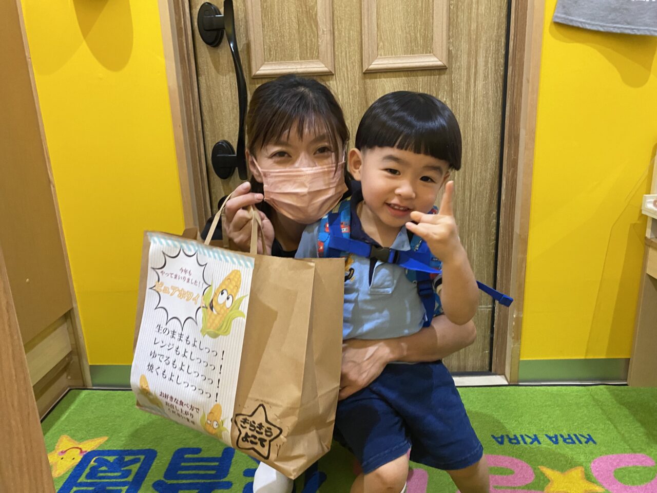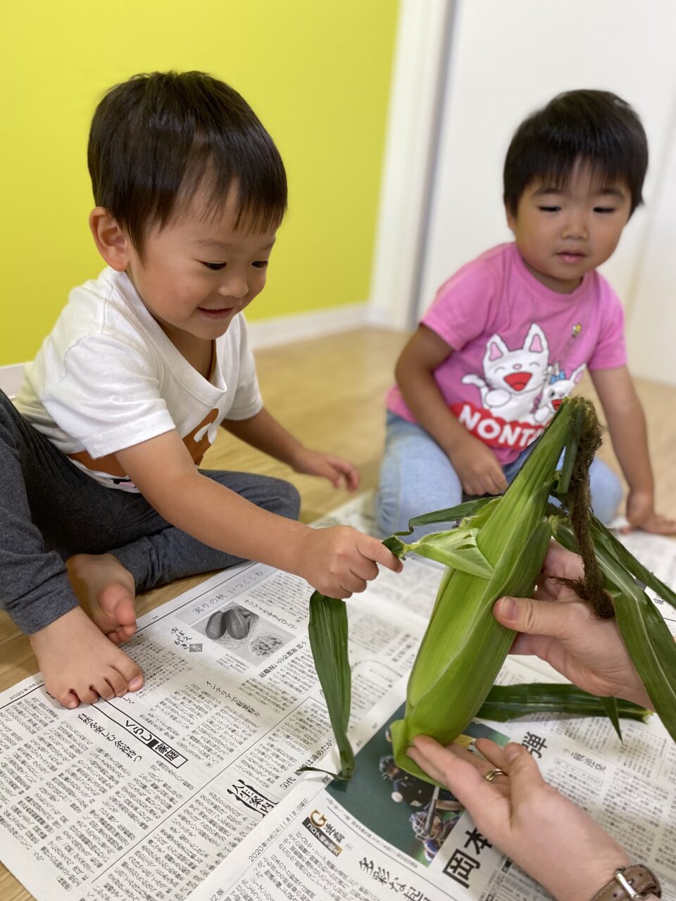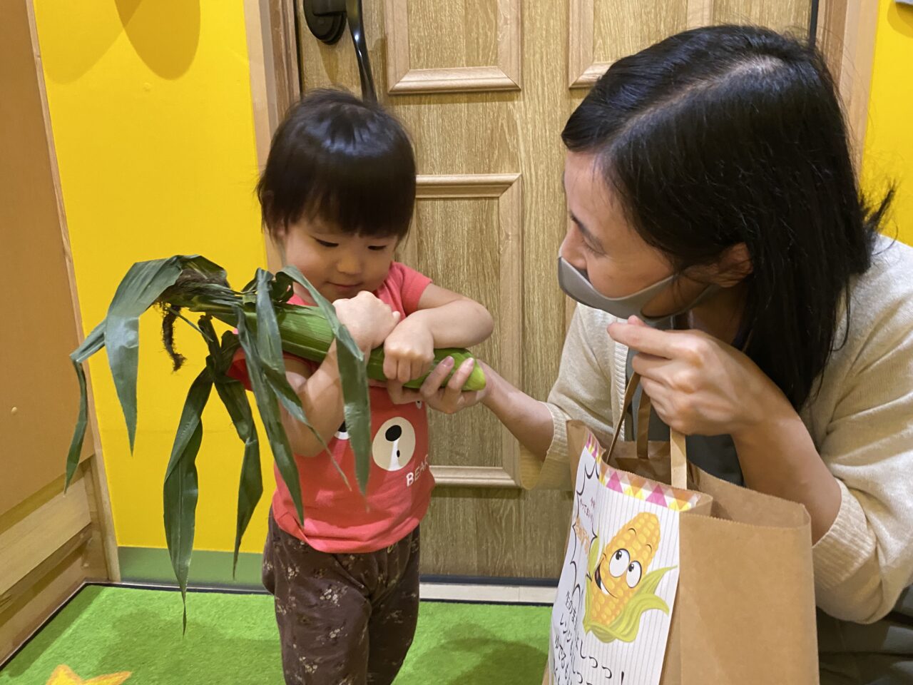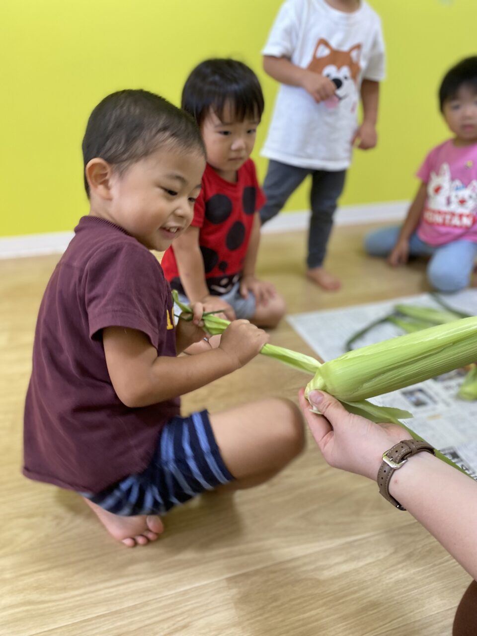✨きらきらっ子のトウモロコシ🌽を手にしたお顔☺とってもいいですね❗😃