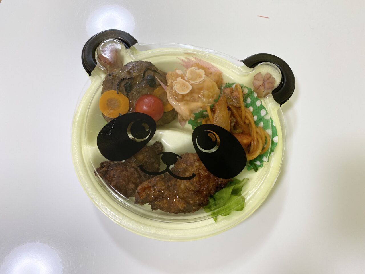 子供が喜ぶ🐼のパッケージやアンパンマンのハンバーグ等心のこもった料理に受け取る側の笑顔☺を想像します。😌