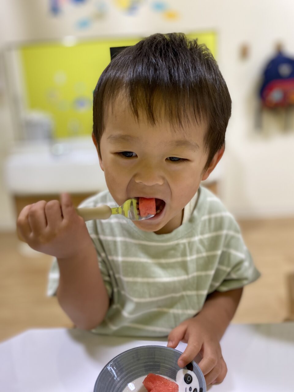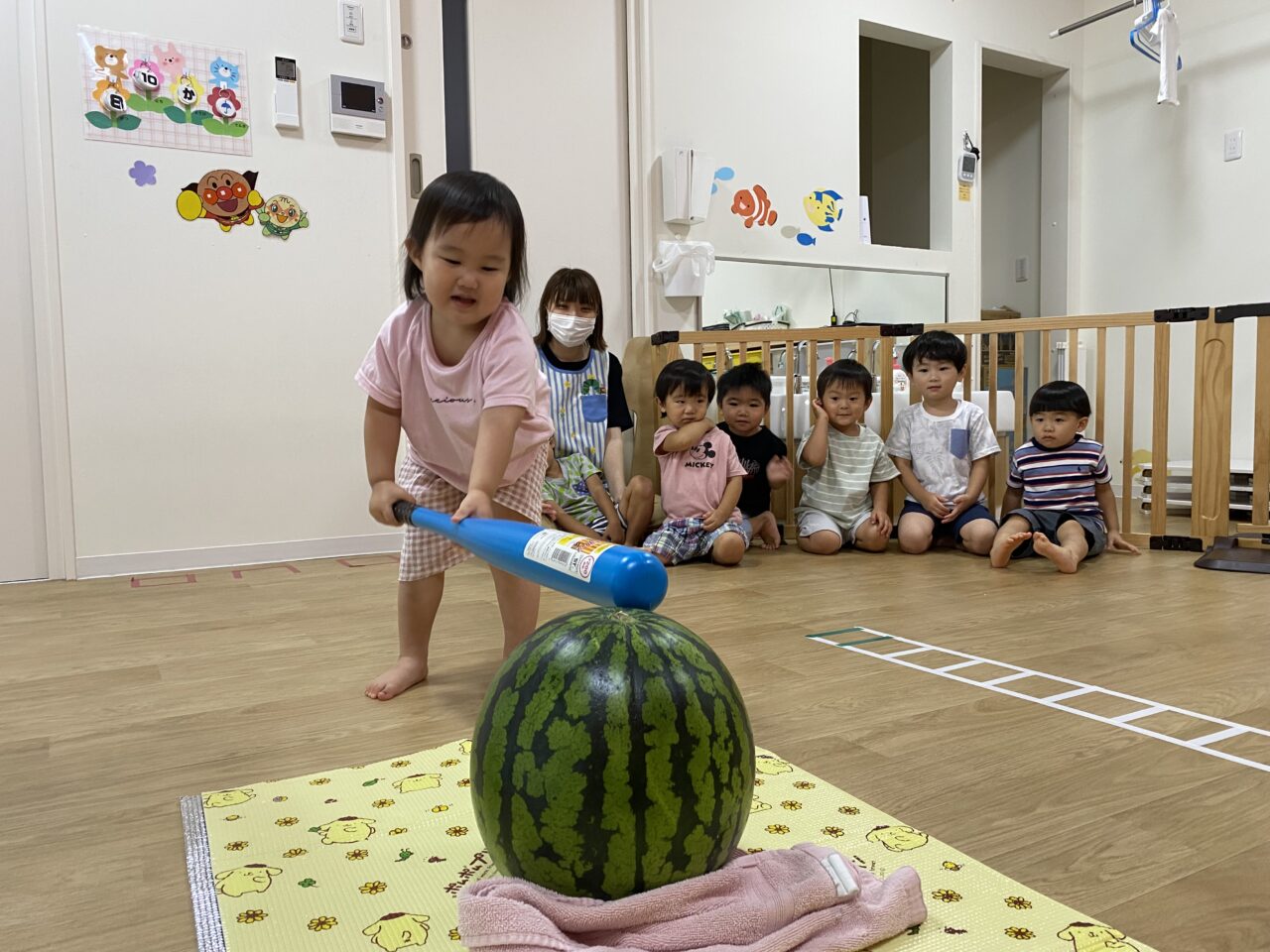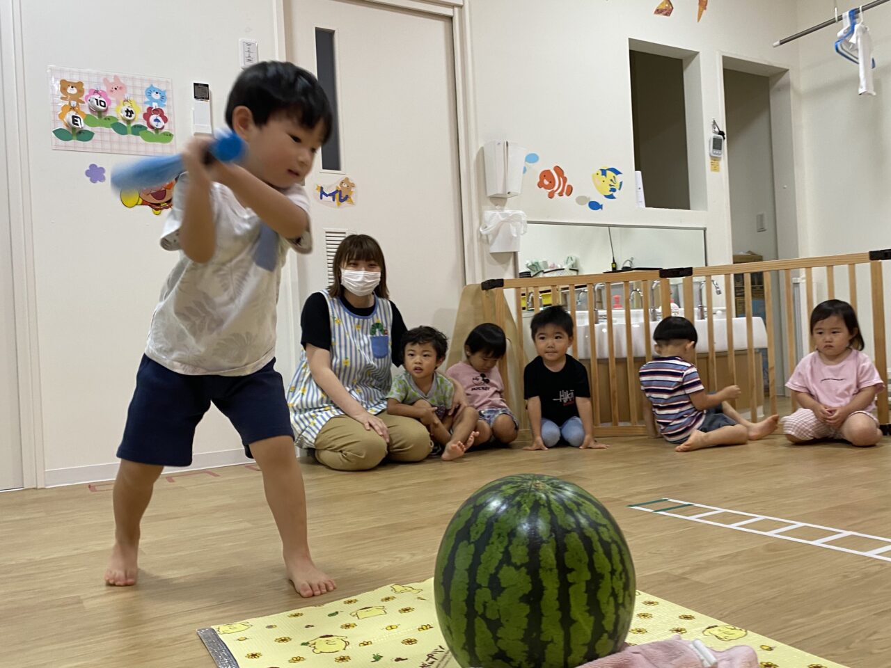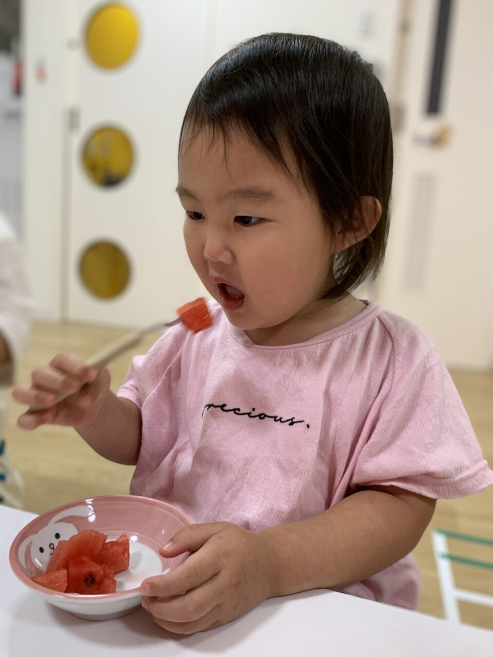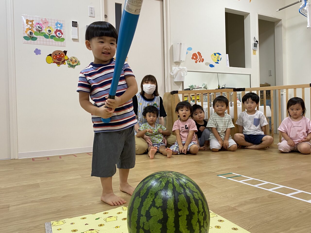 とってもおいしかったようで、もっと食べたい!とスイカの前から動かないお友だちもいました?笑