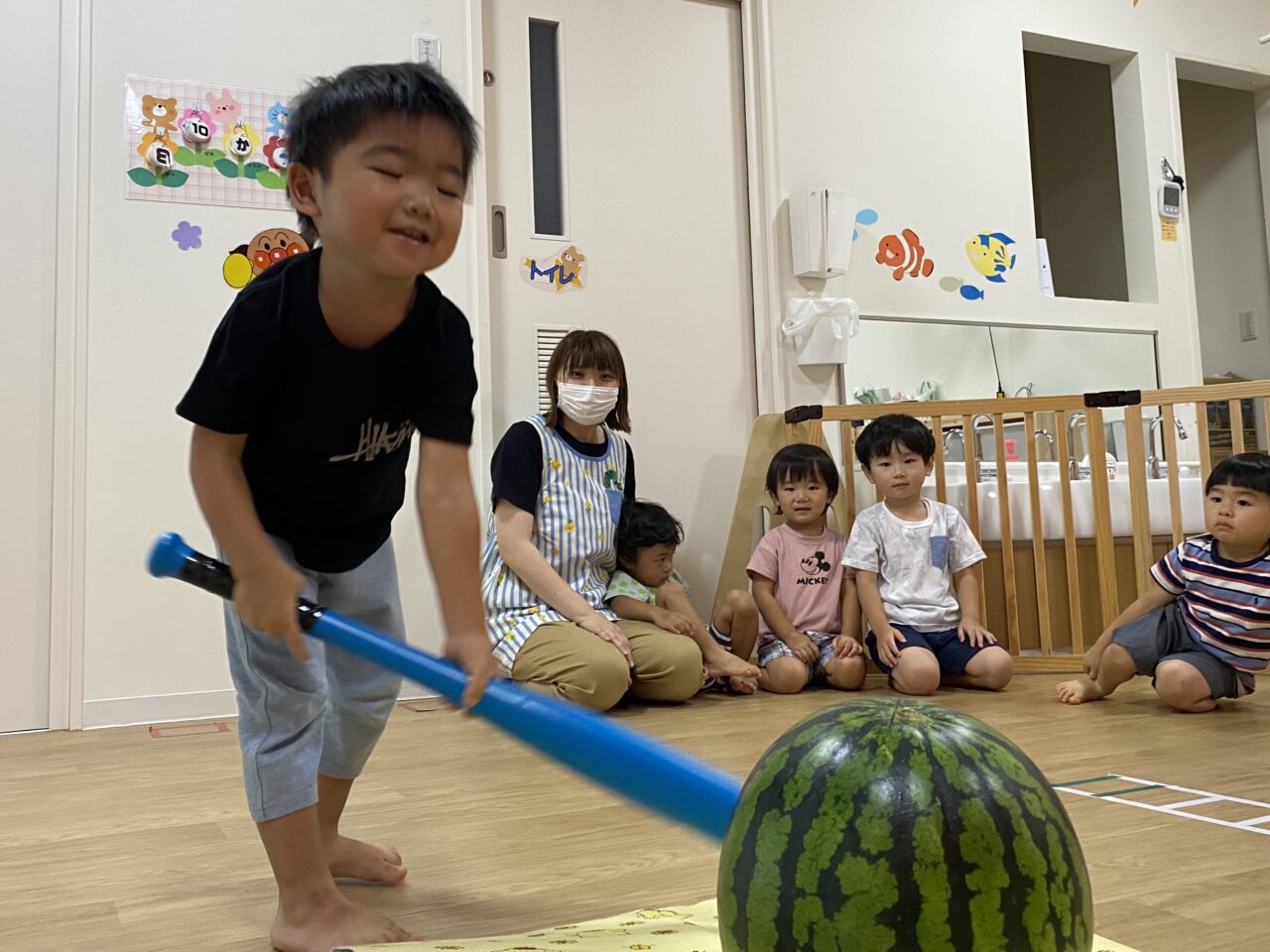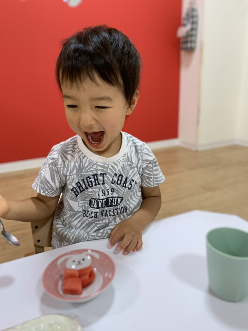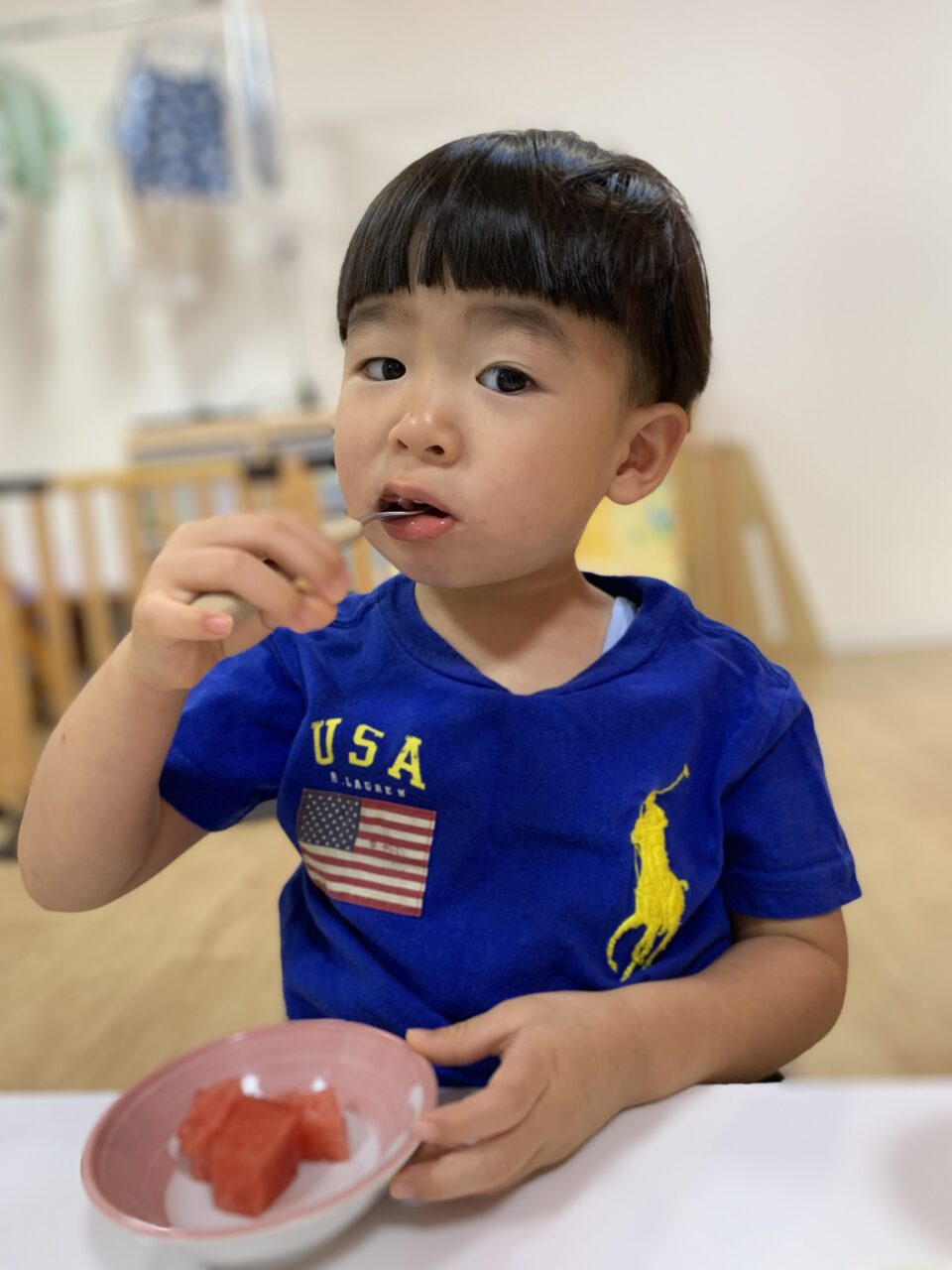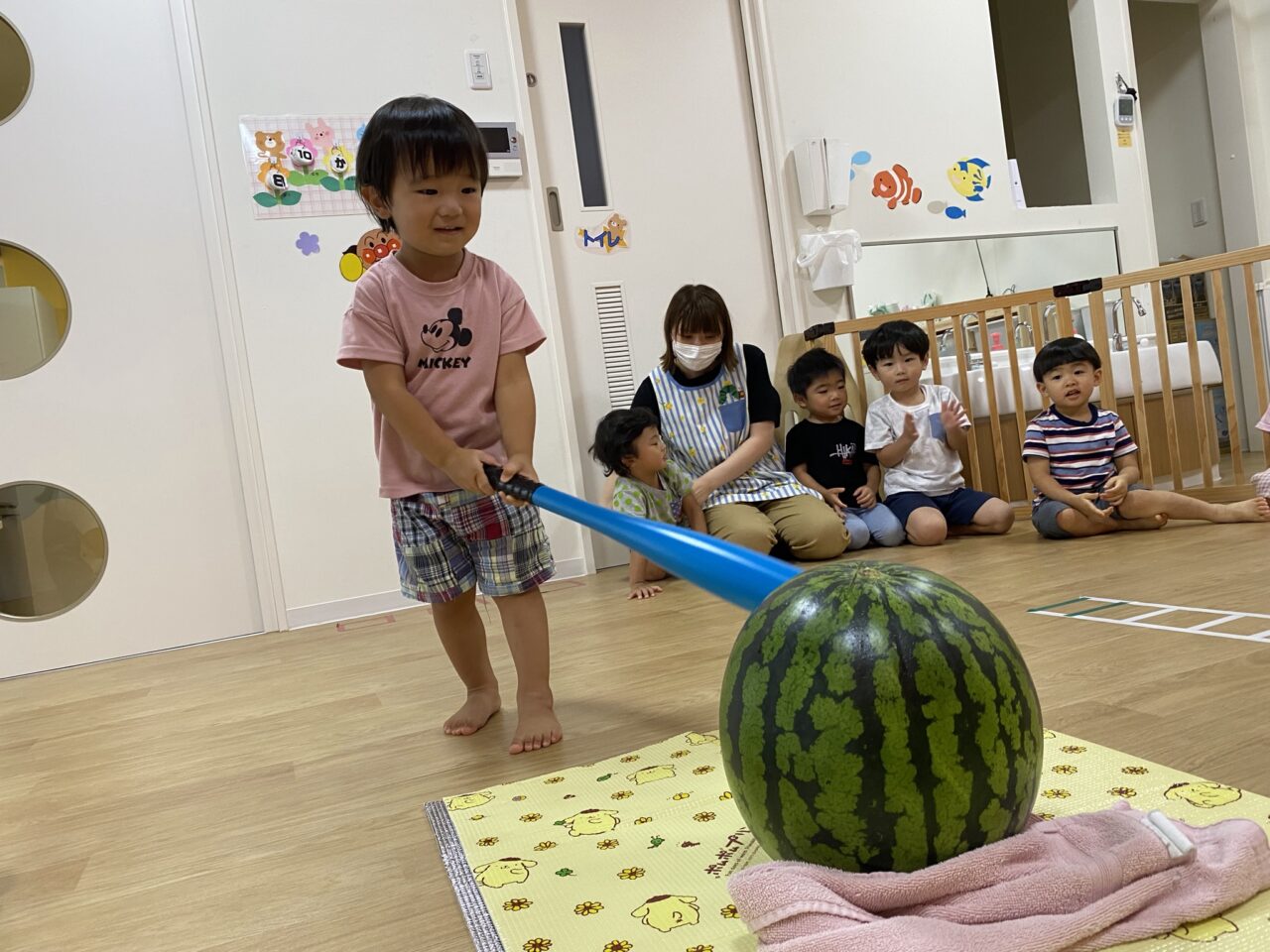 とってもおいしかったようで、もっと食べたい!とスイカの前から動かないお友だちもいました?笑