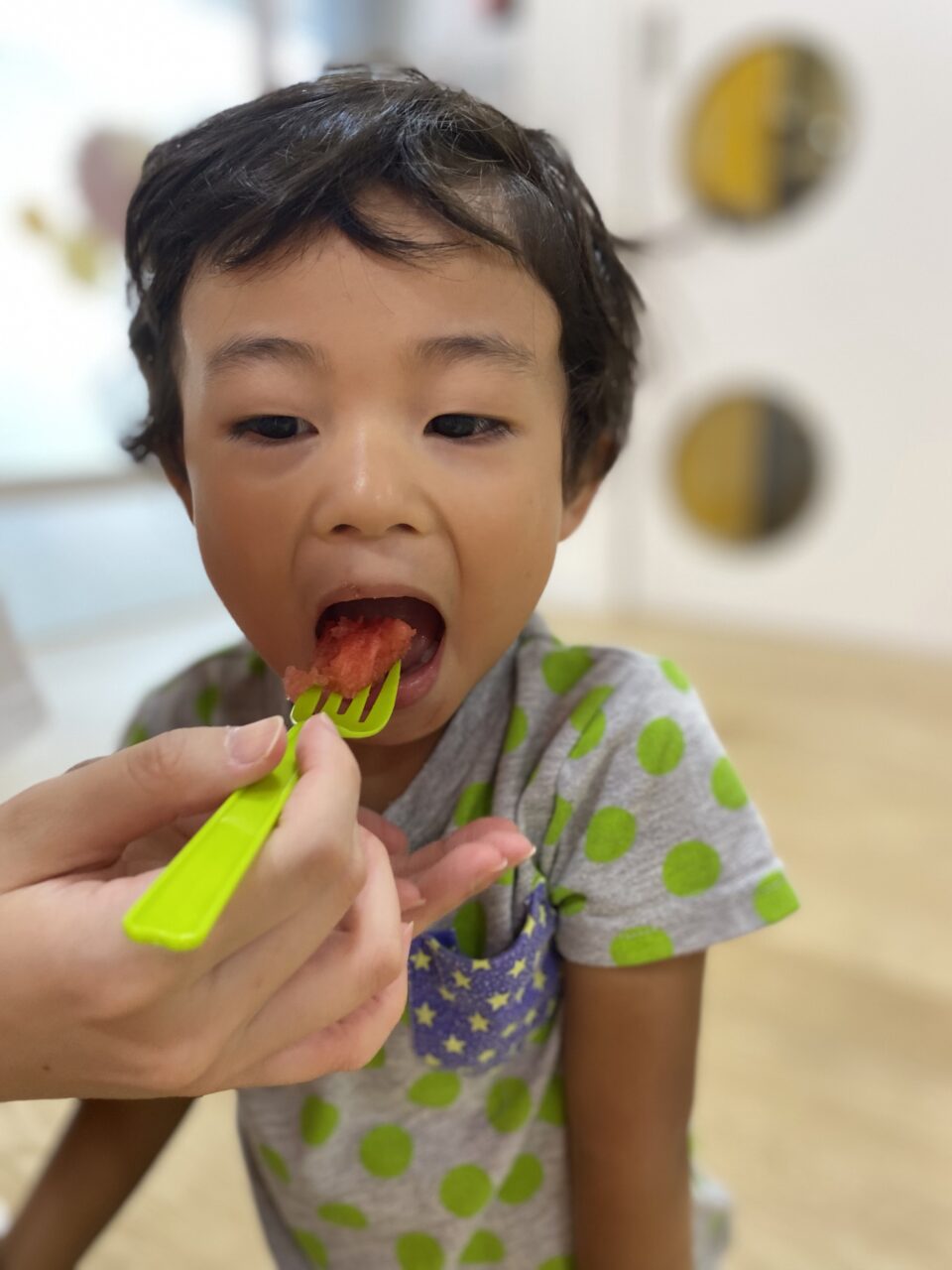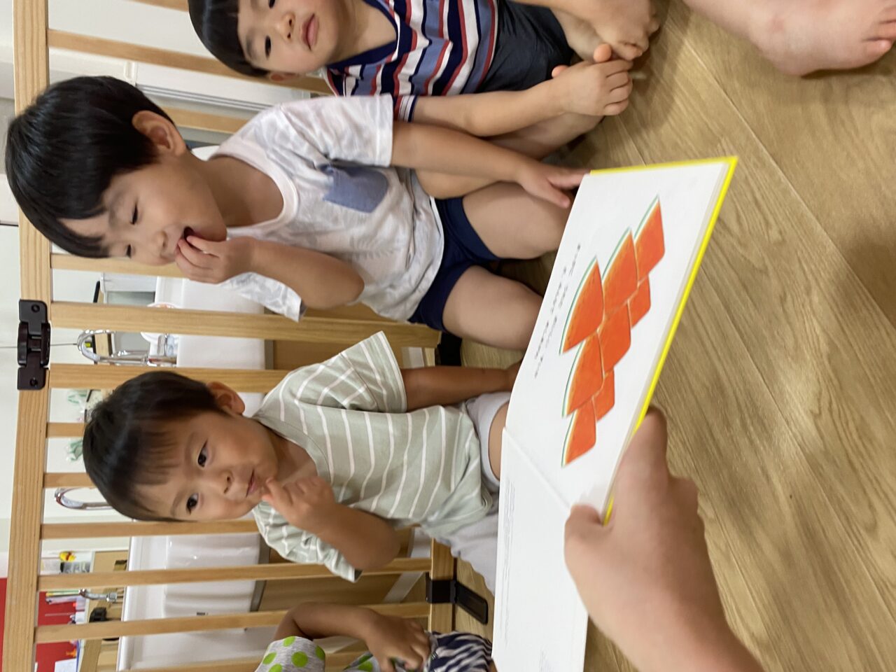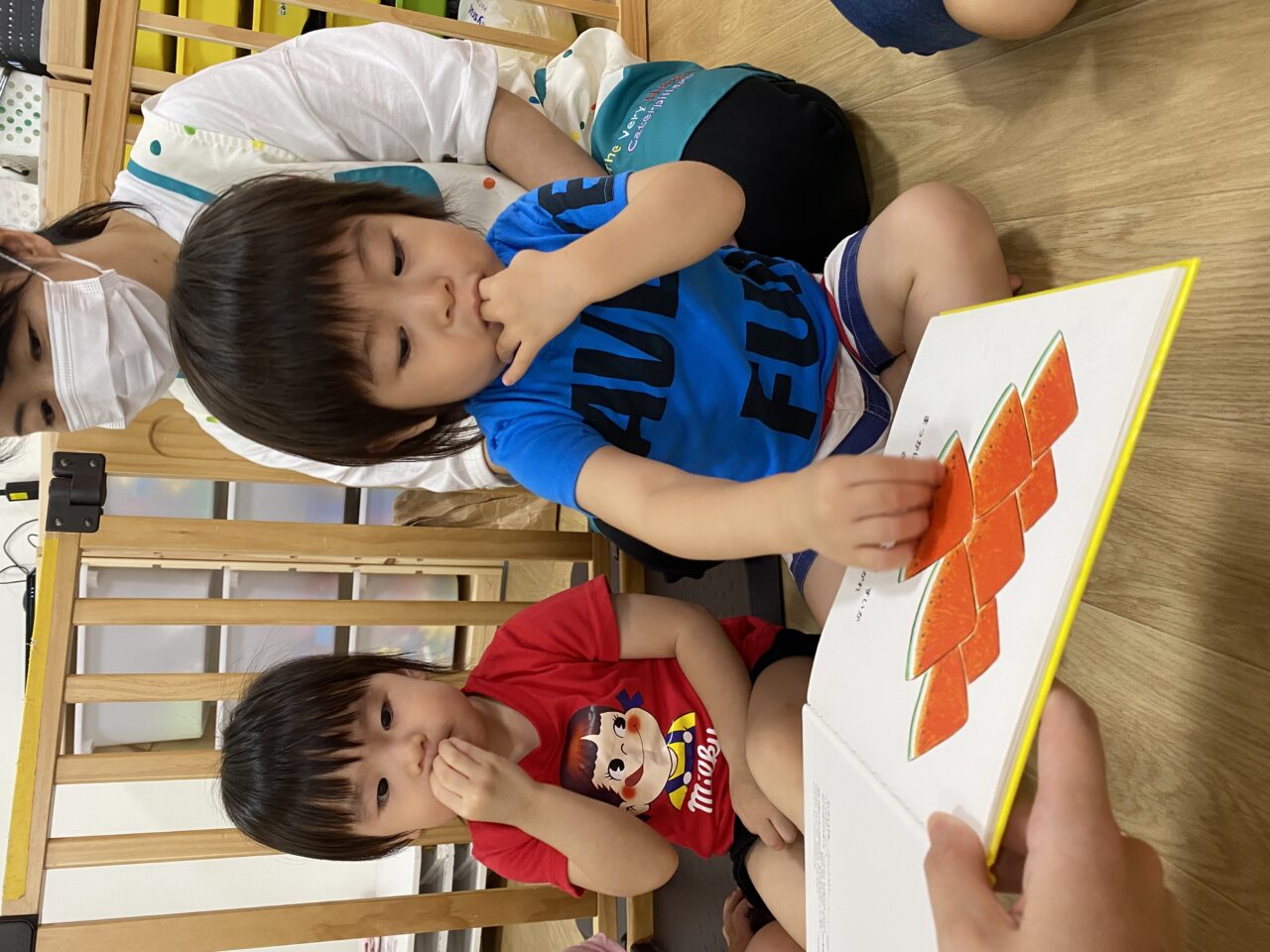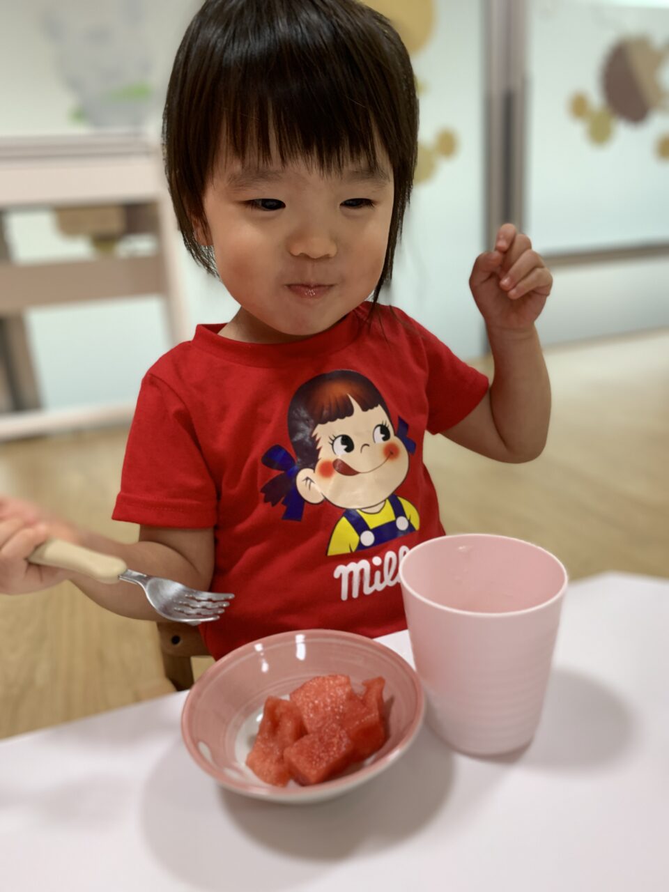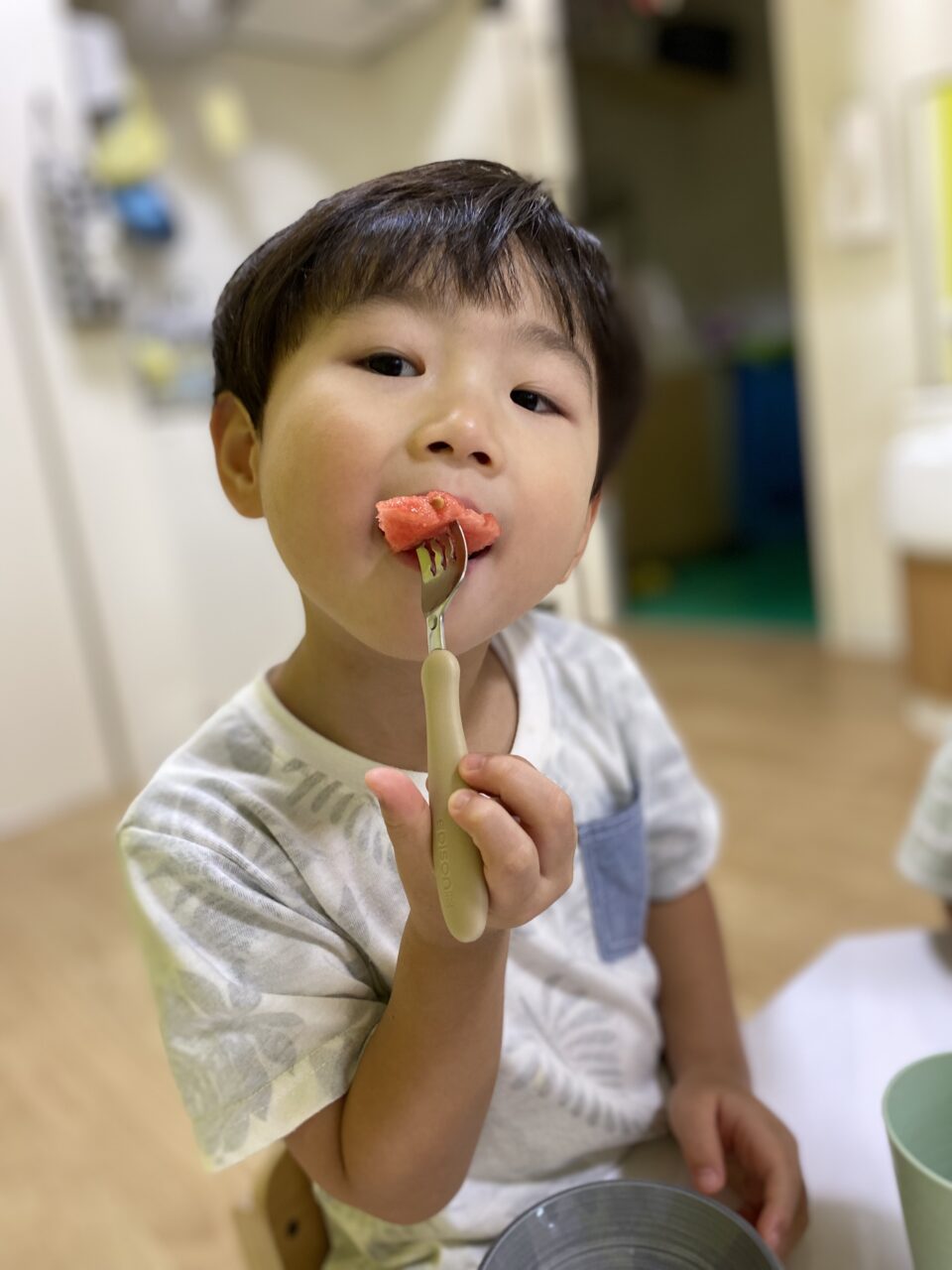 とってもおいしかったようで、もっと食べたい!とスイカの前から動かないお友だちもいました?笑