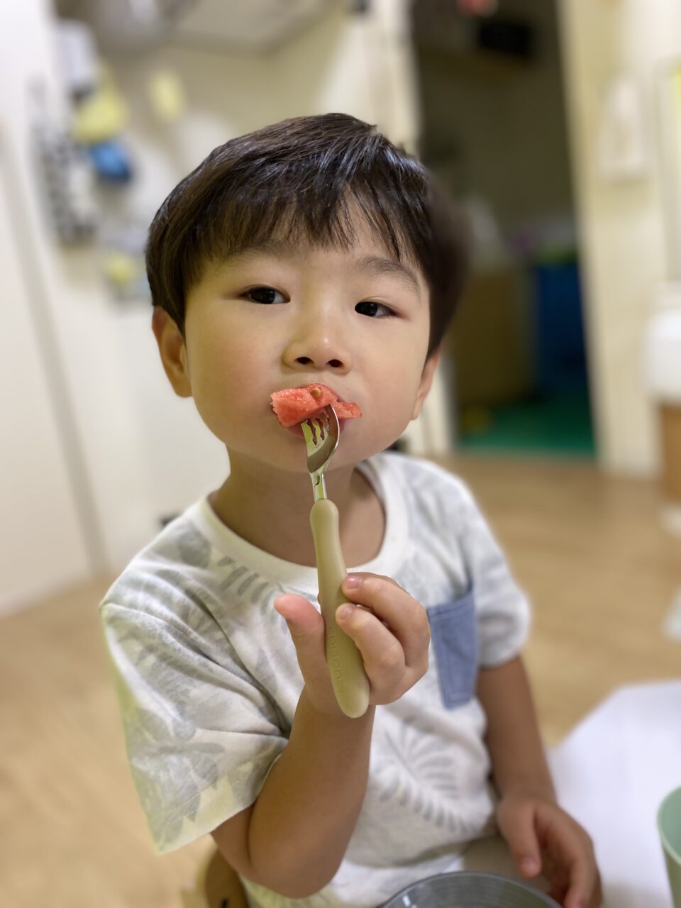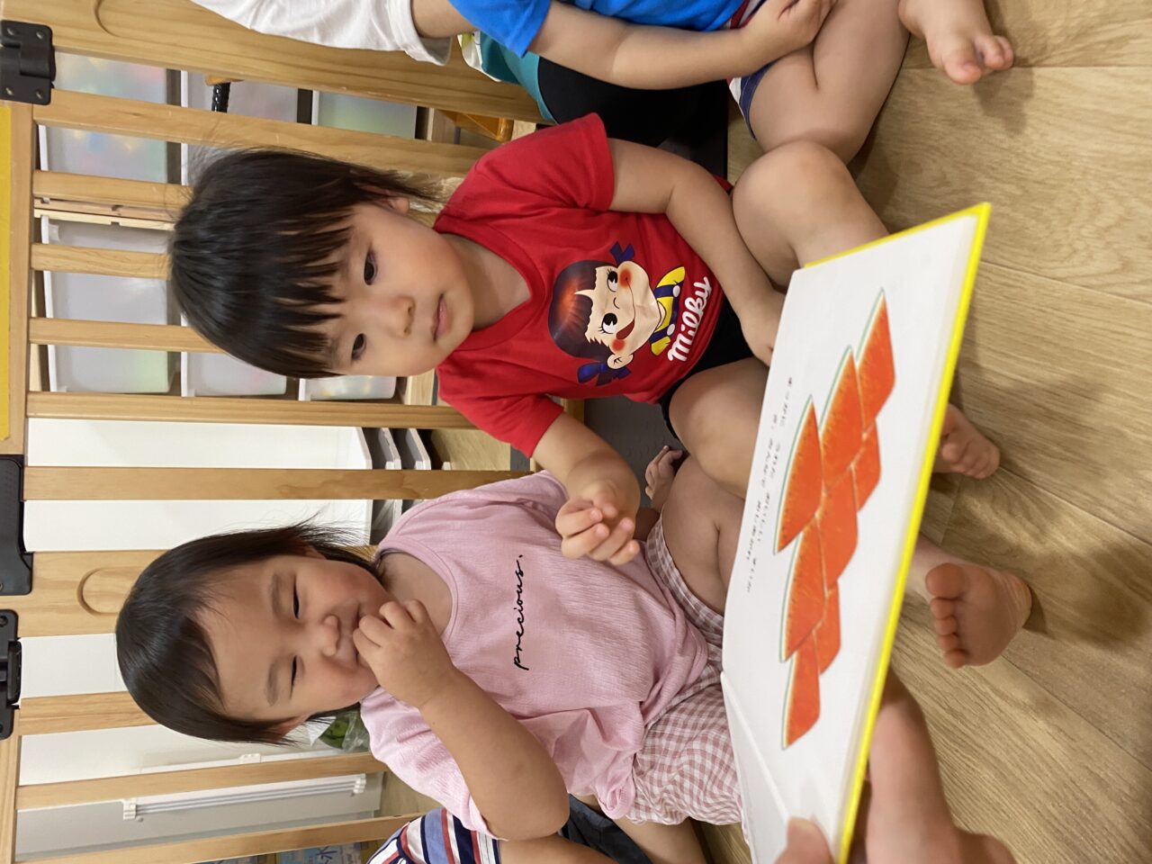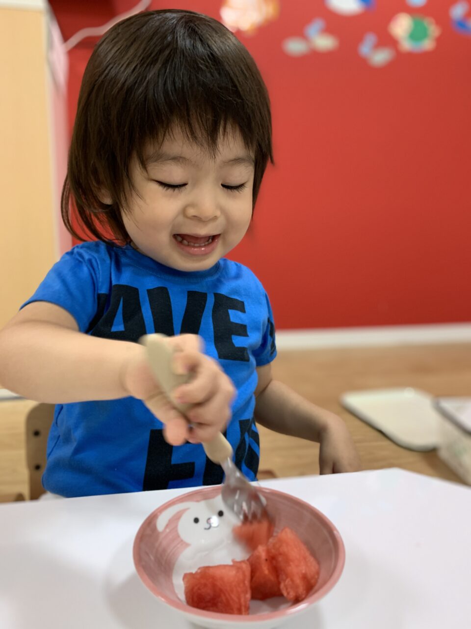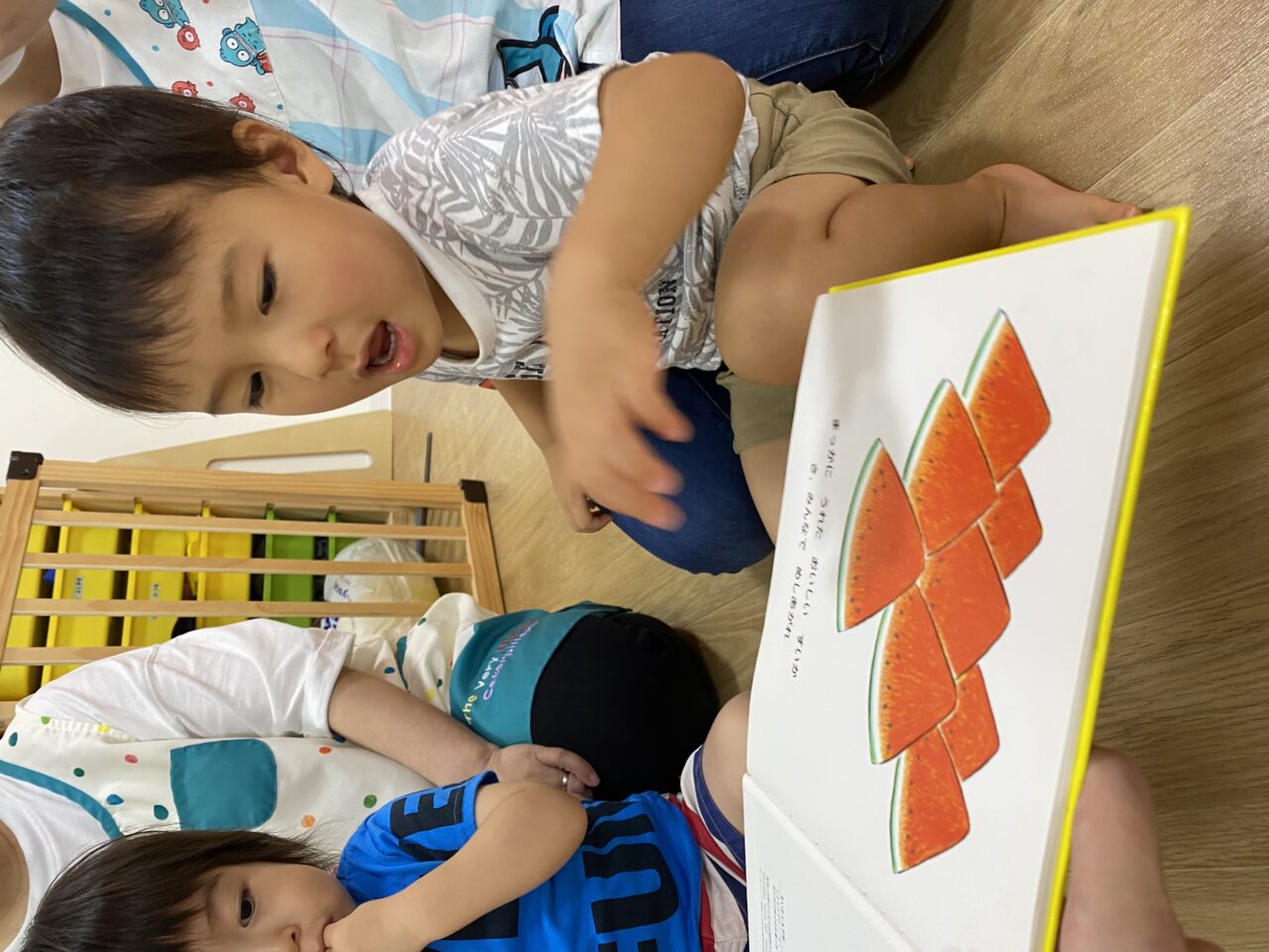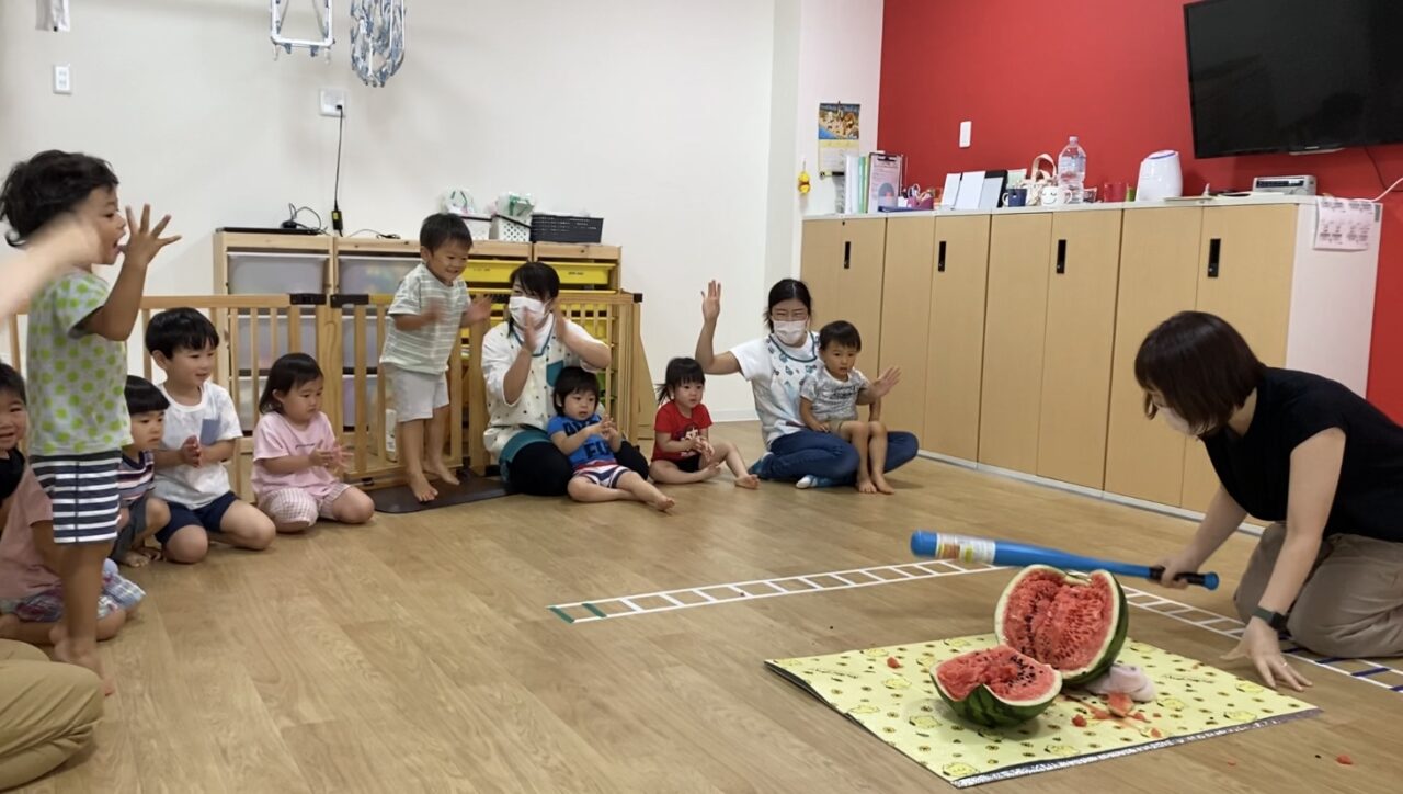 とってもおいしかったようで、もっと食べたい!とスイカの前から動かないお友だちもいました?笑