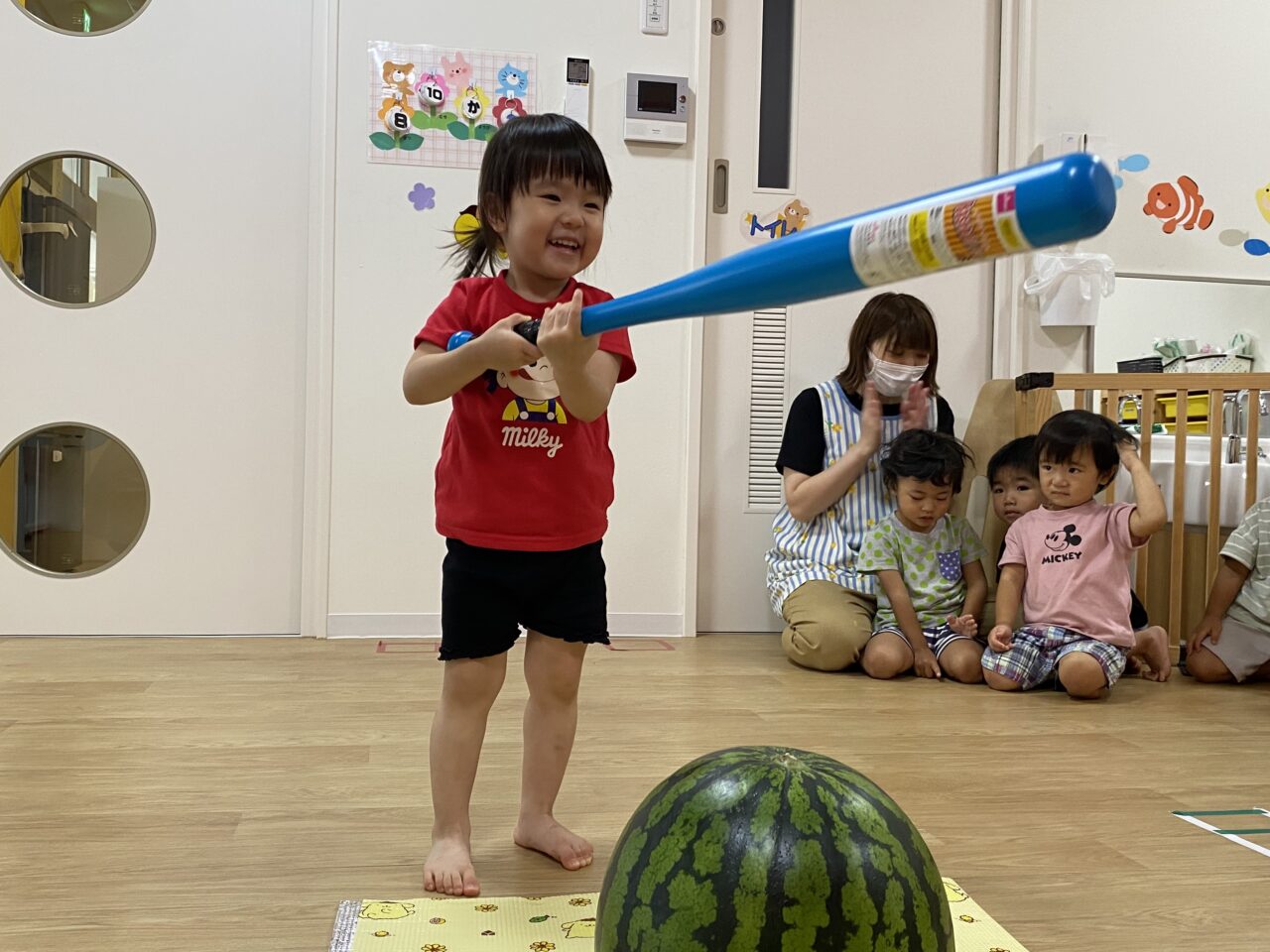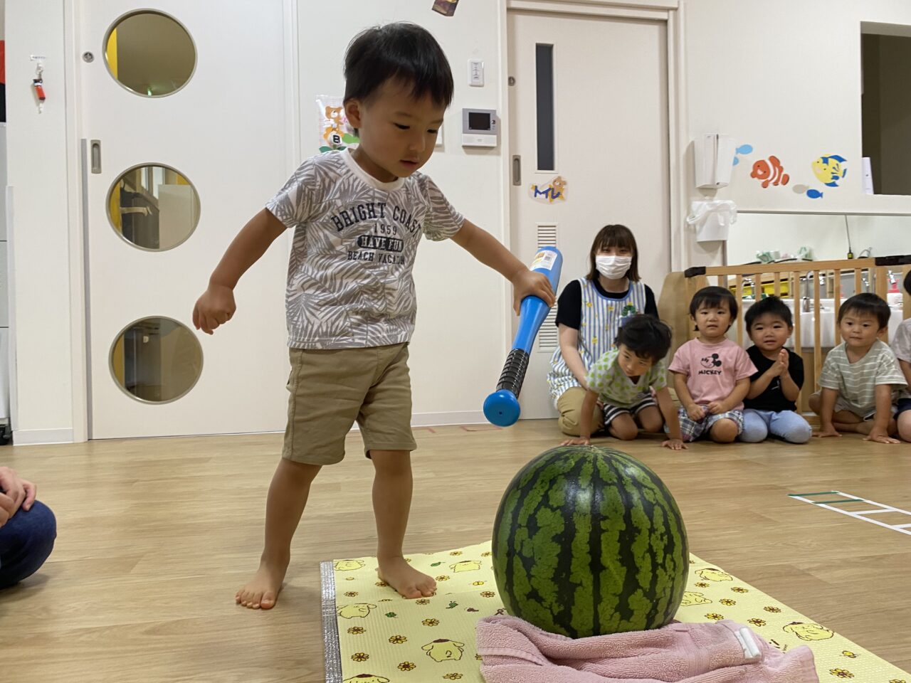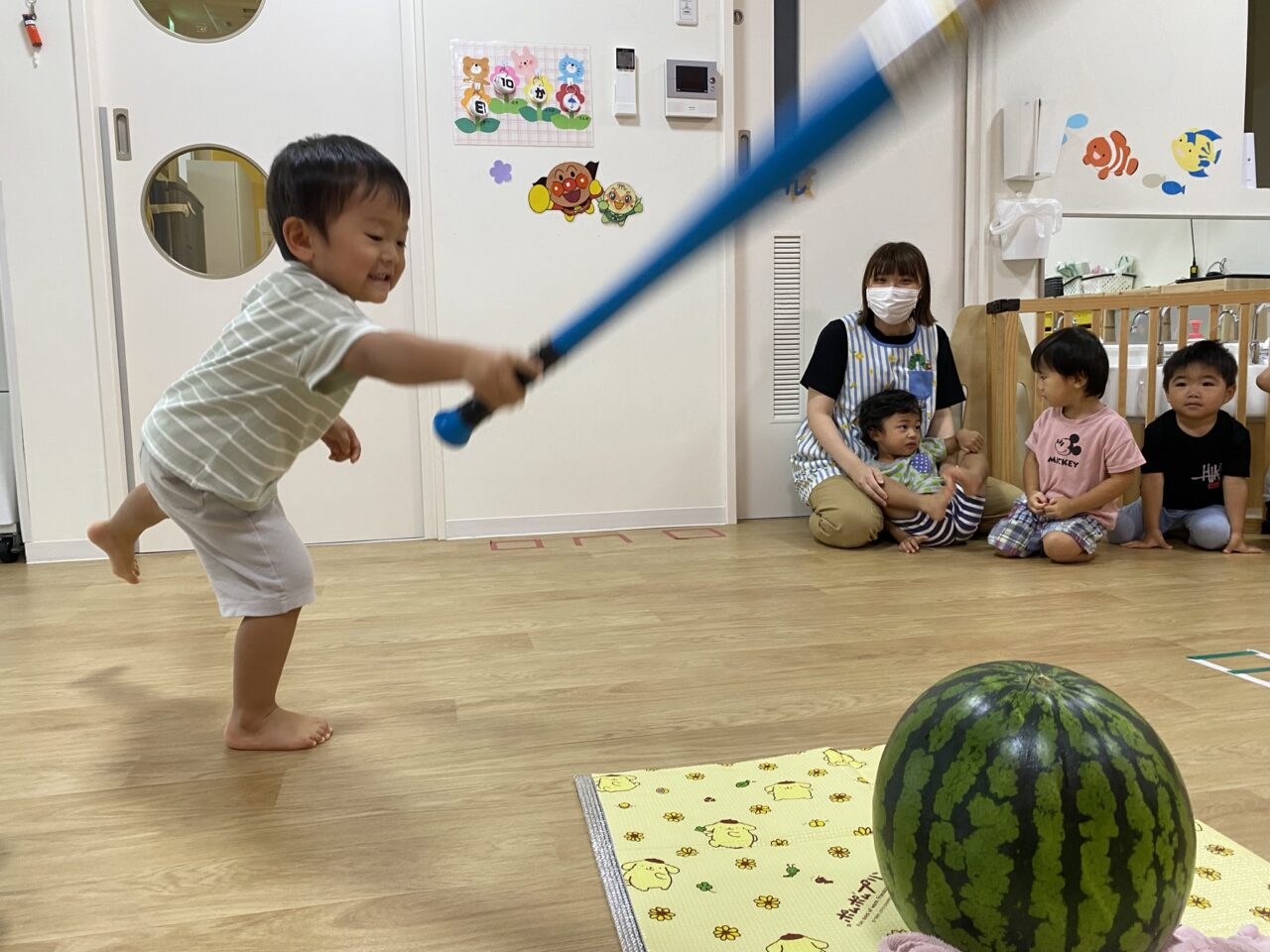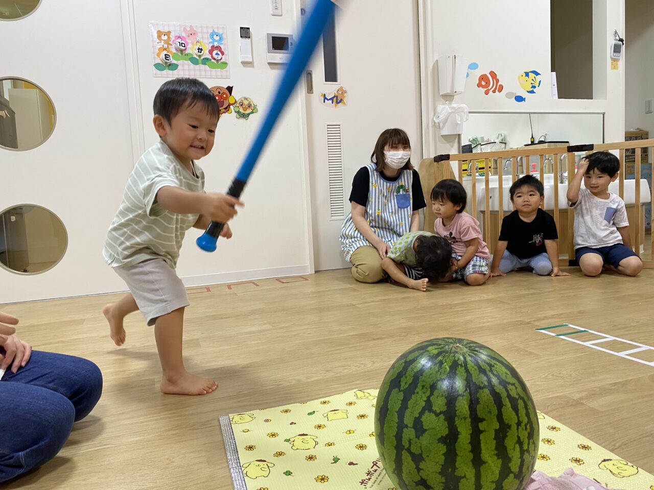 初めてのスイカ割りはピコピコハンマーでしたね✨