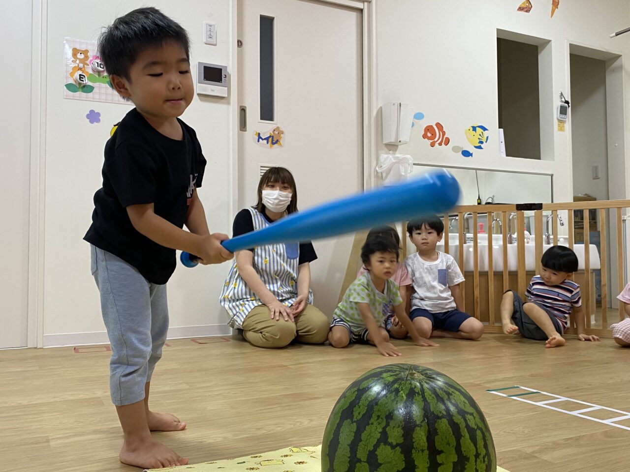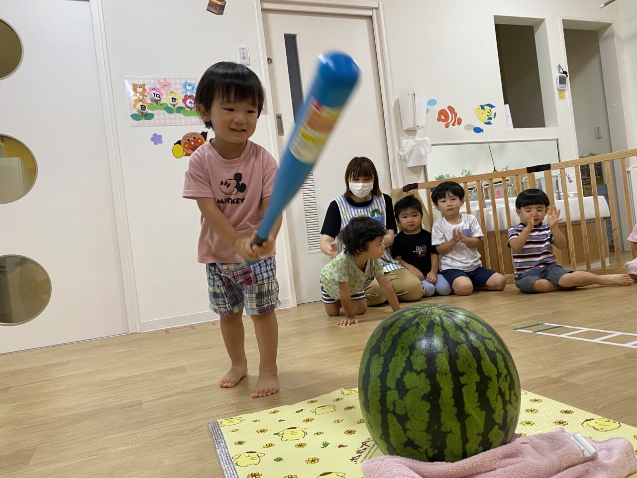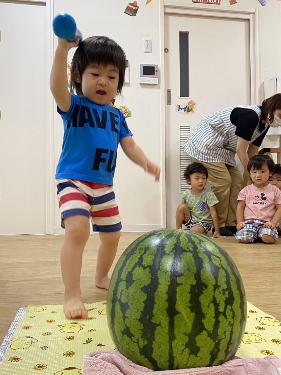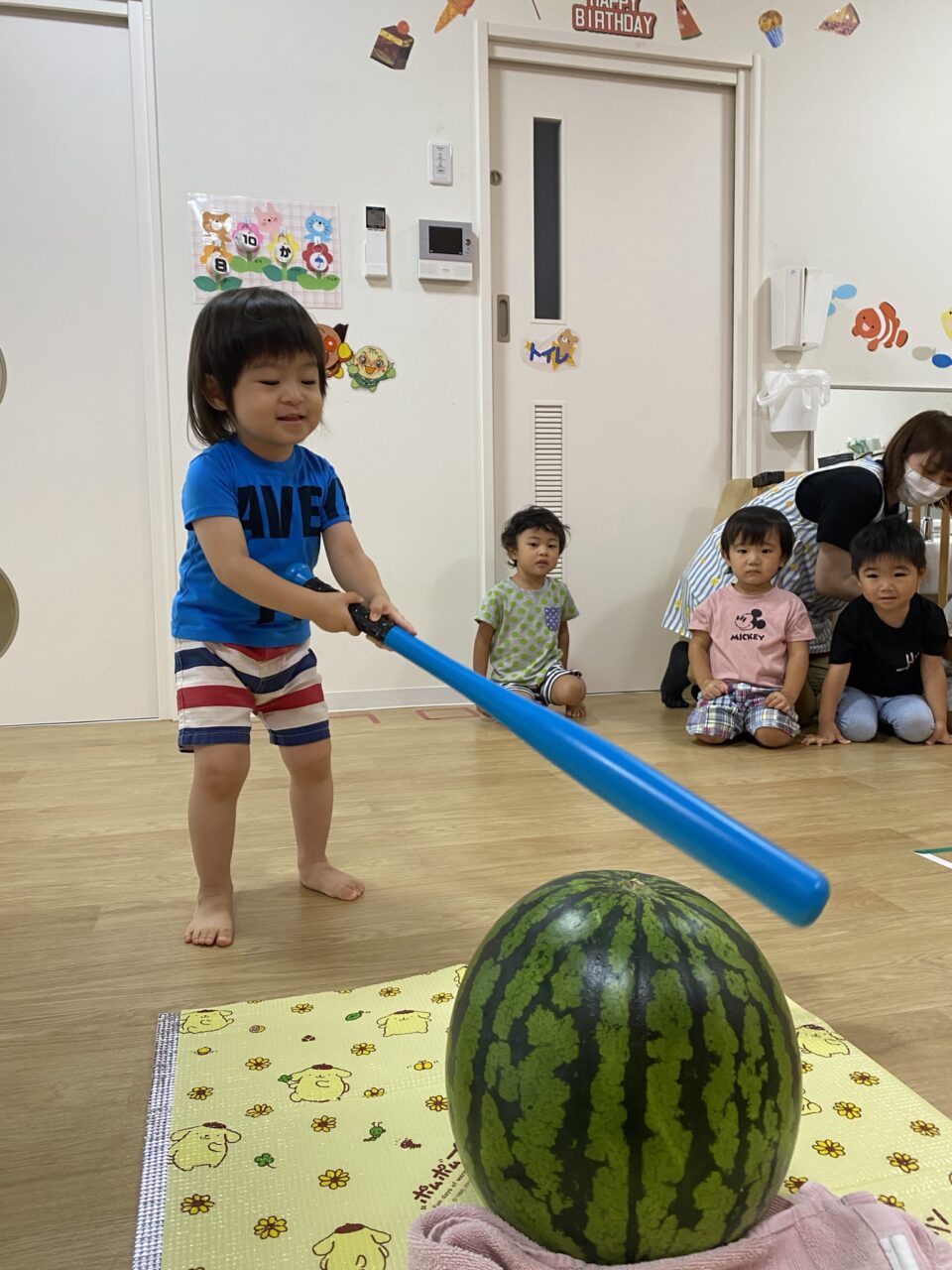 初めてのスイカ割りはピコピコハンマーでしたね✨