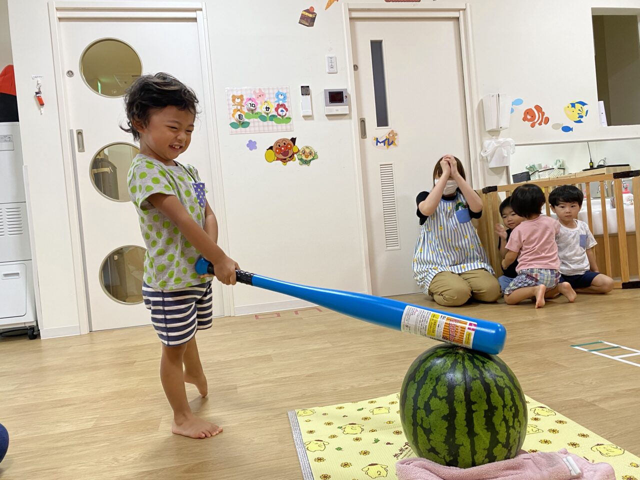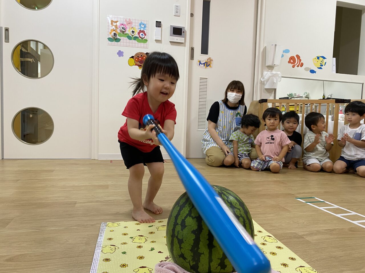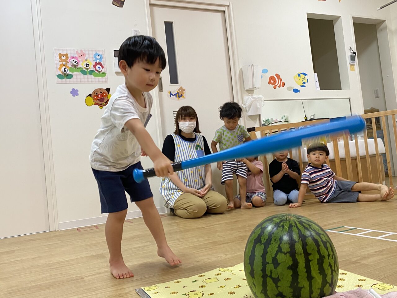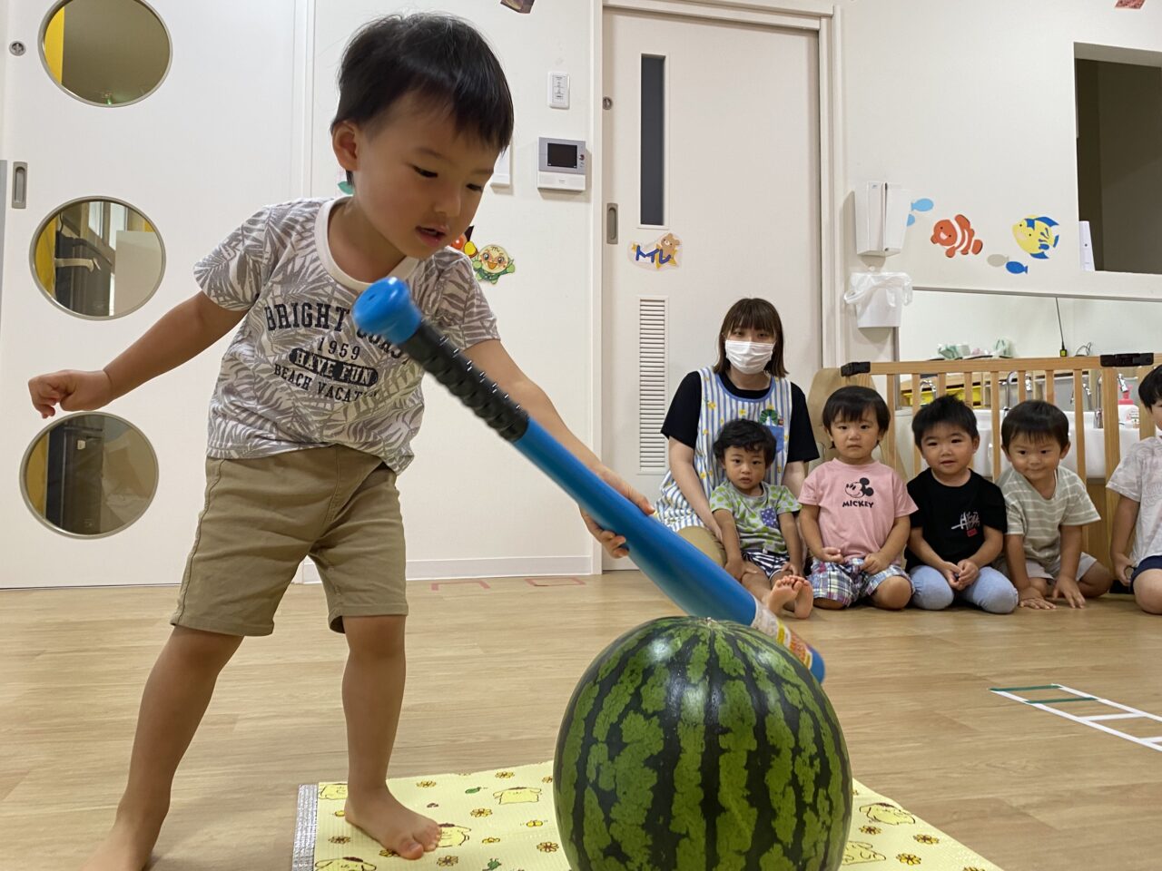 初めてのスイカ割りはピコピコハンマーでしたね✨